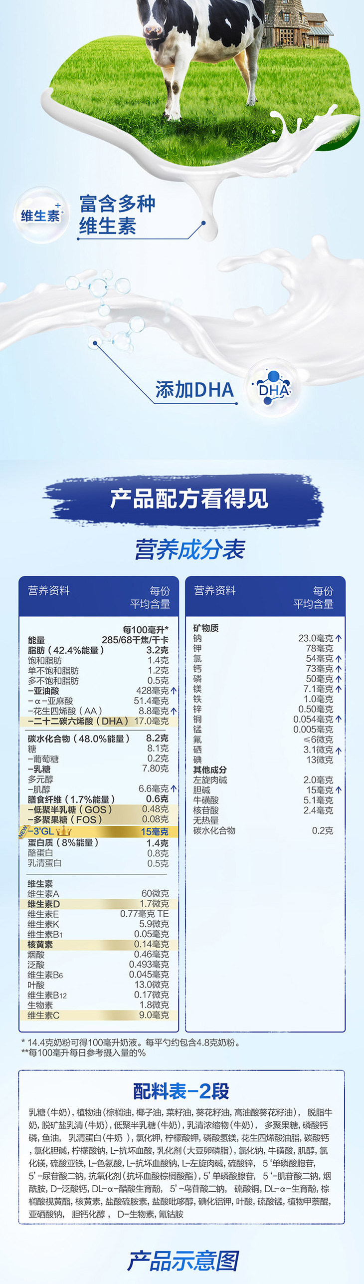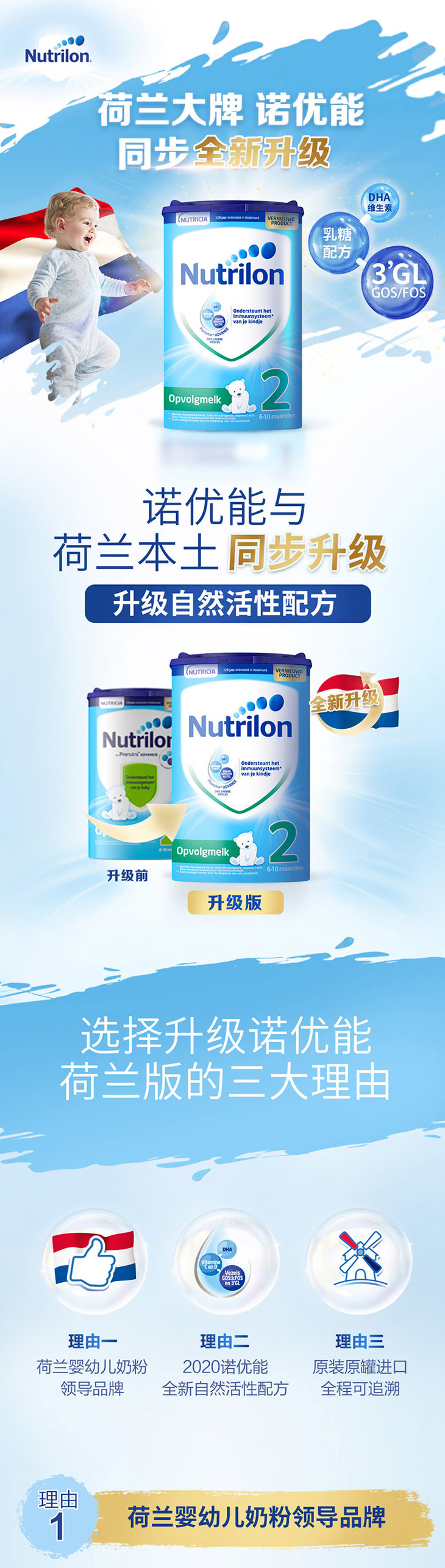 800g/罐,适合6-10个月大的宝宝。新包装配方有升级,新老包装互换需考虑转奶。 荷兰本土牛栏,海外标准配方,原装进口,海关监管!近似母乳比例配方,帮助宝宝脑部及视力发育。欧洲专利益生元组合+,提高宝宝抵抗力,维持肠道健康,为宝宝的长远健康打下坚实基础。延承100年婴幼儿营养研究成果,万千荷兰妈妈首选奶粉品牌。