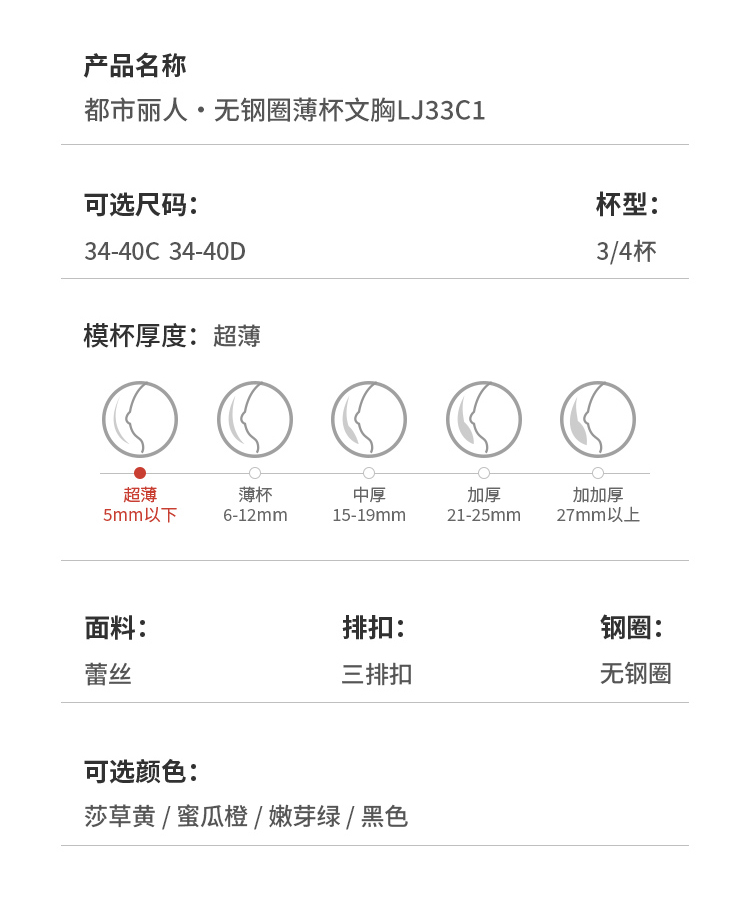 都市丽人舒软挺塑调整型内衣CD超薄3/4杯蕾丝塑身文胸三排无钢圈LJ33C1