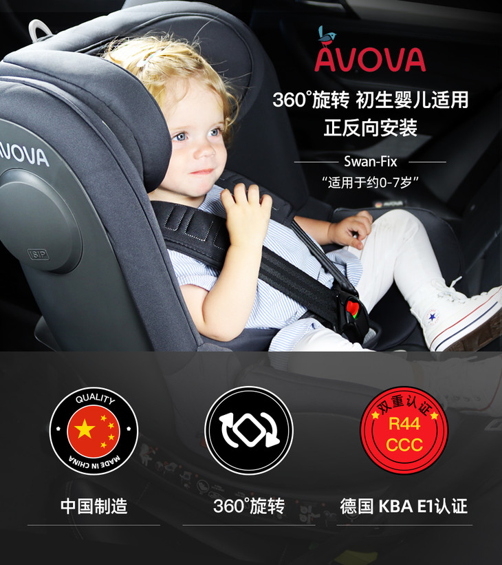 【AVOVA】Swan-Fix 小旋风 0-7岁 360度旋转安全座椅 德国KBA认证