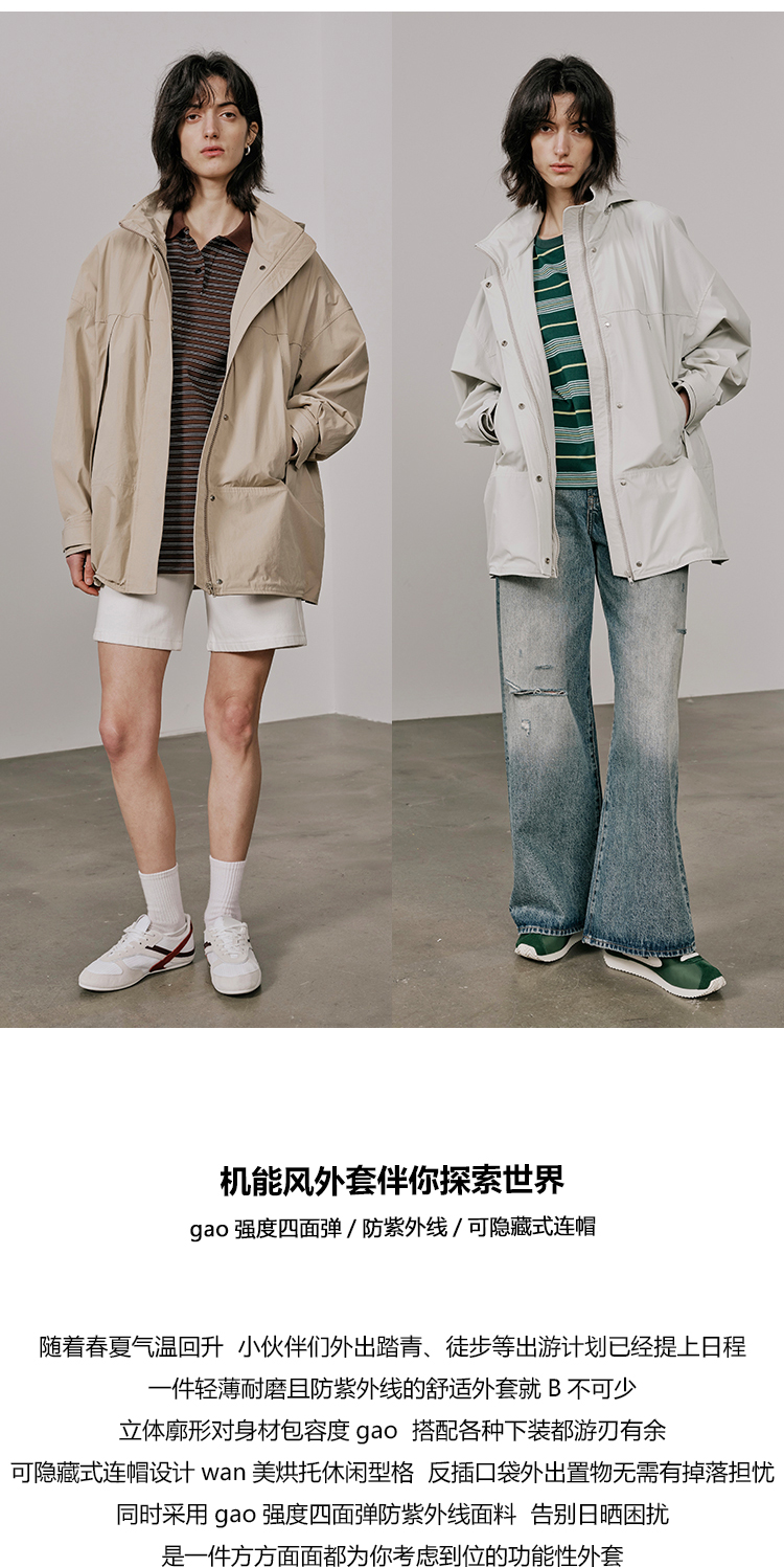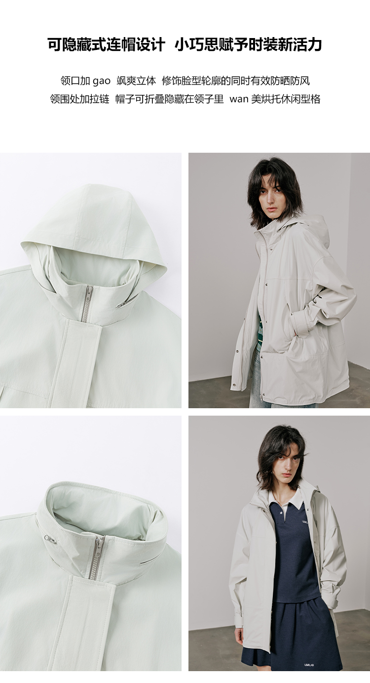 UMILAB【出游】挺括耐磨 可隐藏式连帽宽松防晒机能风外套C937M