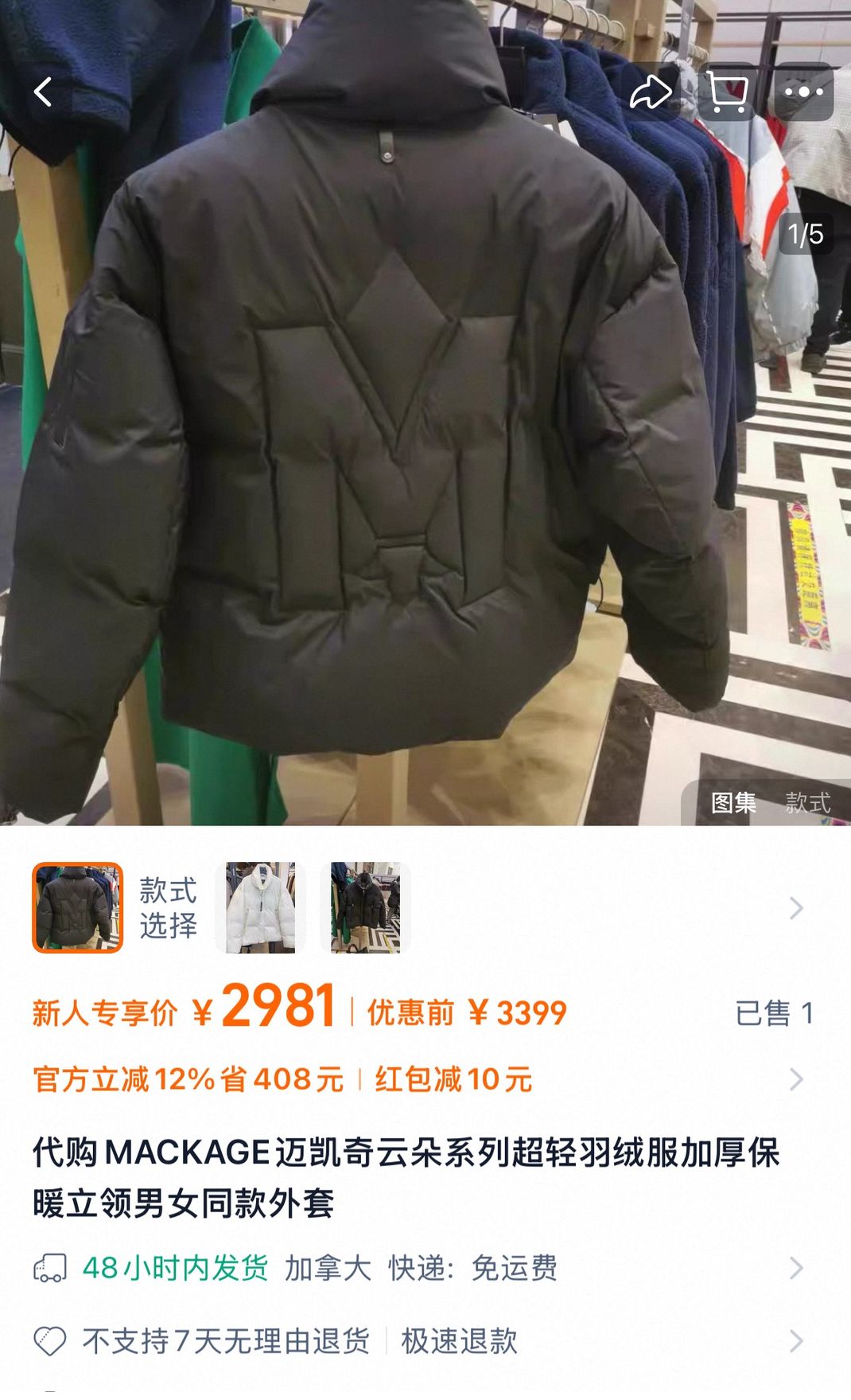 𝐦𝐚𝐜𝐤𝐚𝐠𝐞云朵系列立领羽绒服
