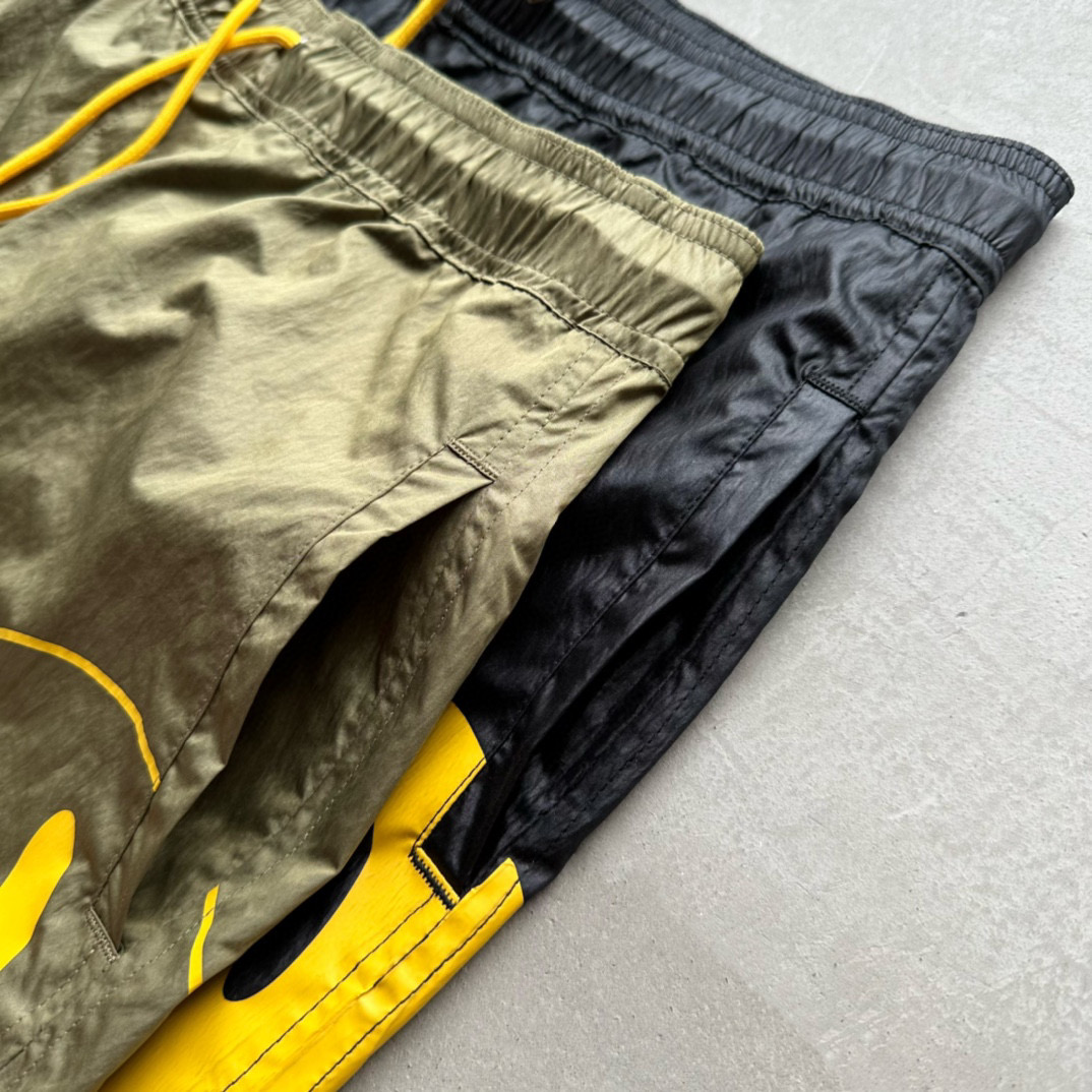 顶级重磅好货来袭,原版原包装,耗时大半个月定织定染尼龙梭织面料,内里定染同色春亚纺里衬,双层工艺,上身舒适挺阔有型!精工立体裁剪工艺,两侧实用口袋全部原版一致重工打枣套结,后侧魔术贴气孔口袋设计,定织定染滴蜡裤绳,原版一致黄色为黑色滴蜡绳头,其他颜色均为黄色滴蜡绳头,高货小细节,支持随意对比ZP,不满意随意退换!工艺方面,侧边进口热熔机大笑脸半成品拼接硅胶印花工艺,先拼好裤腿侧缝,再进行硅胶压花,真的非常重工,超级耗时耗力。潮咖男女居家出街搭配,人手必备好货,自留强烈推荐~