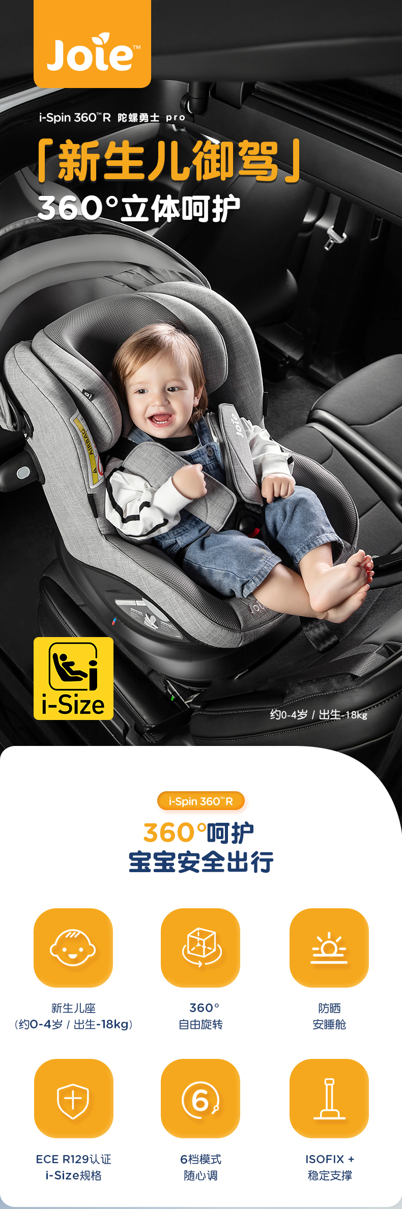 joie巧儿宜儿童安全座椅adac车载汽车用0-4岁360旋转陀螺勇士pro
