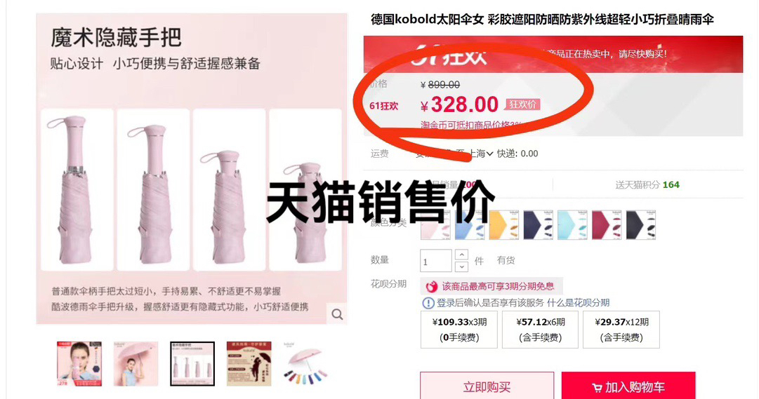 官网💰300多❗UPF50+,完美遮阳,有效阻隔紫外线!配同色系收纳袋,出门完全没烦恼!超轻超隐形,手机📱般大小,轻量化折叠伞,可以随身带简直太奈斯了克重220g,产品参数: