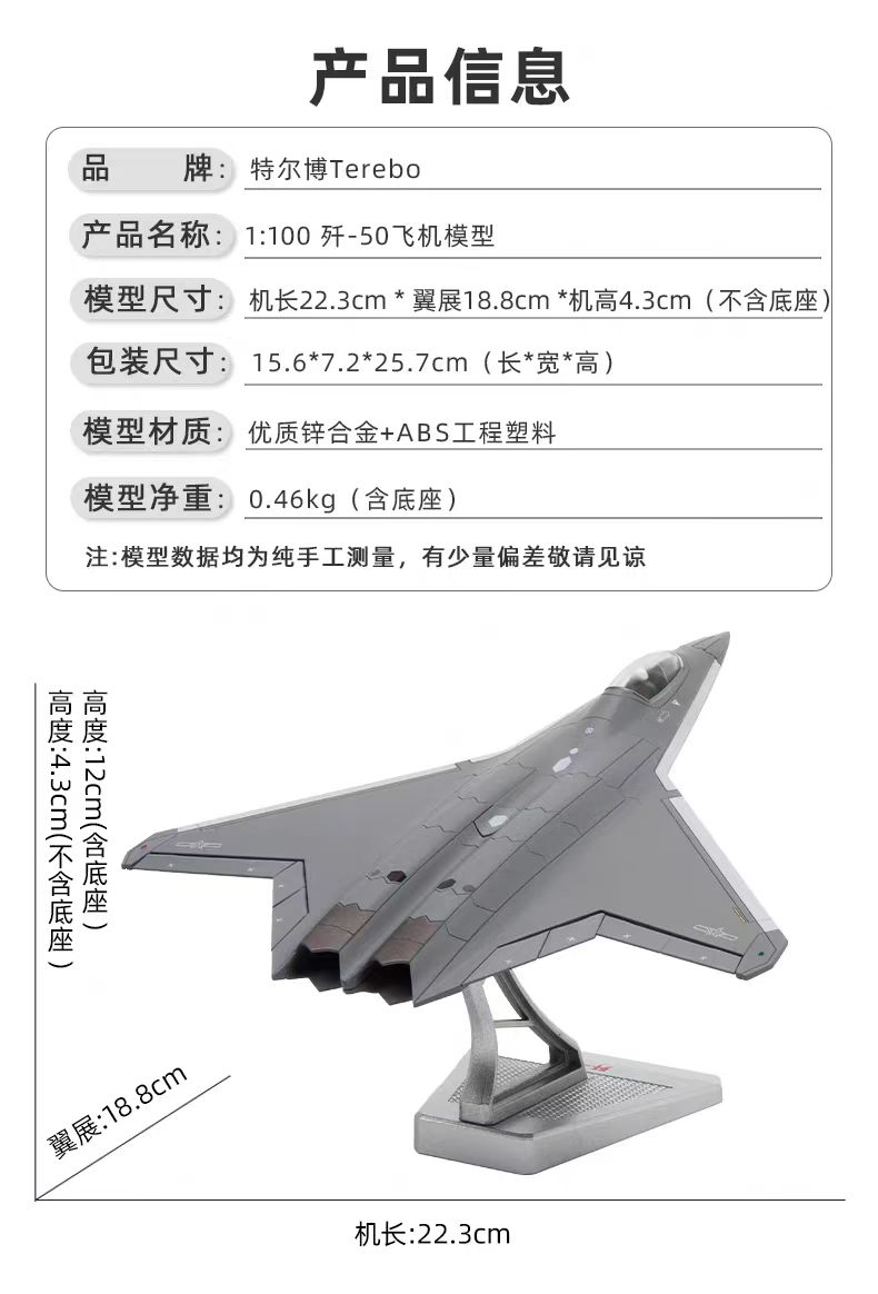 【长春航展、九三阅兵纪念品-新品重磅】特尔博-1:100歼50六代机飞机模型合金战斗机航模