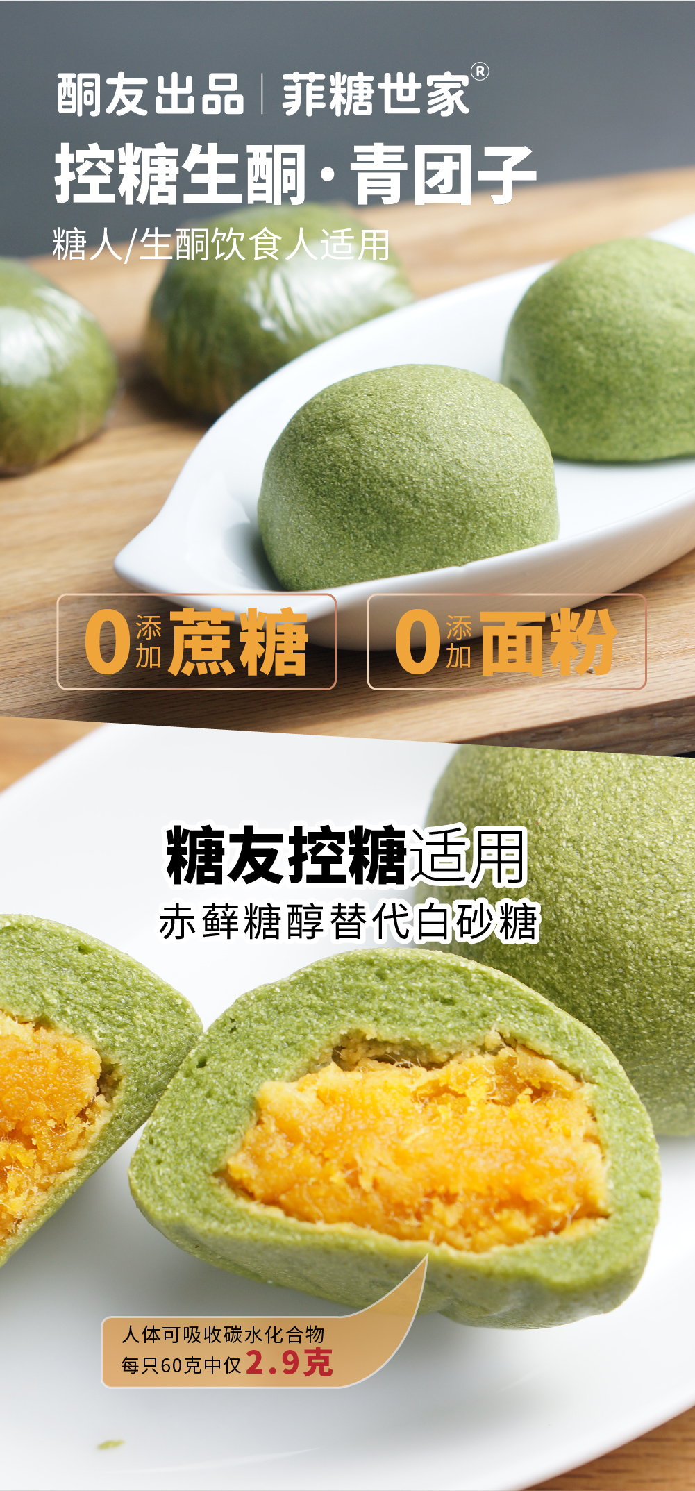 【酮友食品】控糖生酮青团子无面粉咸蛋黄无糖精碳低糕点心零食菲糖世