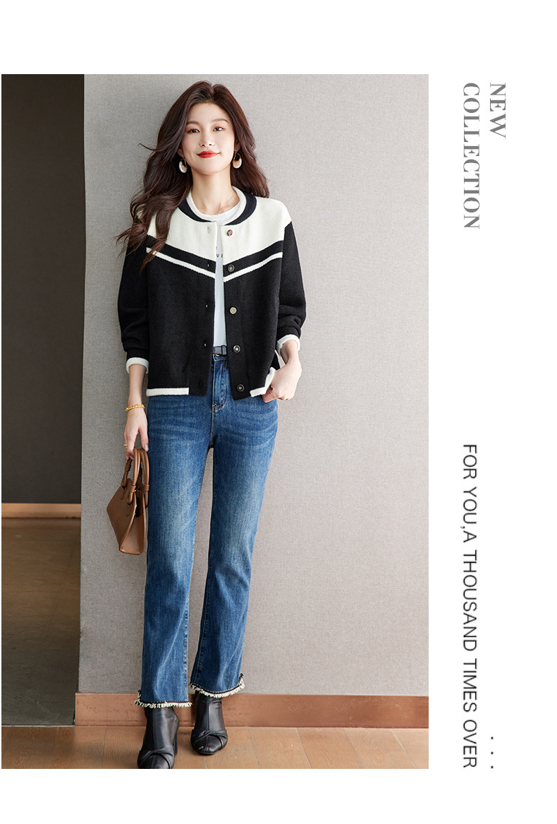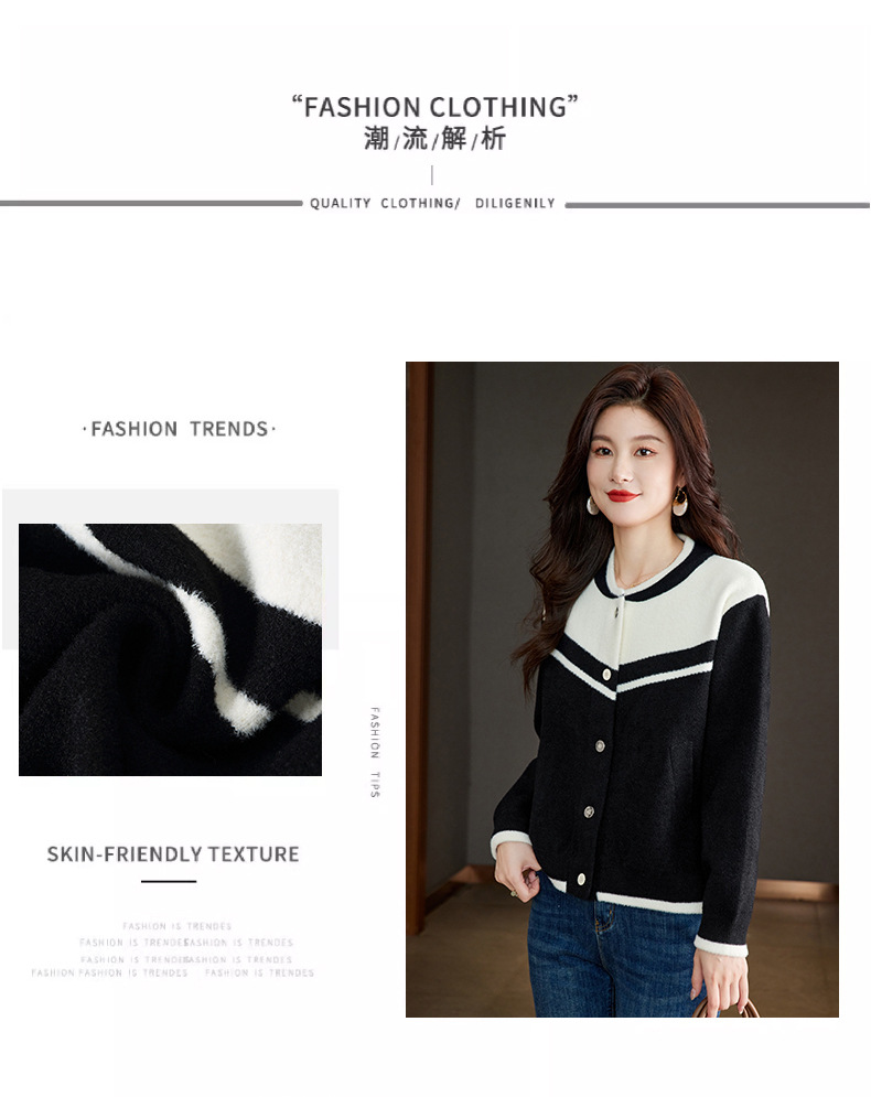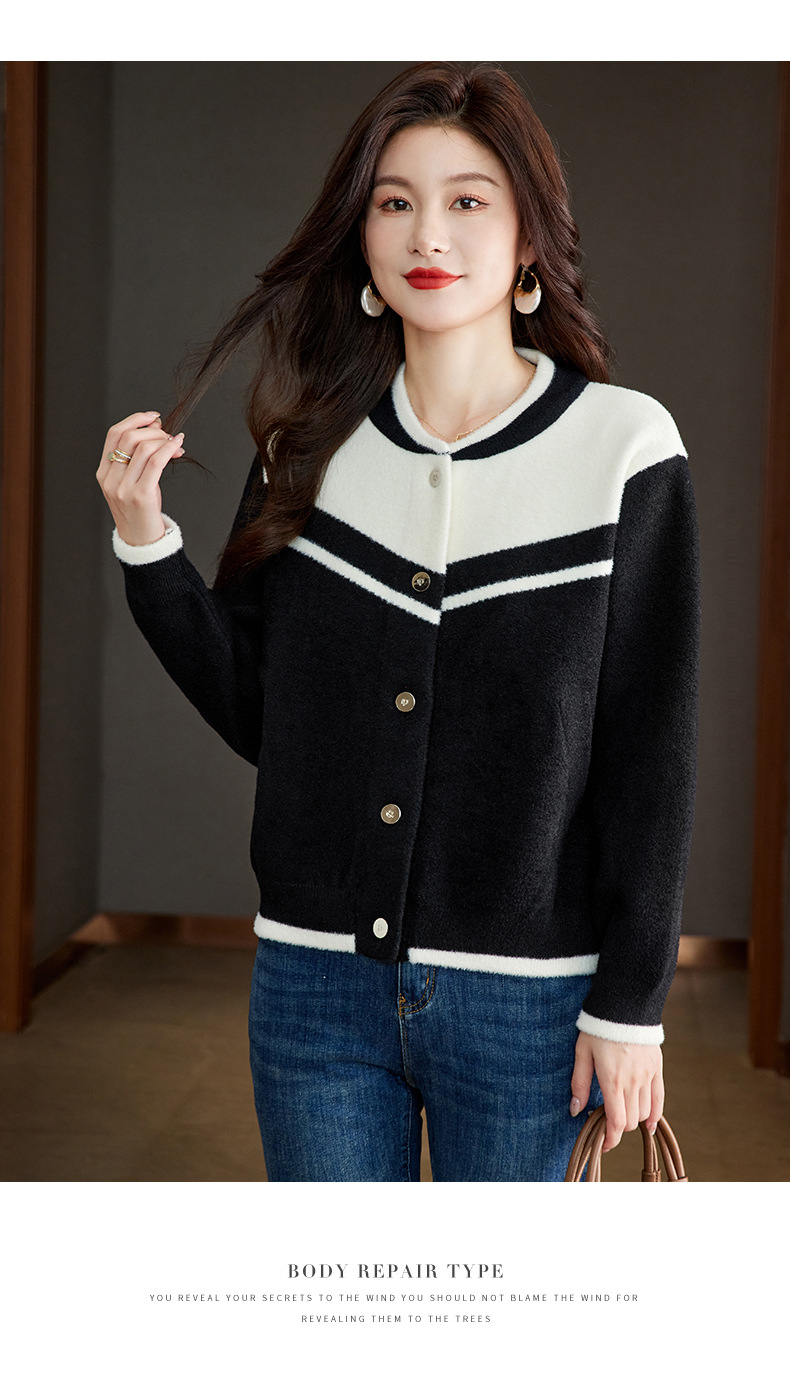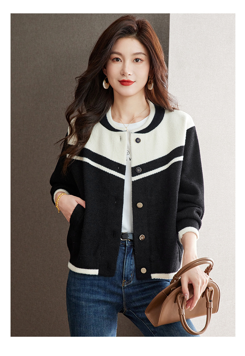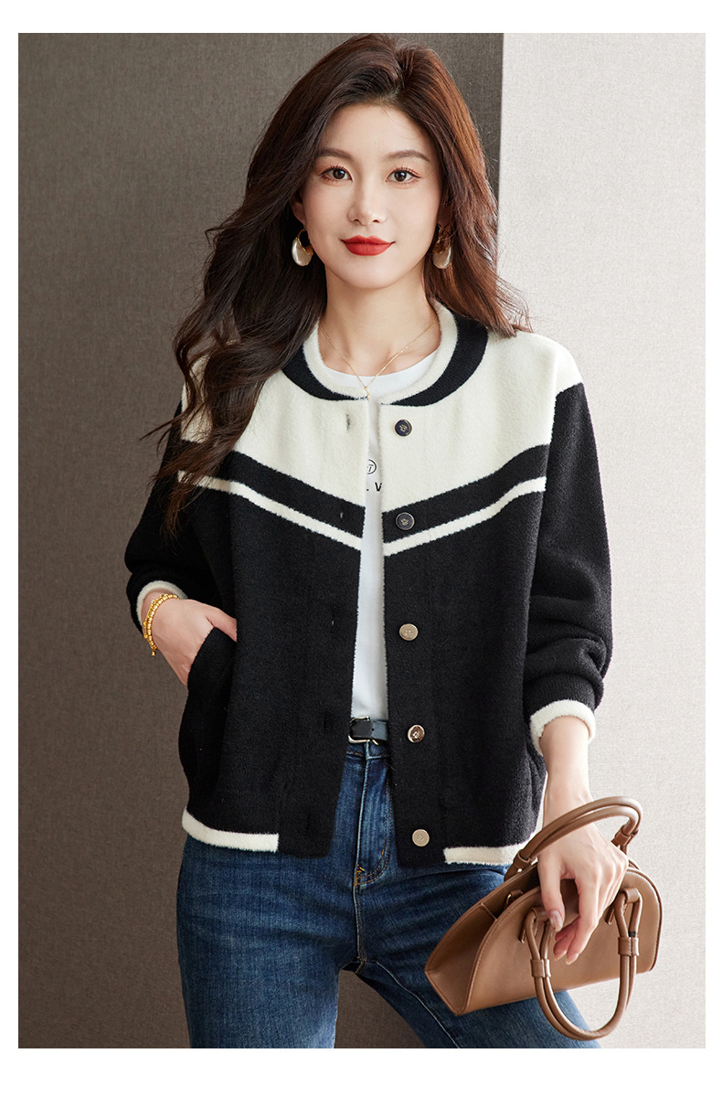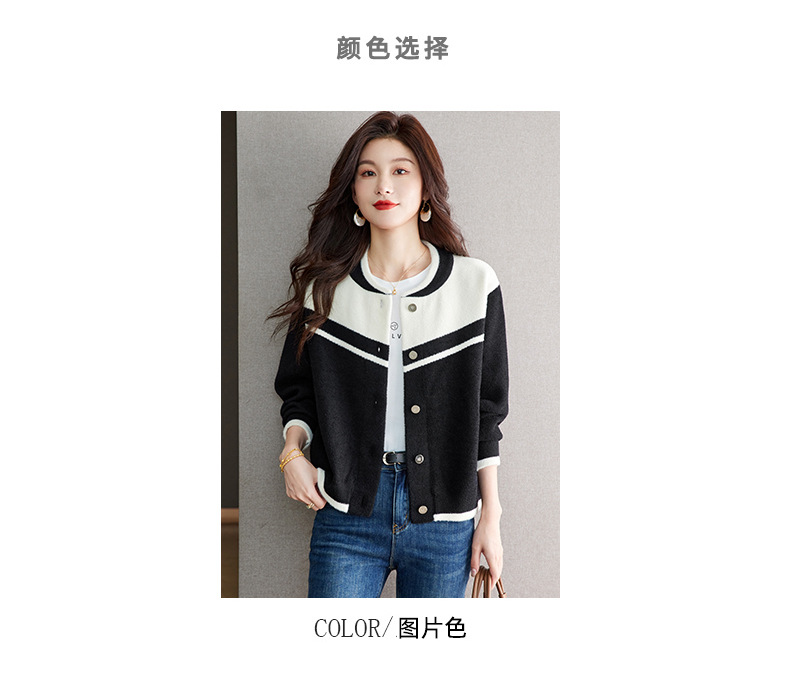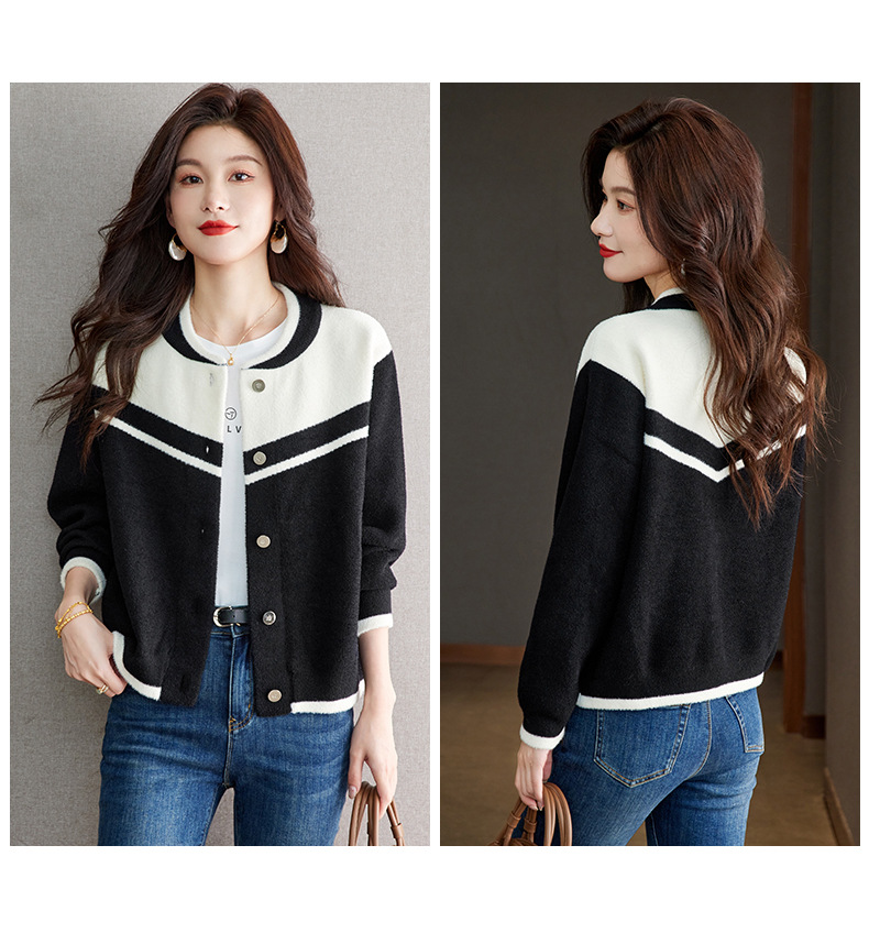 CC-22-115春秋厚款时尚休闲棒球服外搭宽显瘦撞色毛衣外套夹克针织开衫