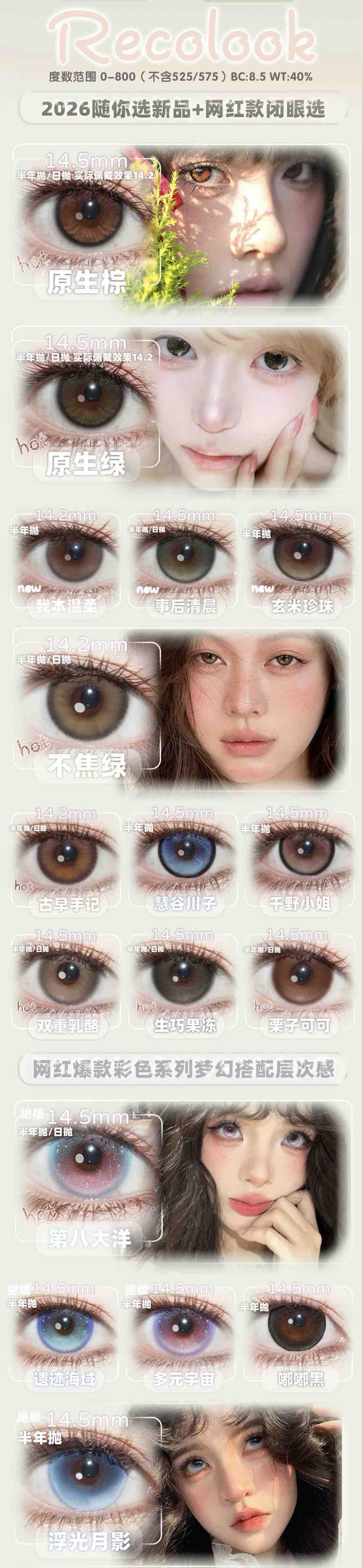 迪丽热巴同款recolook混血/自然大直径半年抛美瞳