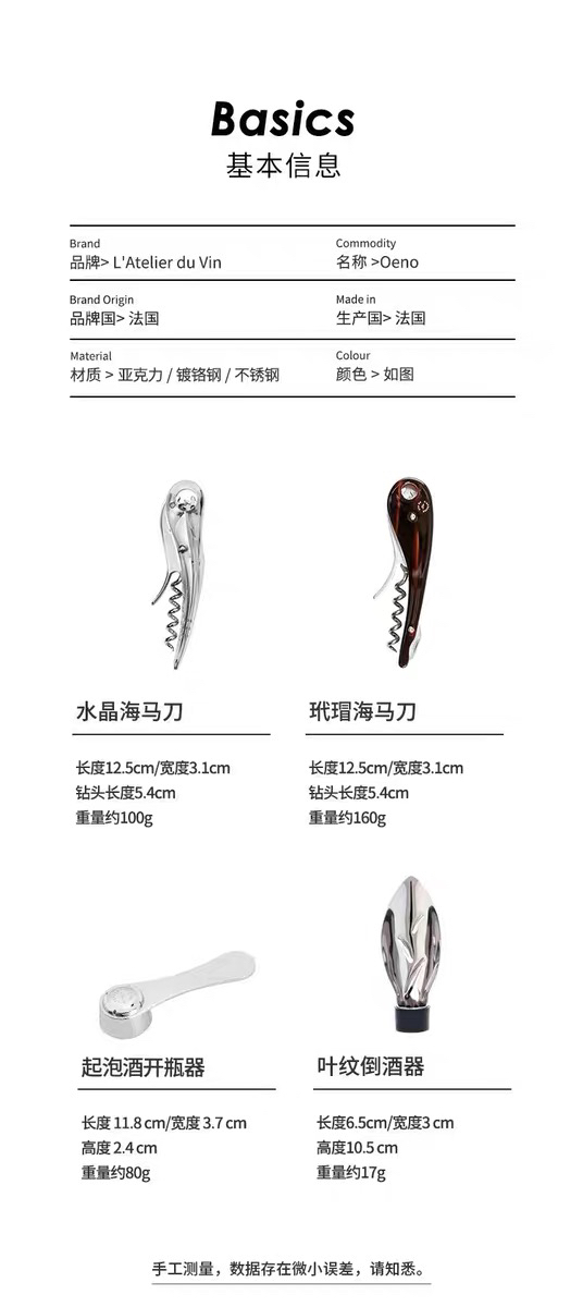 法国L'Atelier du Vin海马刀红酒开瓶器香槟气泡酒塞酒具套装礼盒