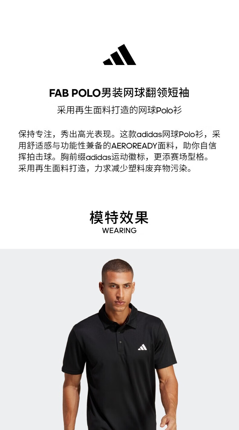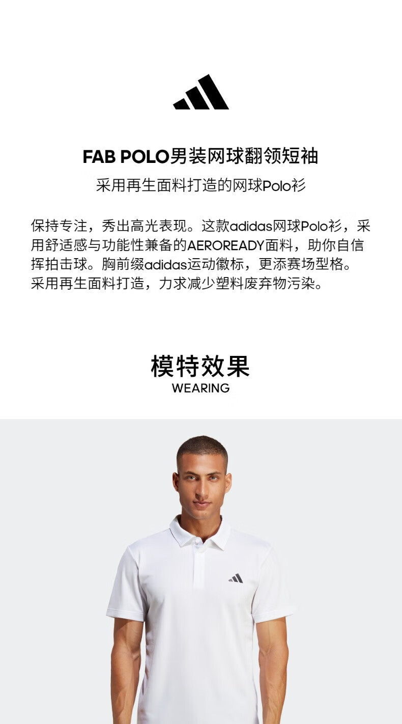 adidas阿迪达斯 男子 网球系列FAB POLO运动 POLP衫 HR8730