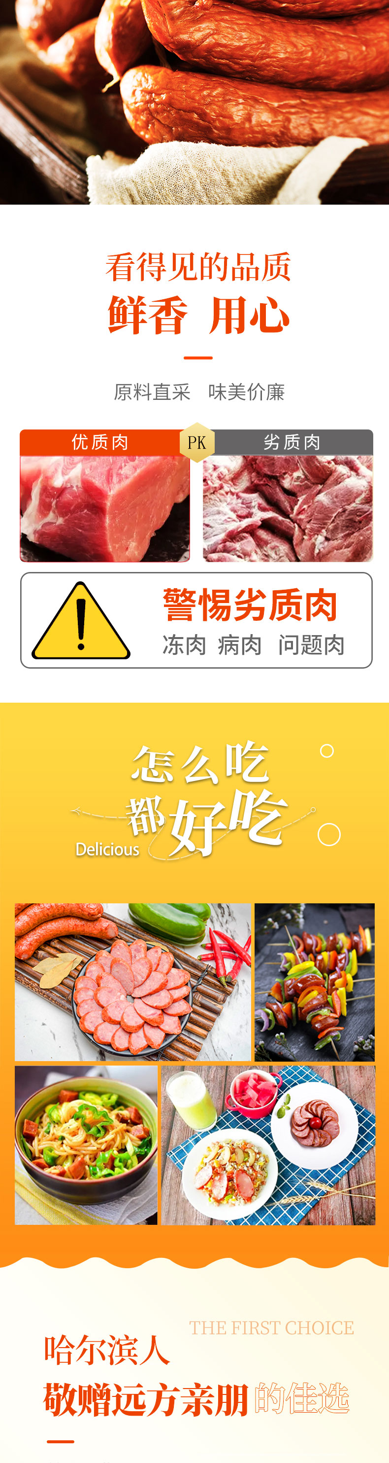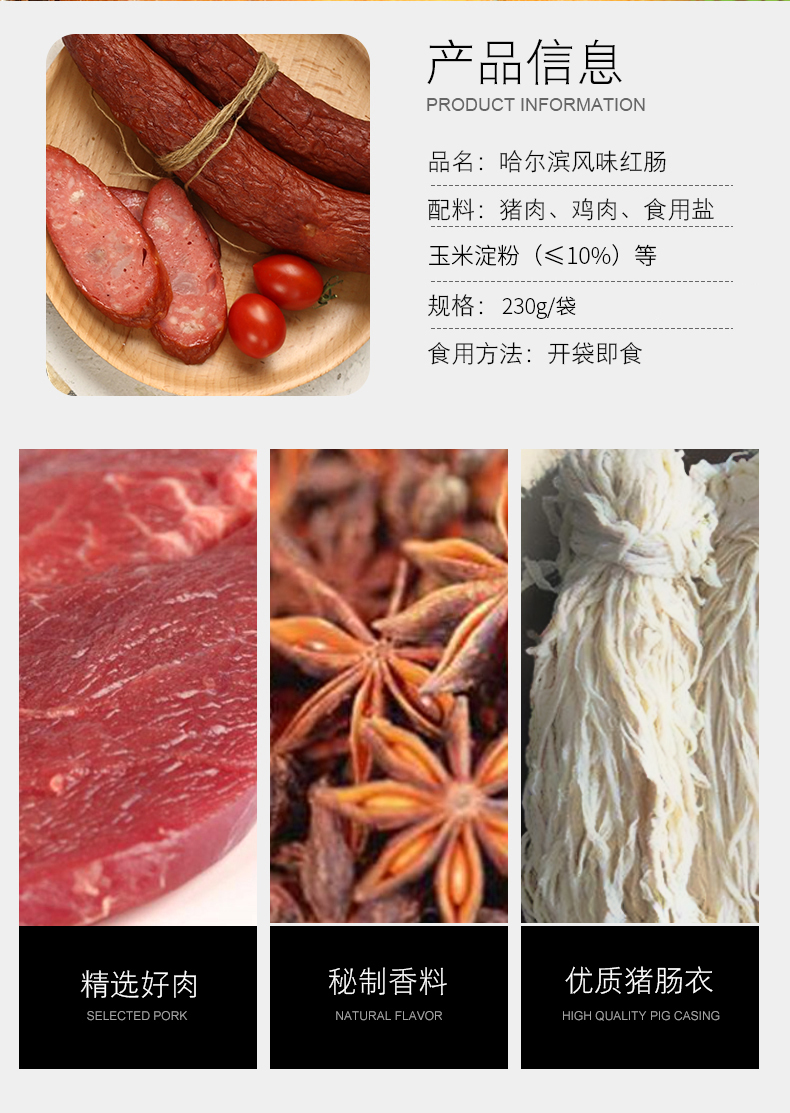 哈尔滨红肠【5根量版装】230g/根高克重 东北特产 碳烤香肠即食下酒菜 根装独立袋装