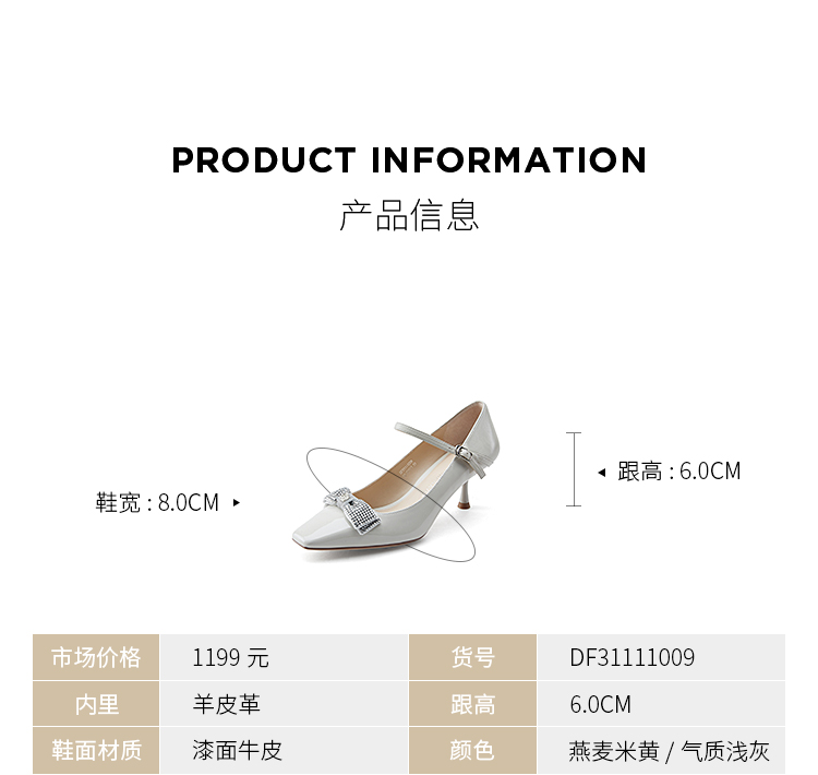 D:FUSE/迪芙斯秋季新款小方头玛丽珍高跟蝴蝶结跟鞋DF31111009