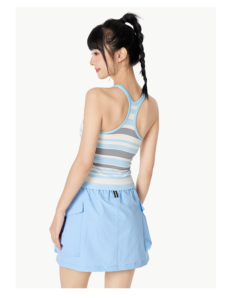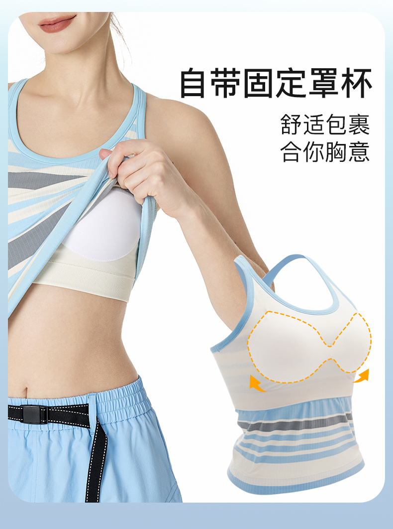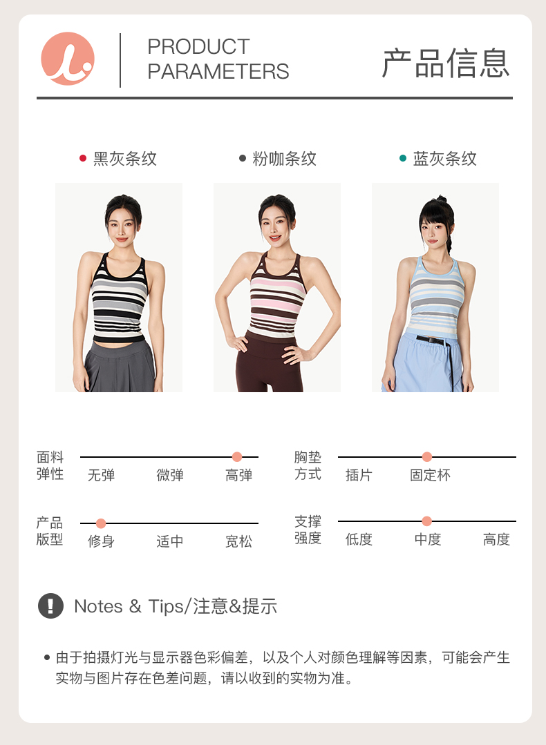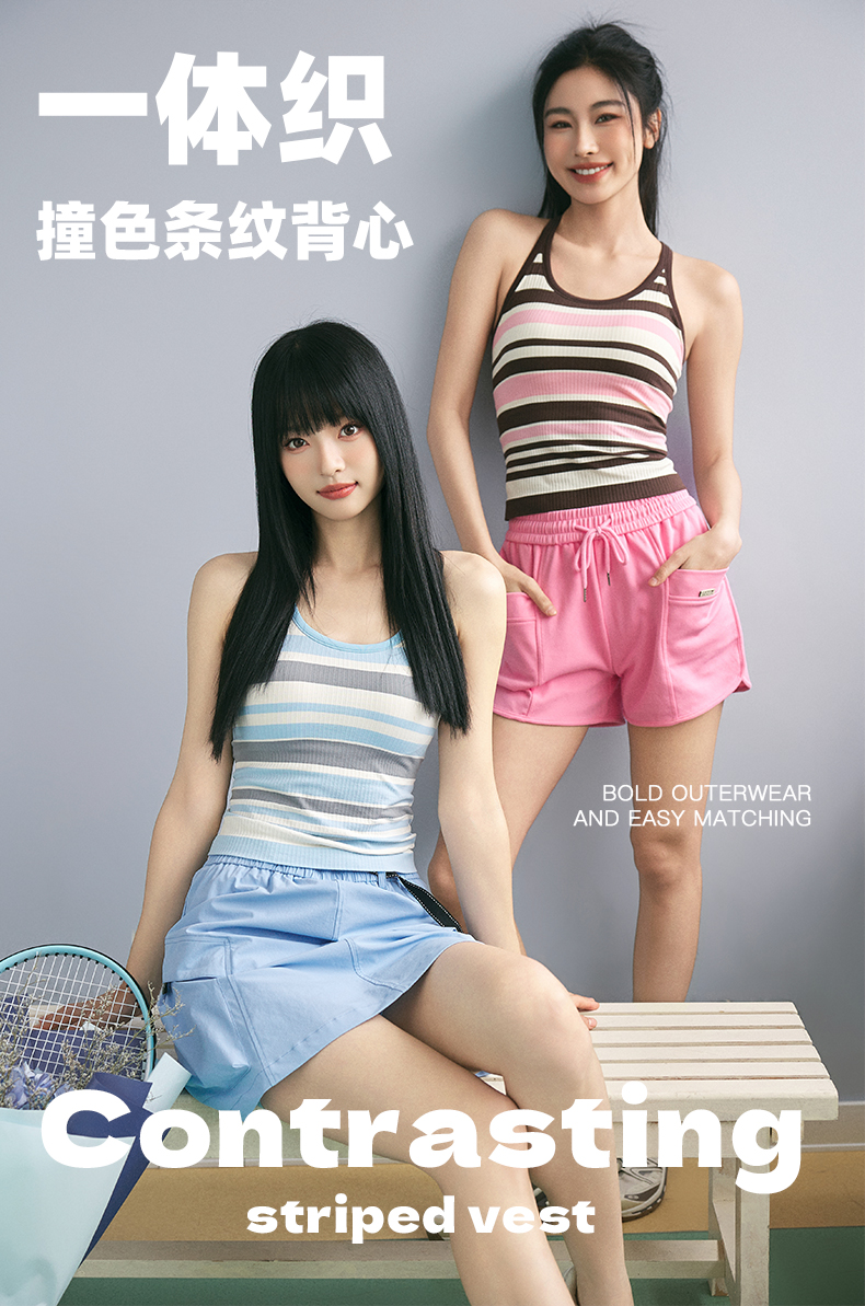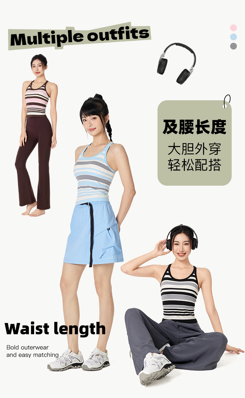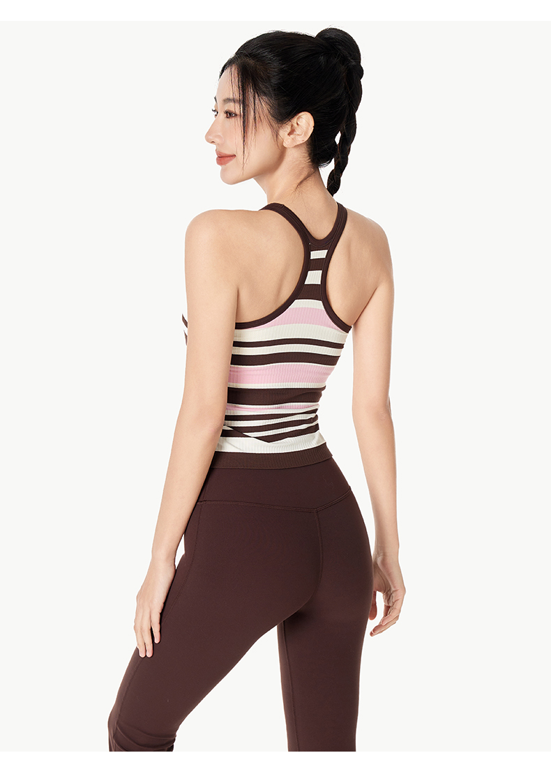 Leorrey/乐拉撞色一体织带罩杯撞色条纹瑜伽工字背运动背心WX1127