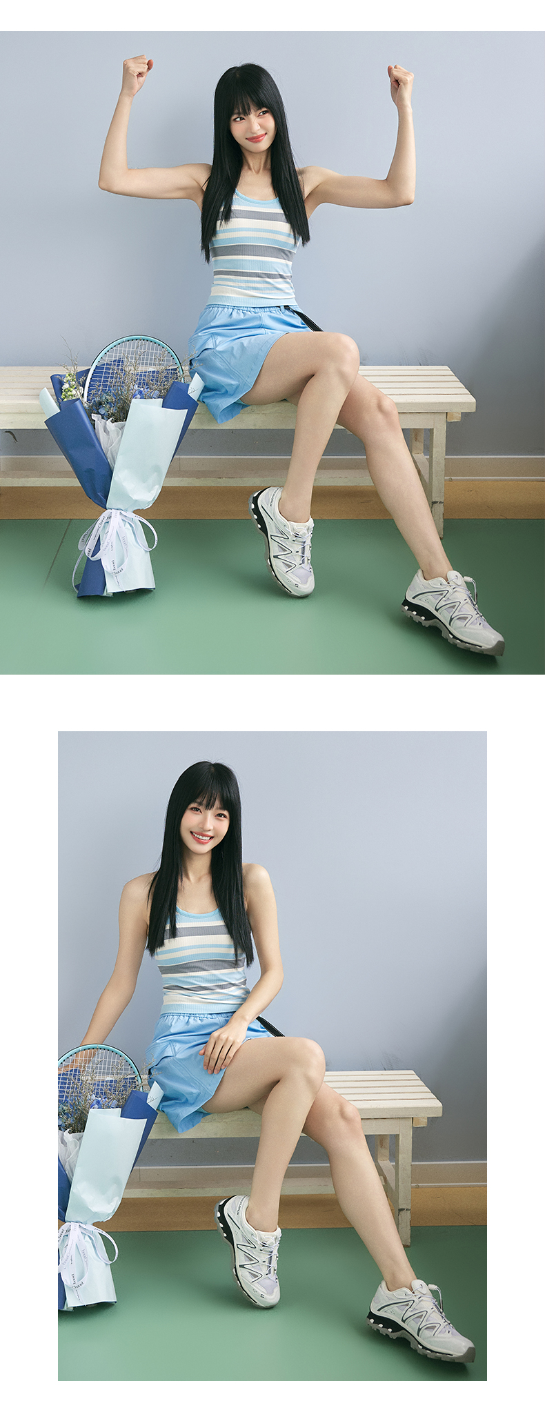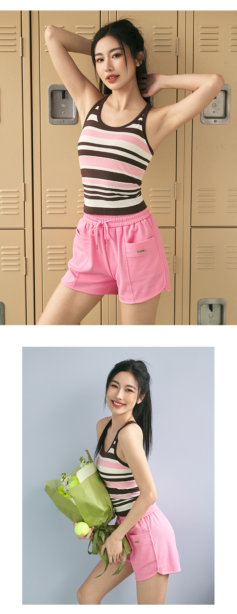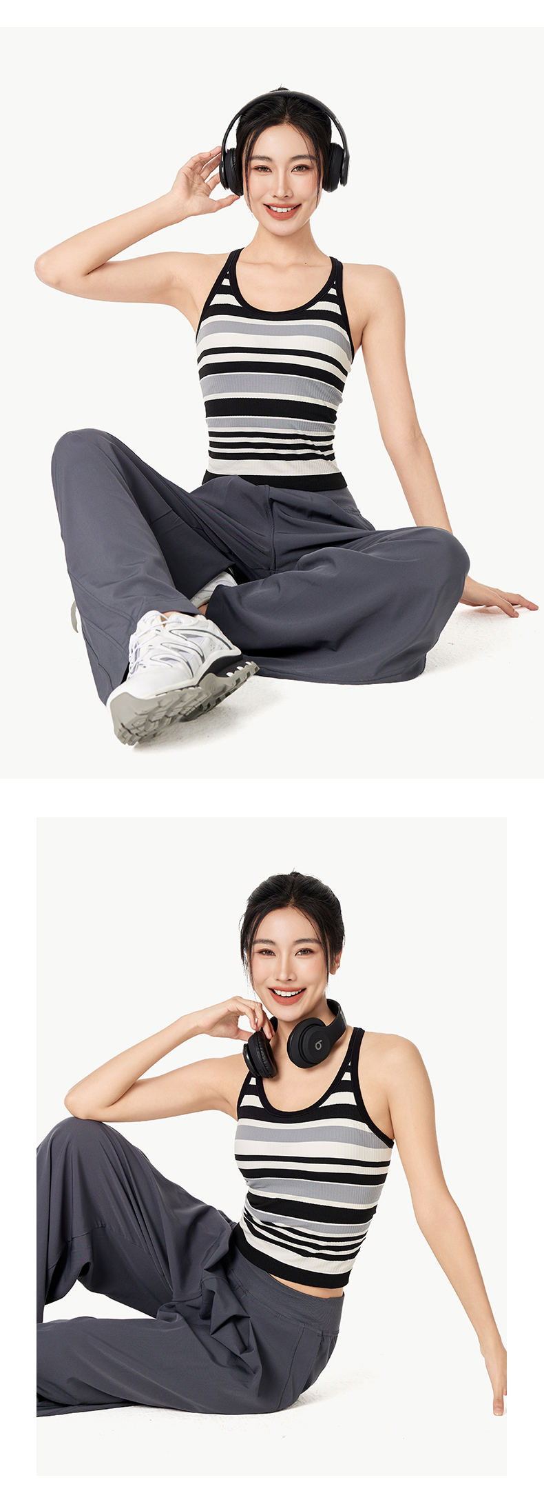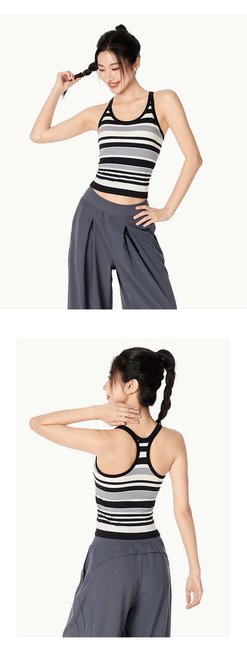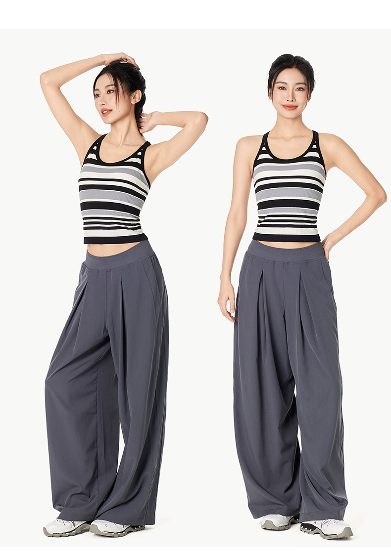 Leorrey/乐拉撞色一体织带罩杯撞色条纹瑜伽工字背运动背心WX1127
