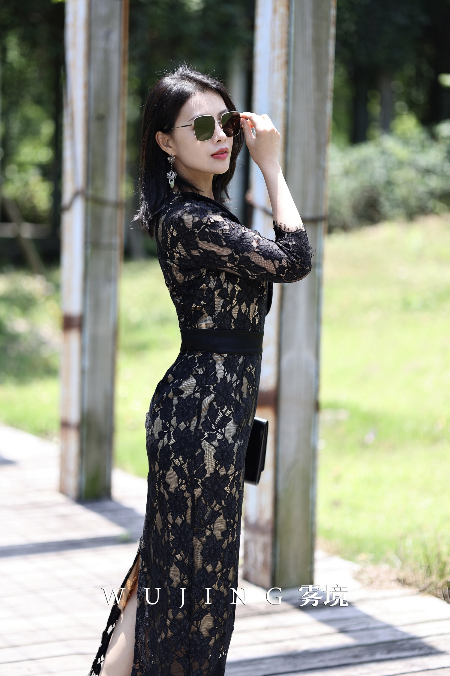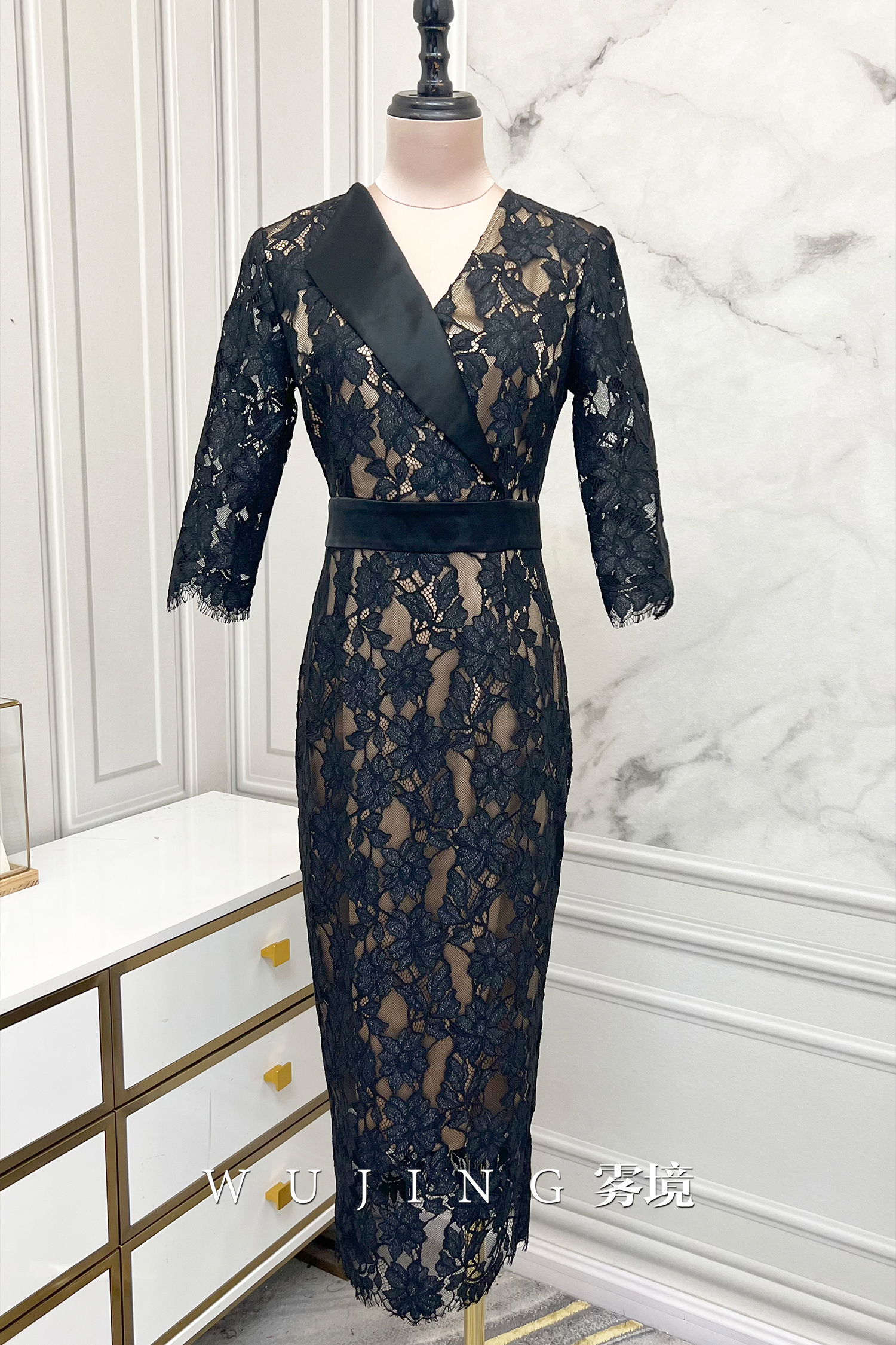 【雾境定制款】黑金璀璨 极致女人味精致高级感进口亮丝提花蕾丝连衣裙 2202220
