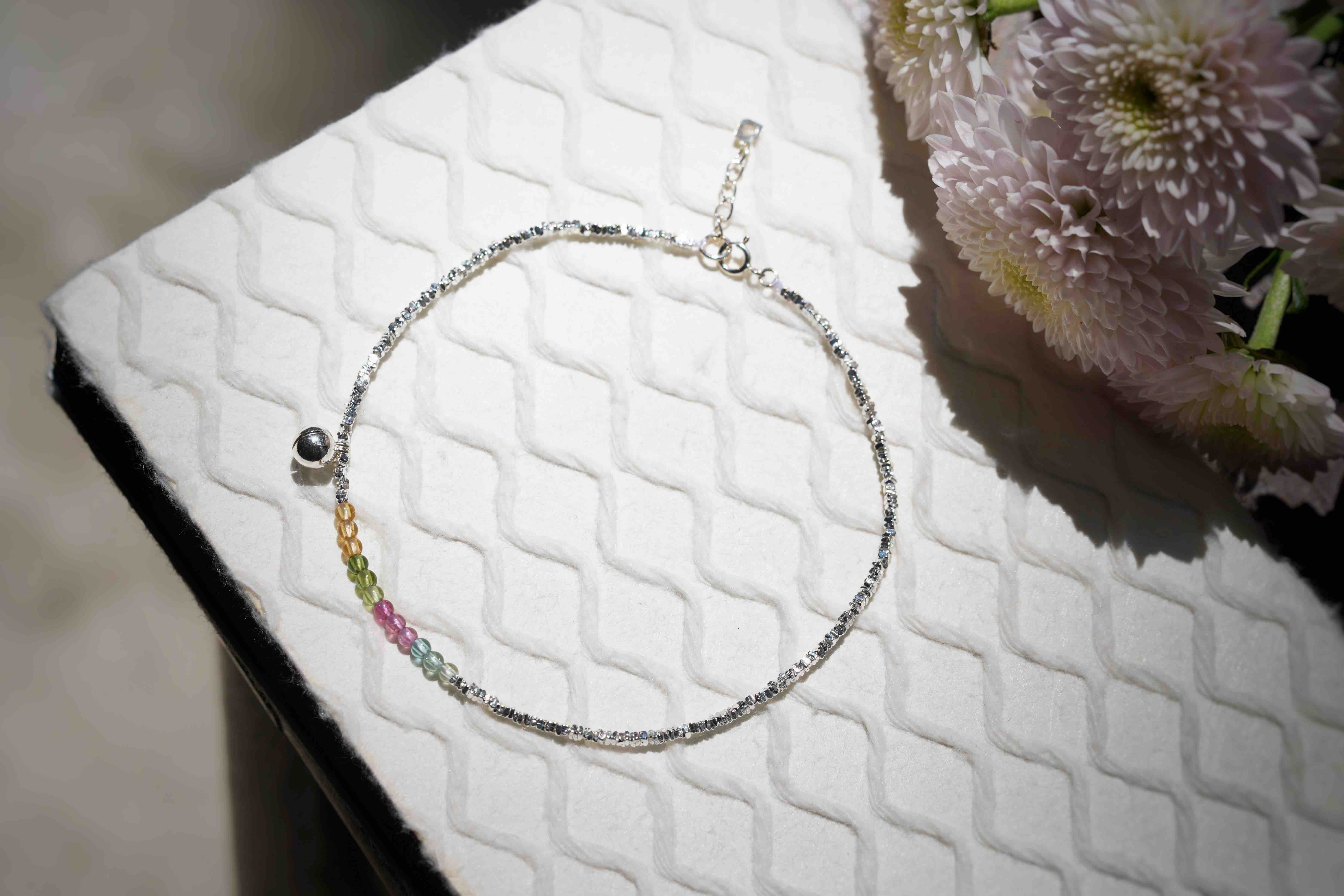 炎炎夏日,脚链终于来了我们用糖果碧玺打造了彩虹的视角