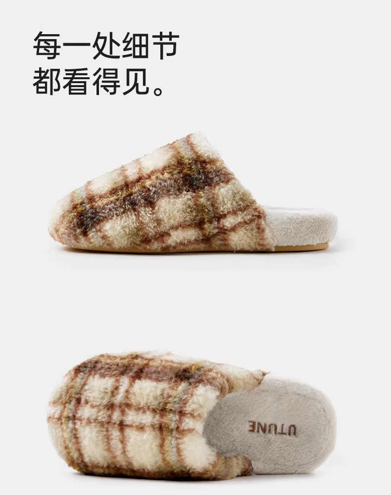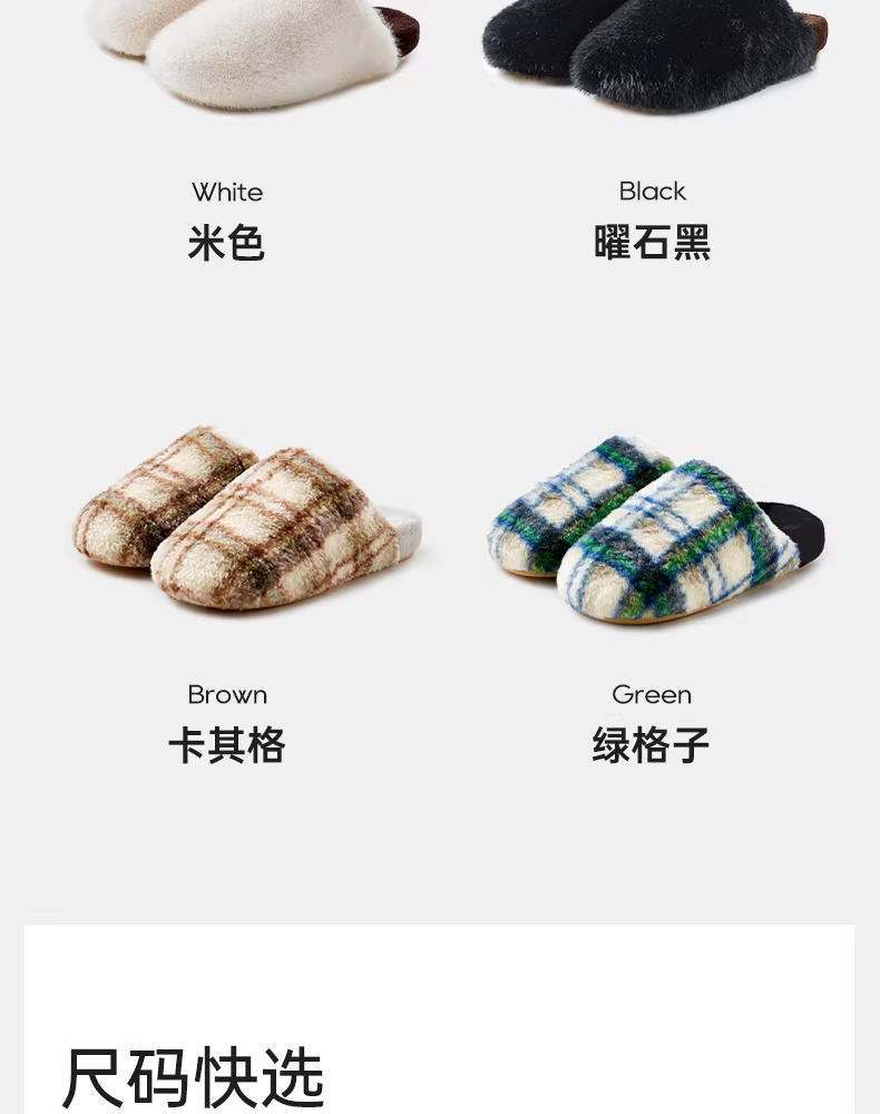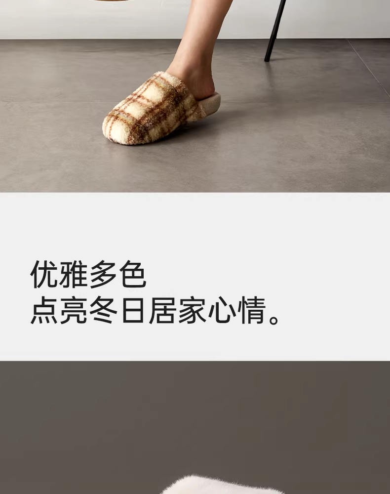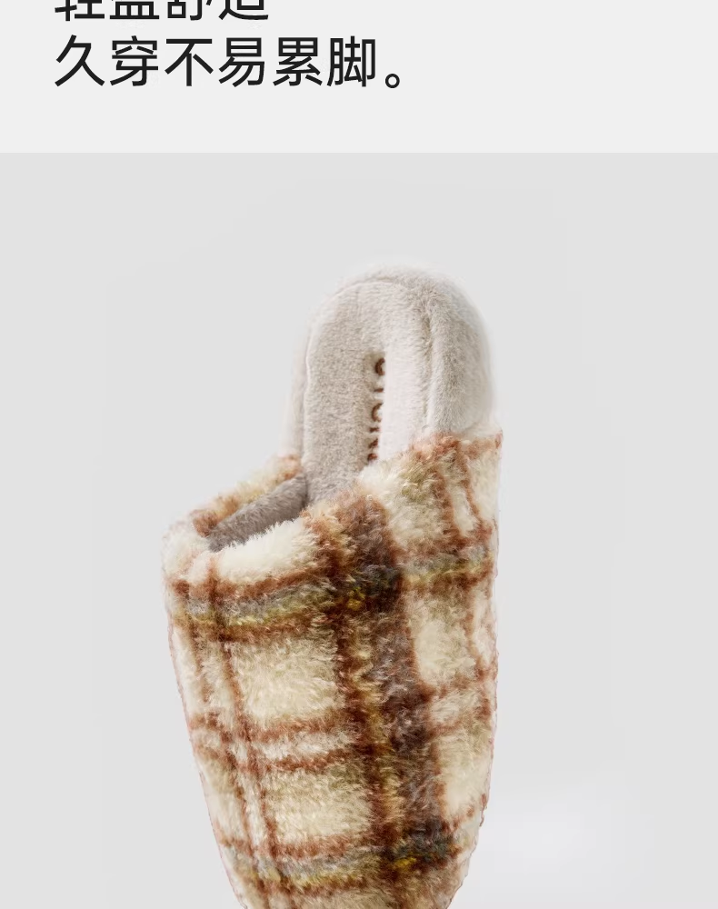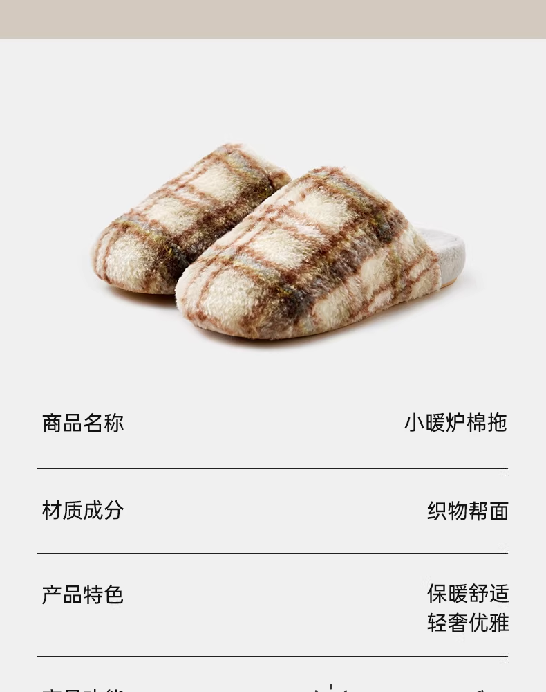 【新年焕新家居棉拖】复古高级感格子棉拖鞋 男女都可选,秋冬季室内家居,情侣厚底毛绒保暖半拖-小暖炉棉拖,织物帮面,保暖舒适,轻奢优雅!