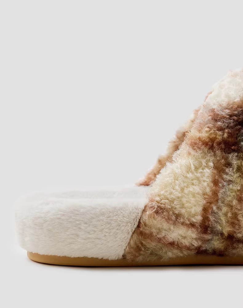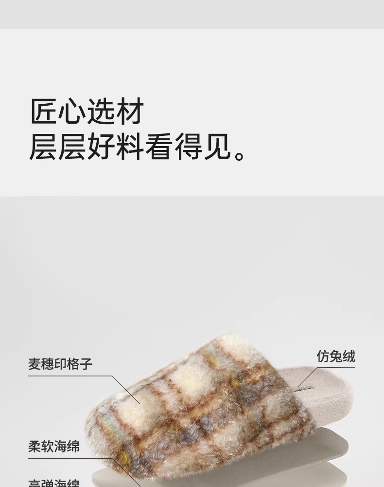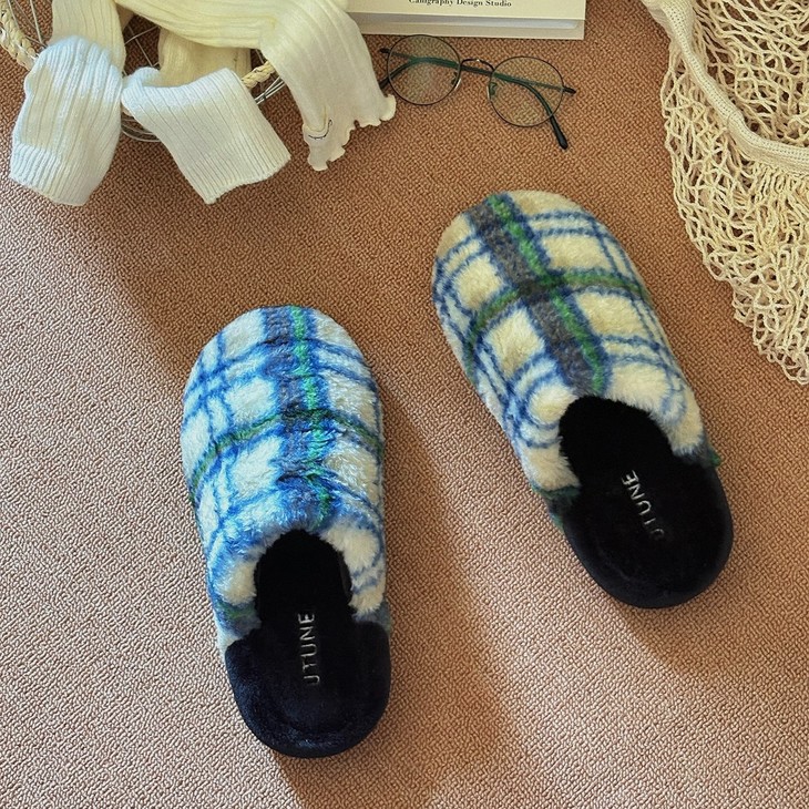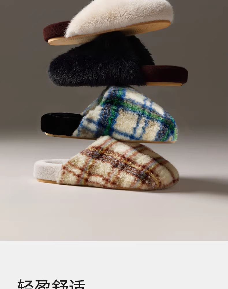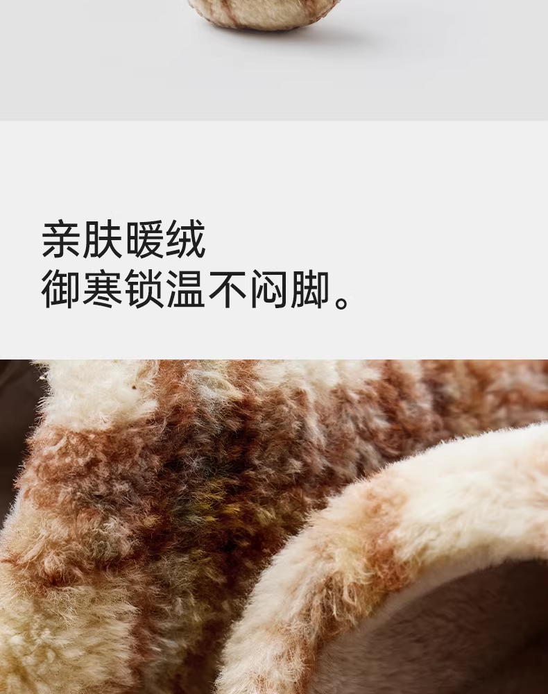 【新年焕新家居棉拖】复古高级感格子棉拖鞋 男女都可选,秋冬季室内家居,情侣厚底毛绒保暖半拖-小暖炉棉拖,织物帮面,保暖舒适,轻奢优雅!