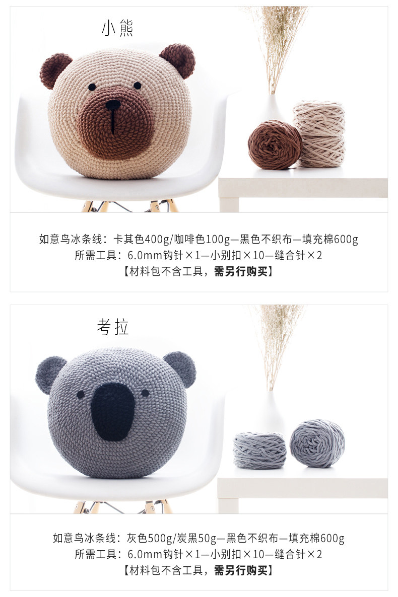 【10套起售】如意鸟手工diy编织动物抱枕材料包 赠送视频图解教程简单易学