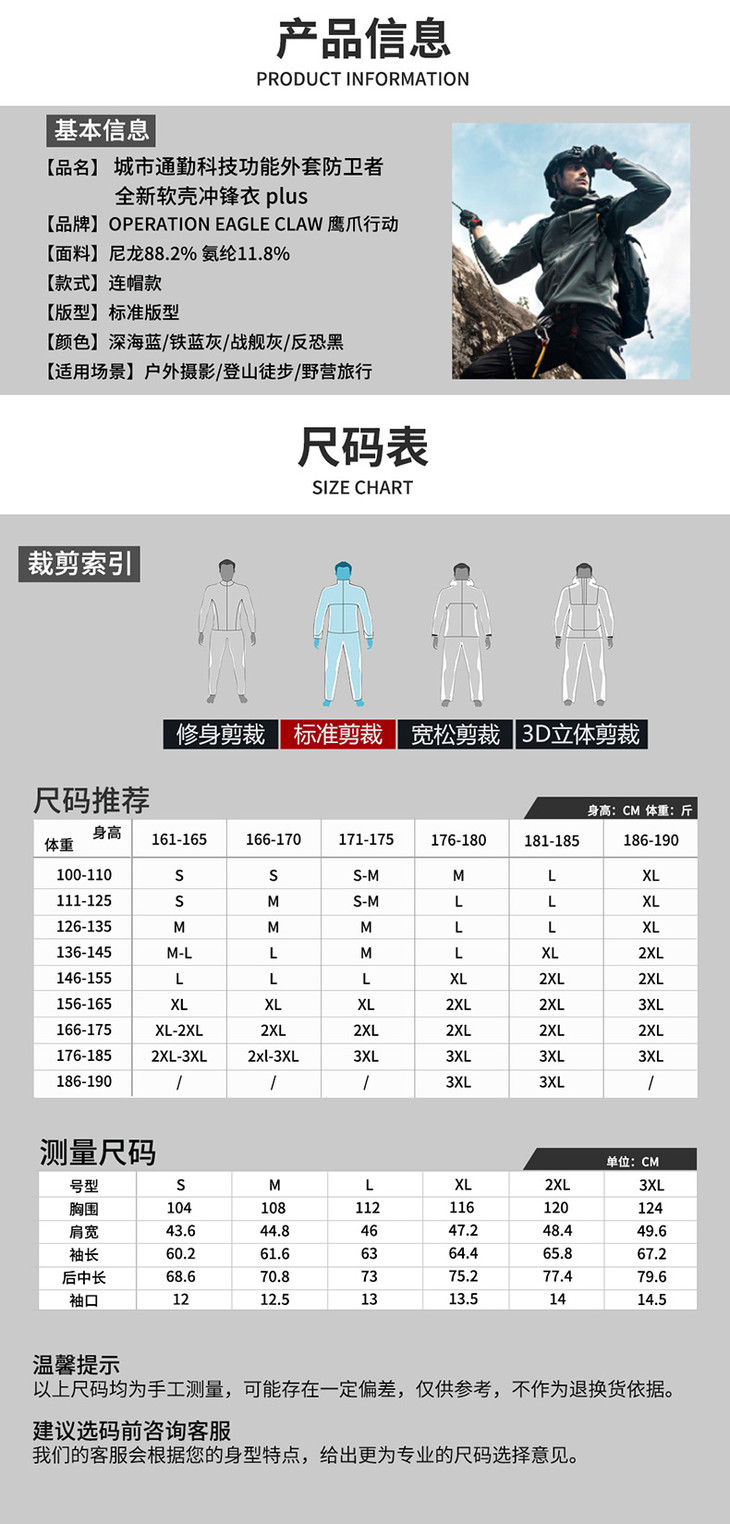2.购买之日起,衣服出现质量问题(非人为损坏)一年内免费维修!无法维修,将直接更换!(磨损件除外)