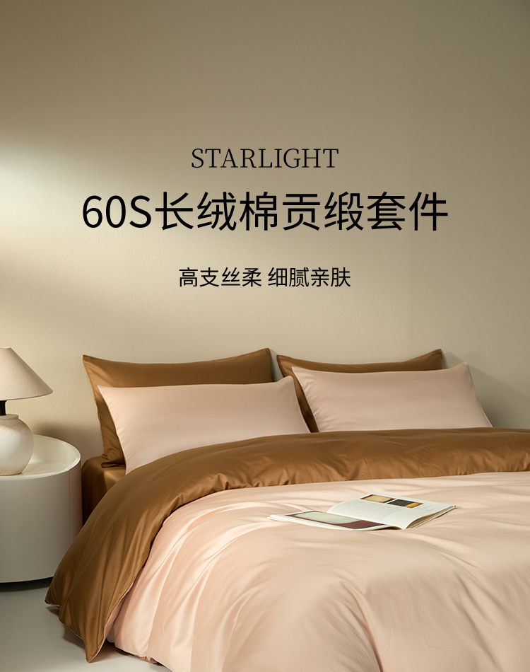 佳丽斯60支全棉四件套贡缎被套纯棉床单床上用品床笠款轻奢高级感
