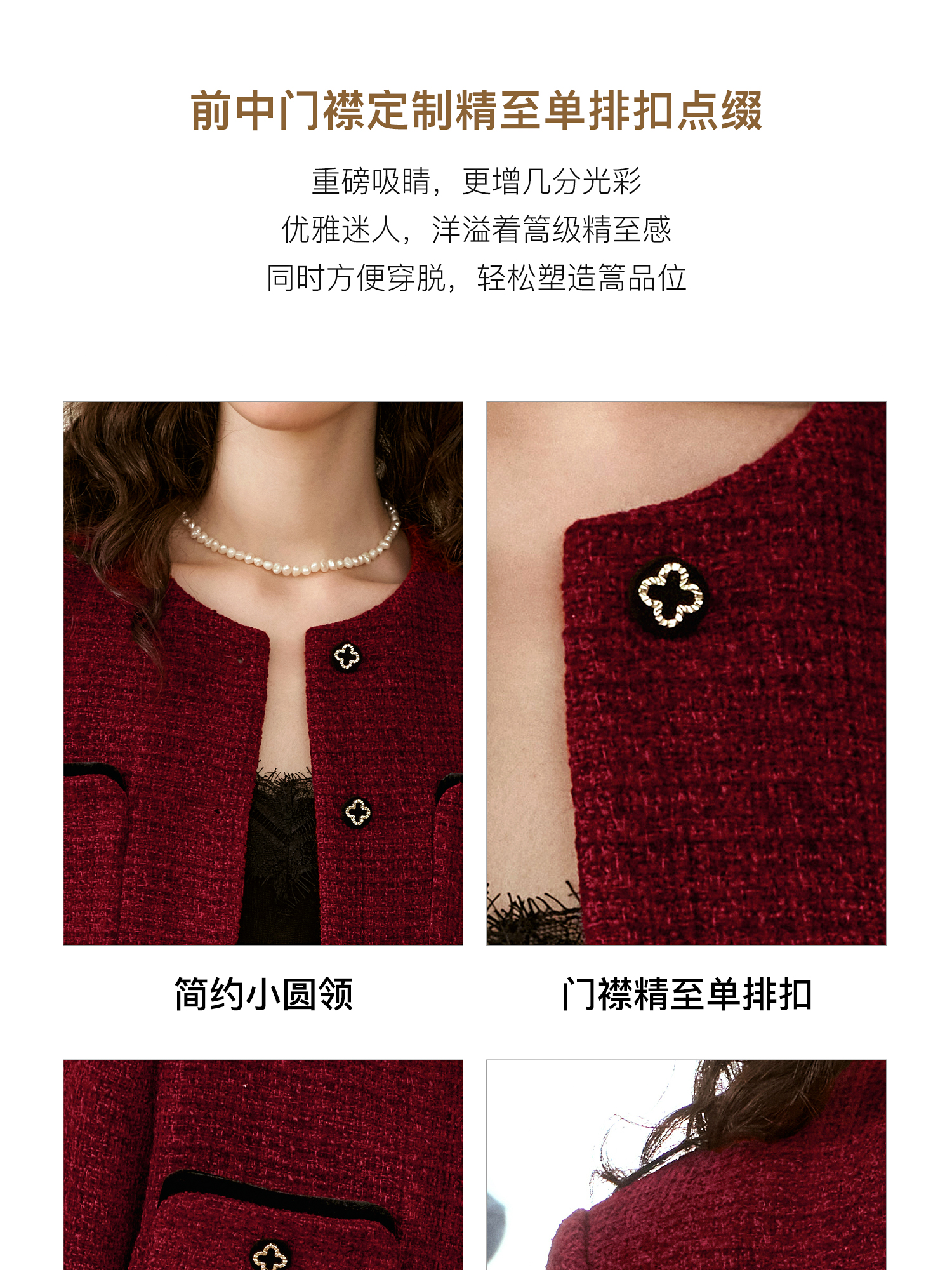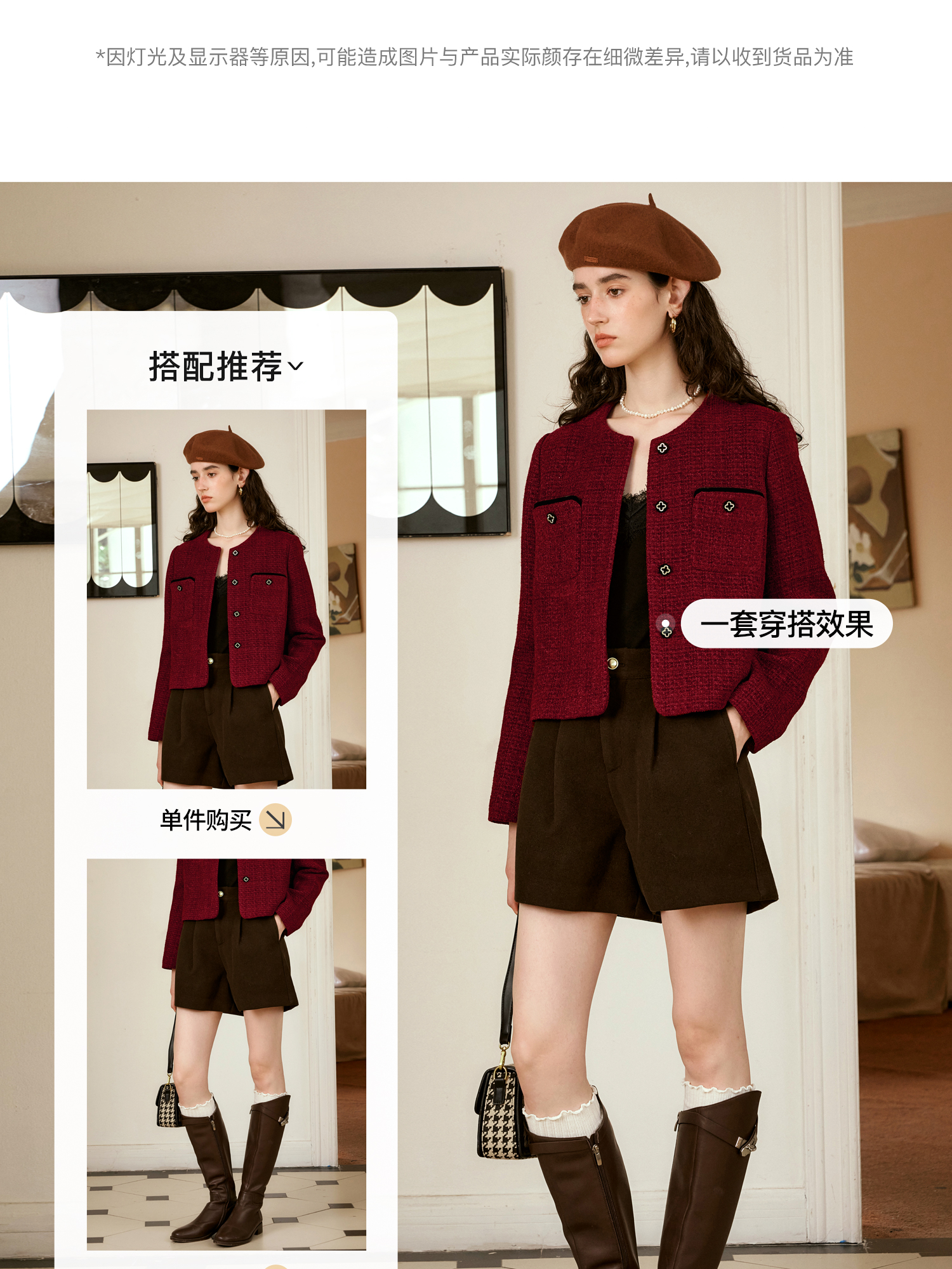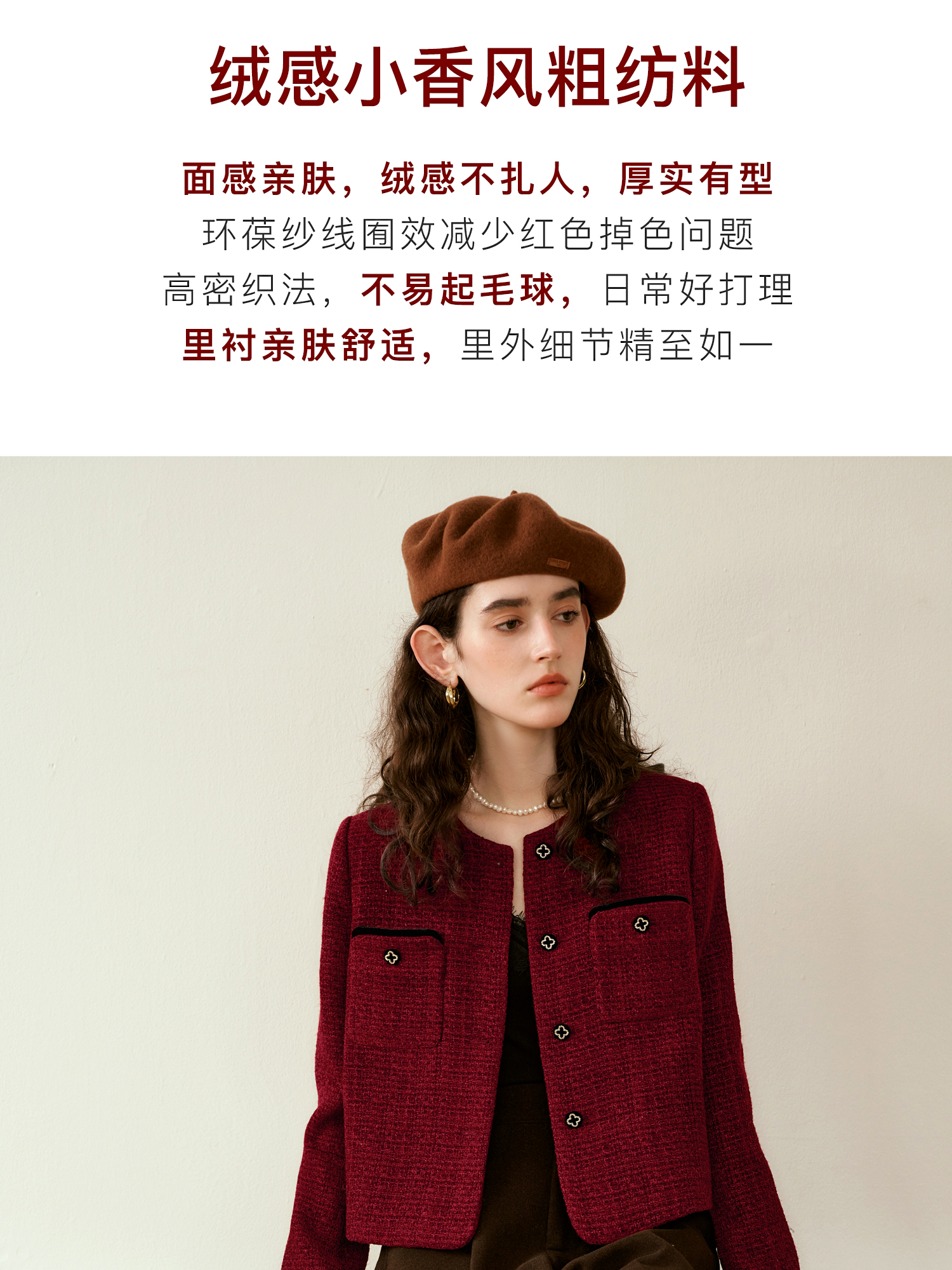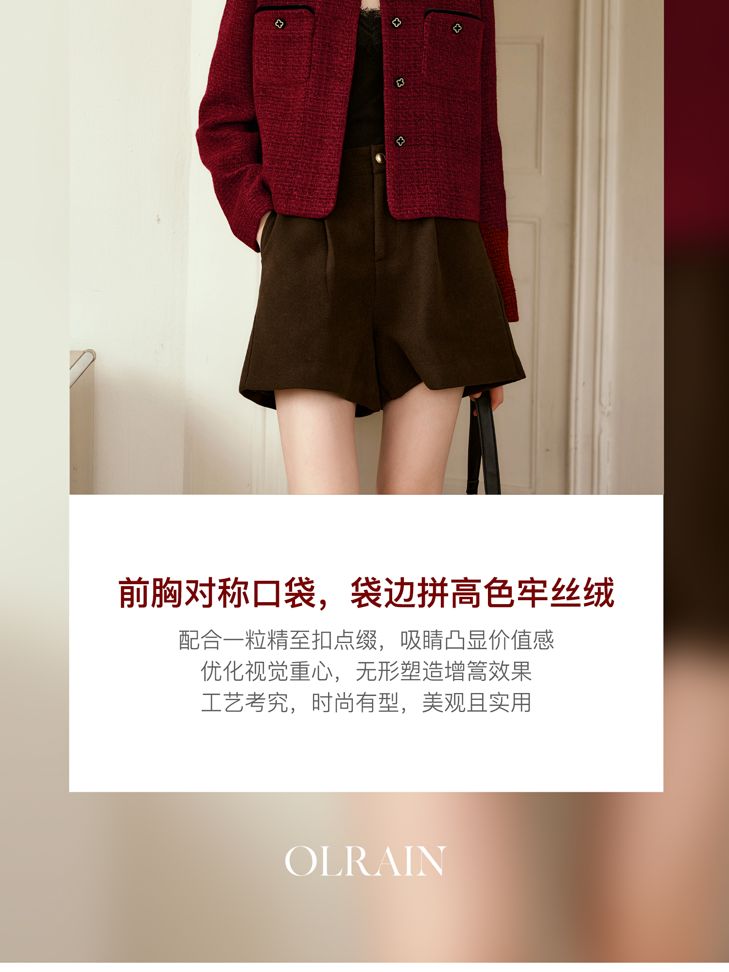 OLrain欧芮儿红色小香风短外套女秋季2024年新款通勤复古圆领上衣