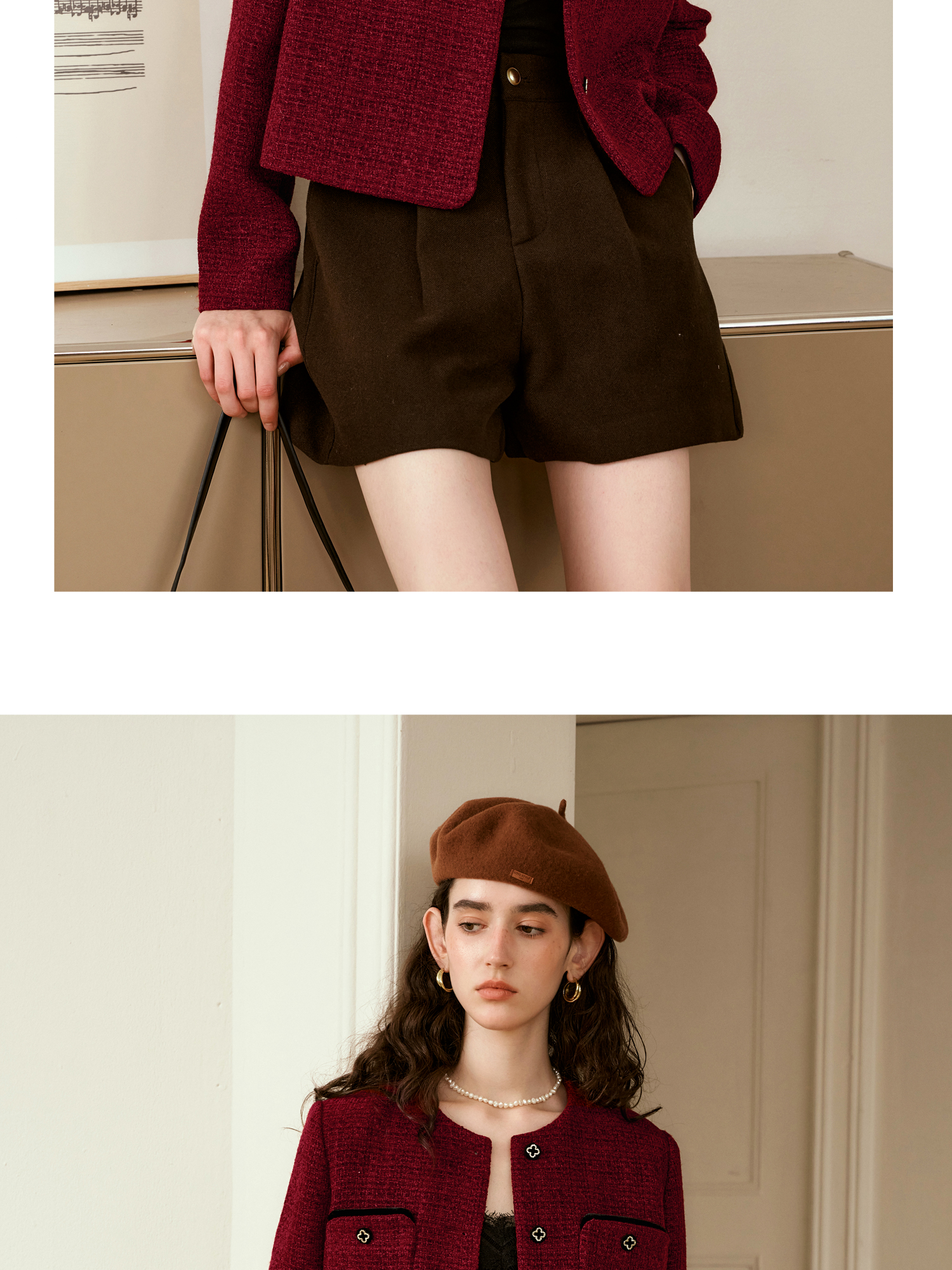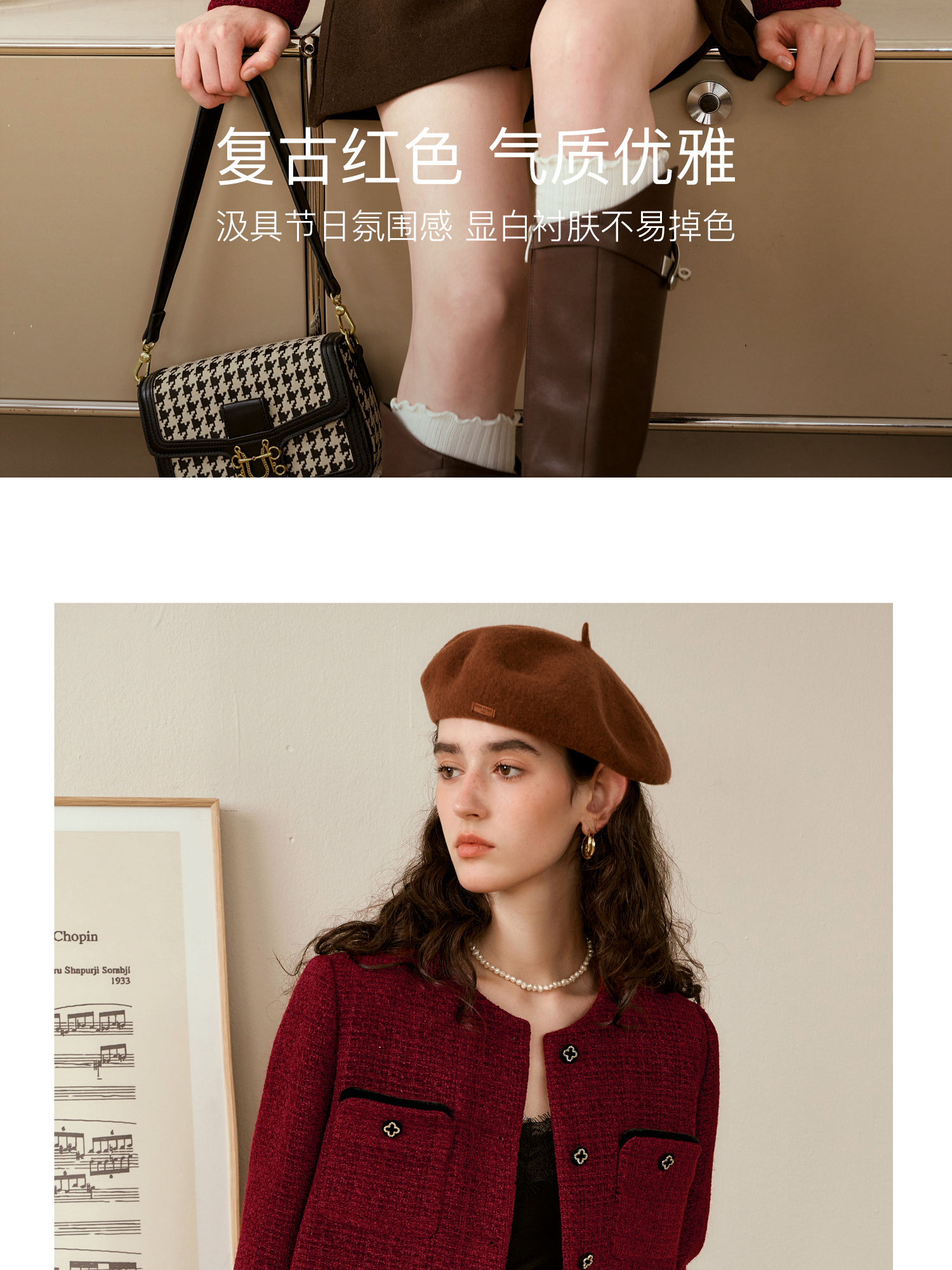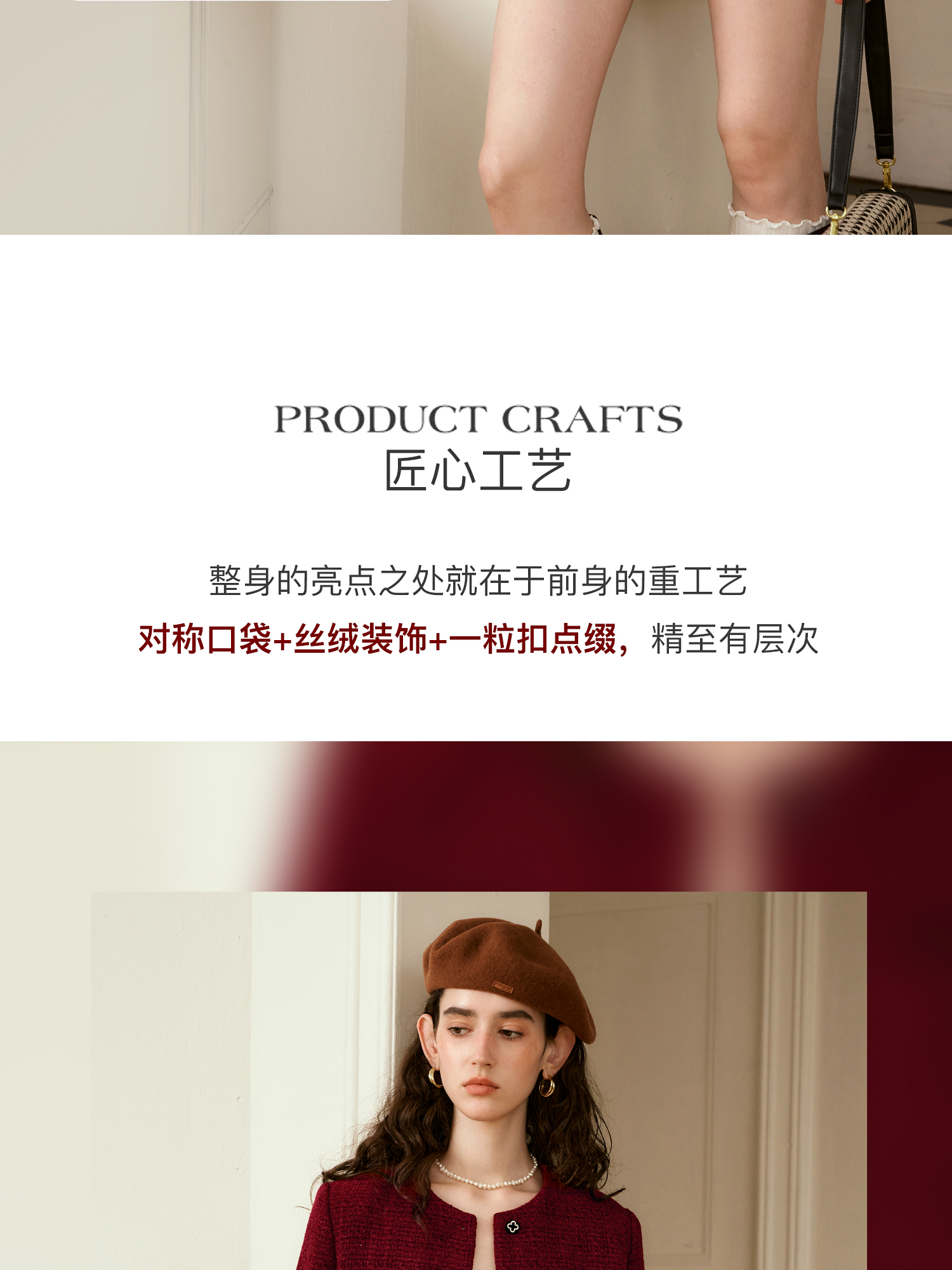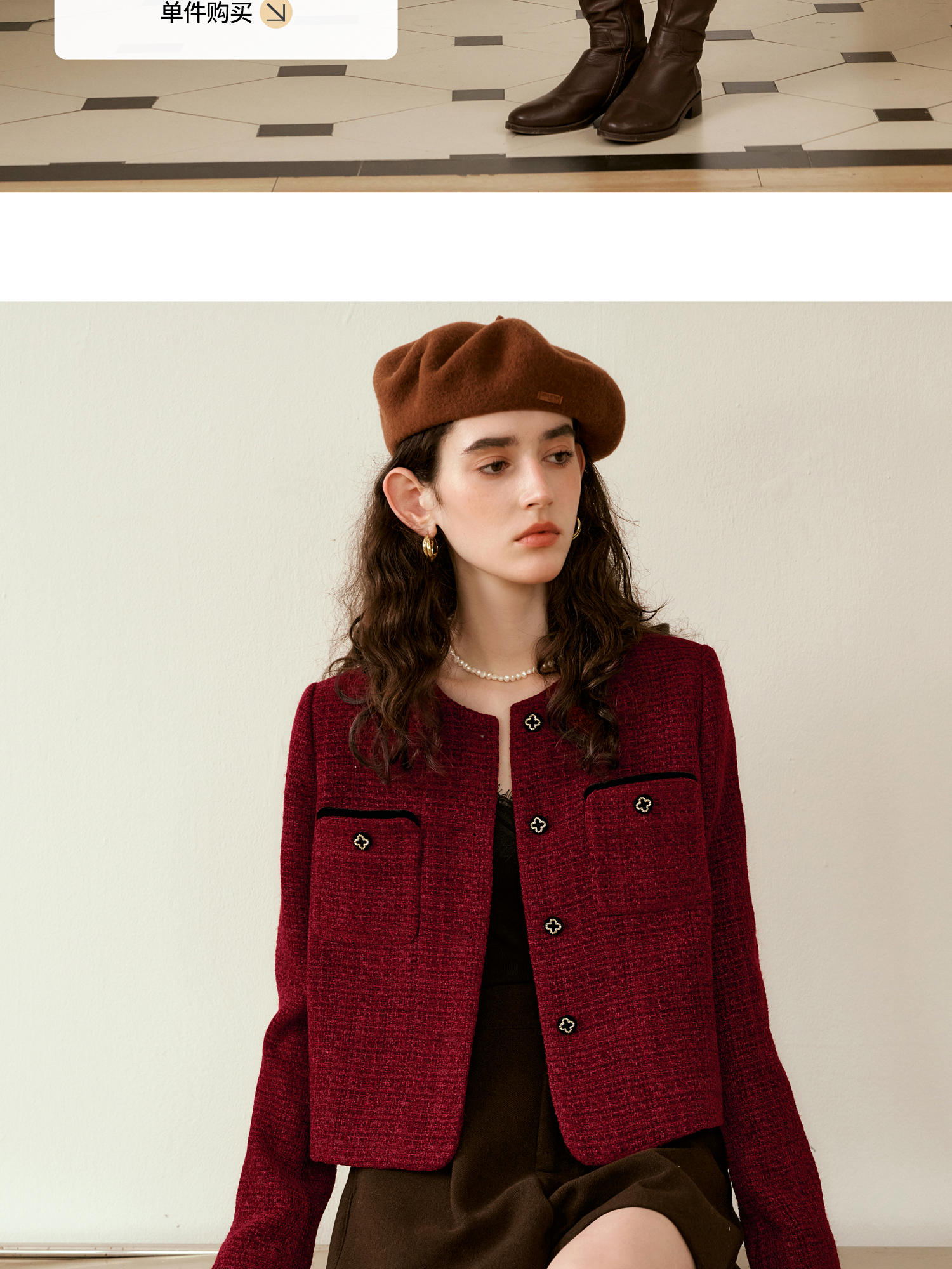 OLrain欧芮儿红色小香风短外套女秋季2024年新款通勤复古圆领上衣
