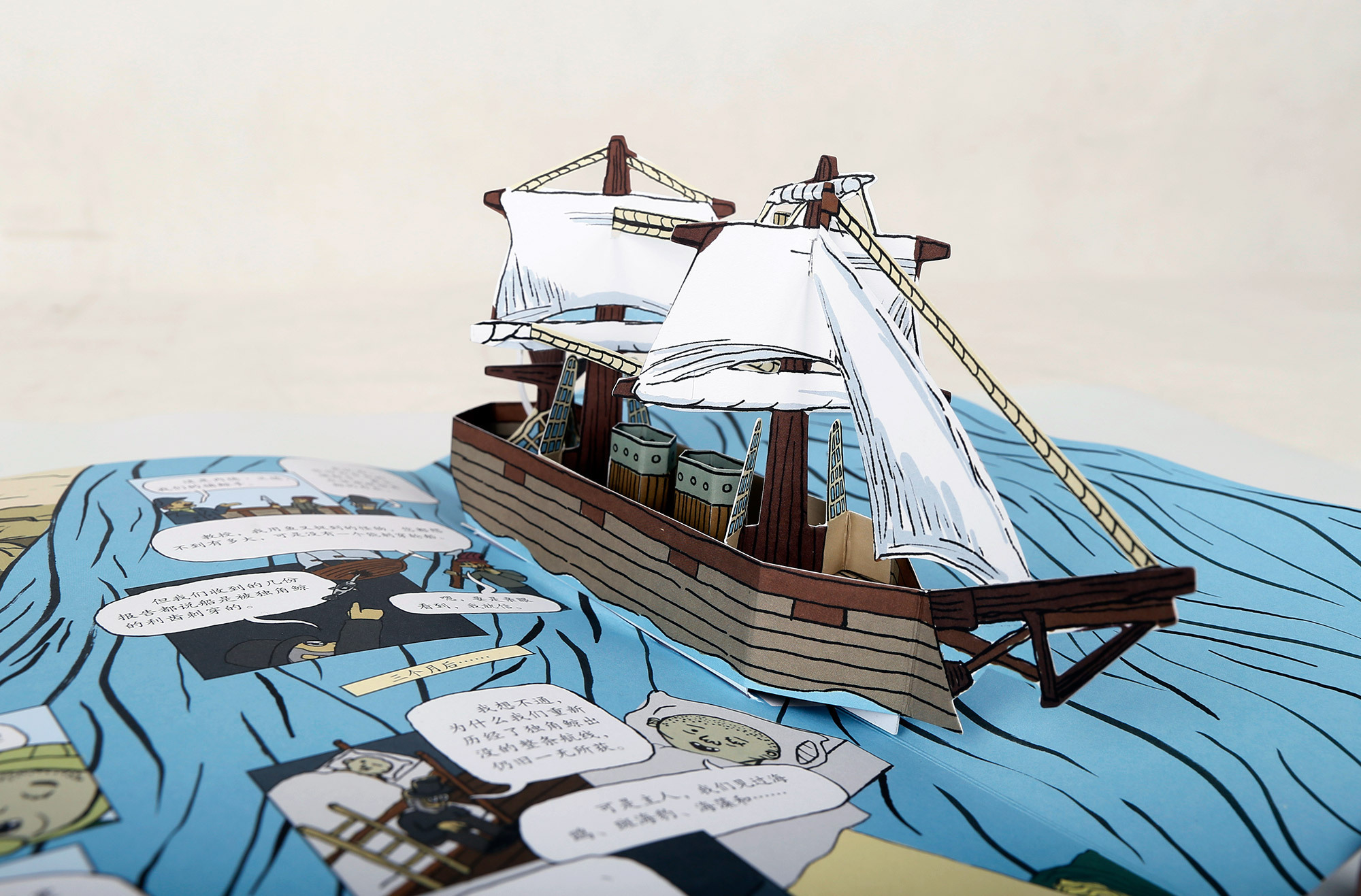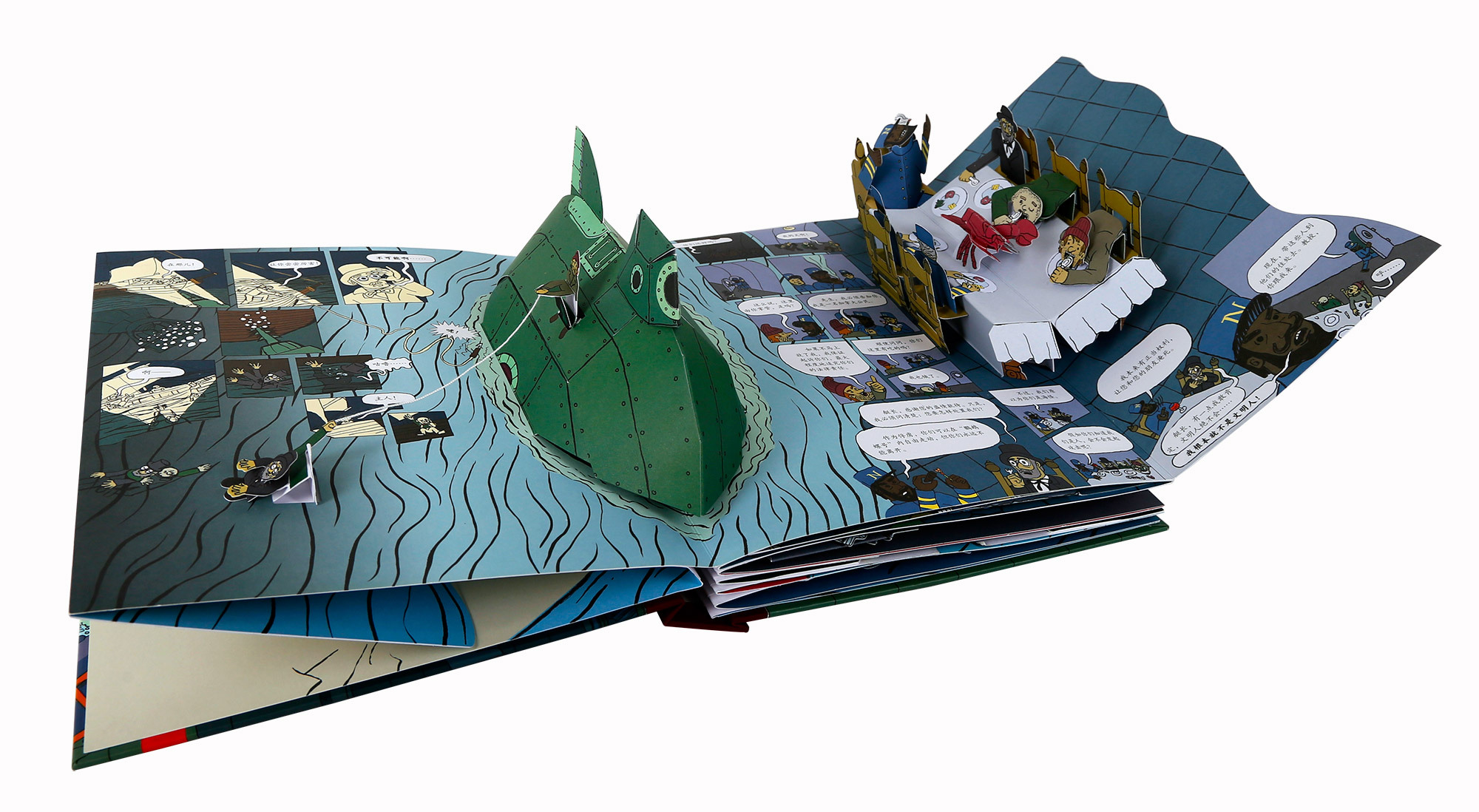 翻翻页内,一幅栩栩如生的鹦鹉螺号内部结构图就展现在我们眼前,精巧细腻。