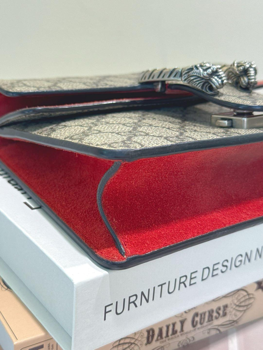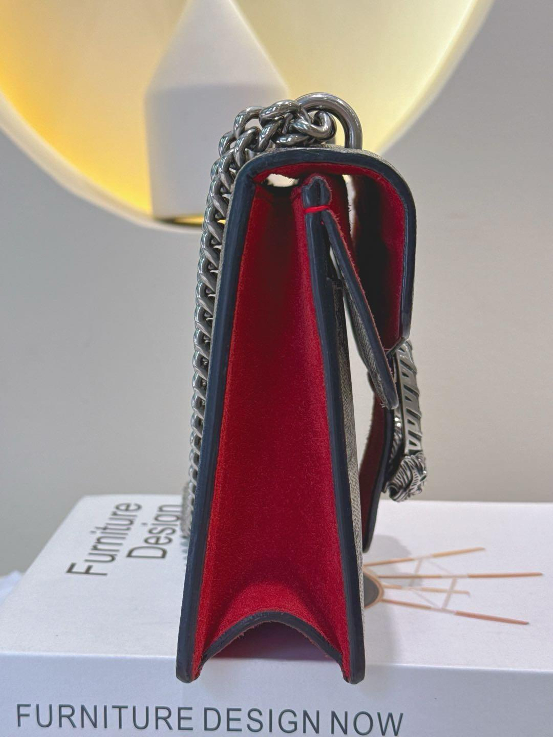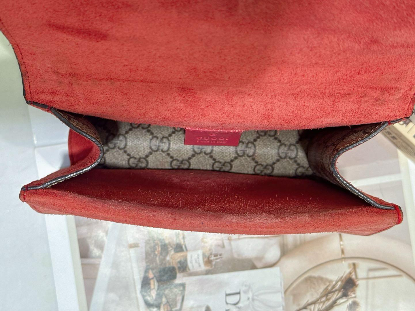 【商品詳情】正品二手 Gucci 小号 老花 红色 酒神 链条包🏎️ 95新 20×15。麂皮有正常使用泛白 边角有正常磨损感。夏日搭配绝美