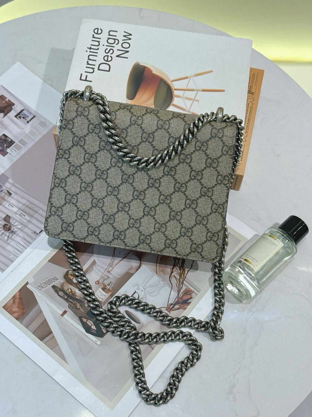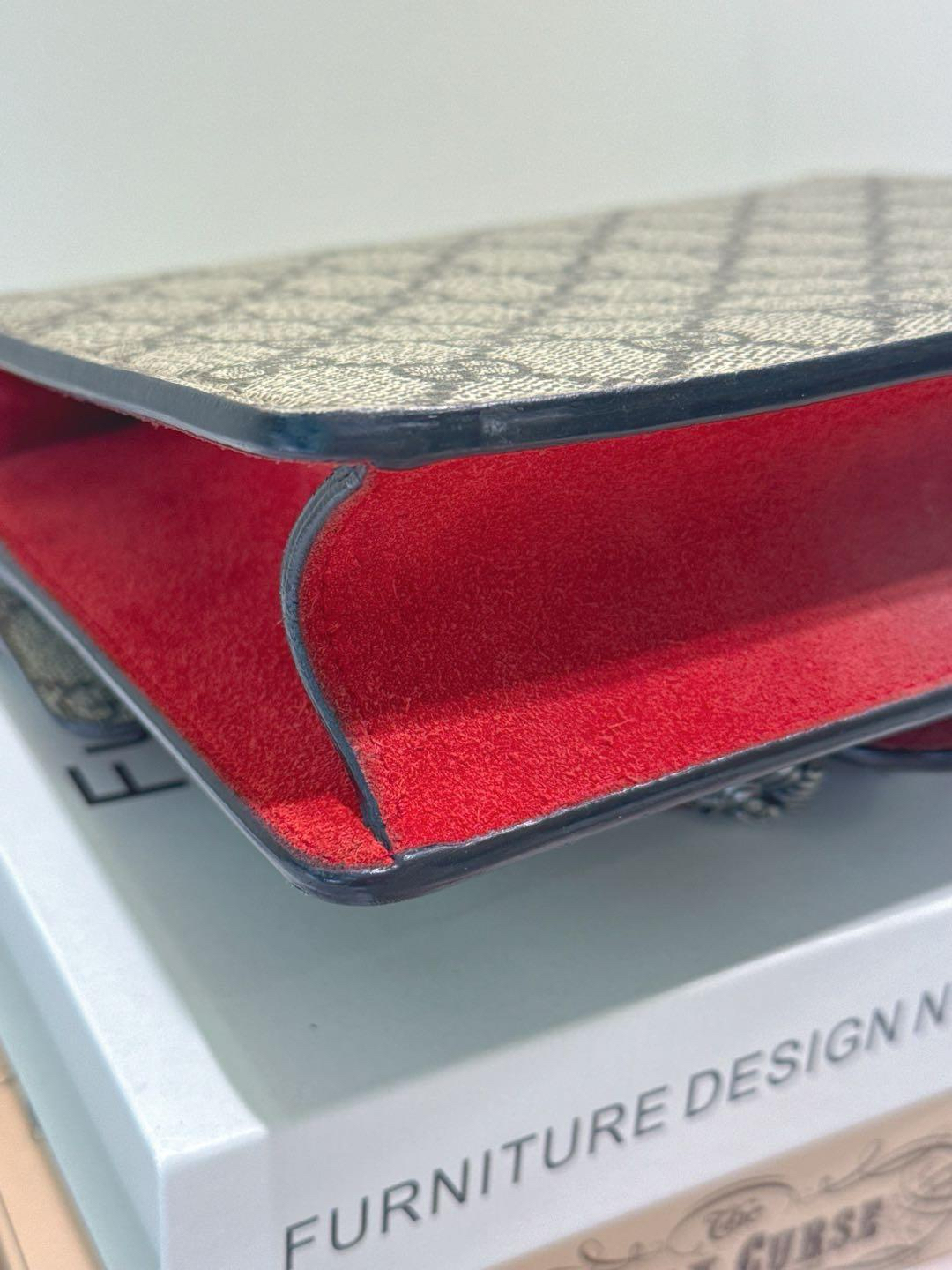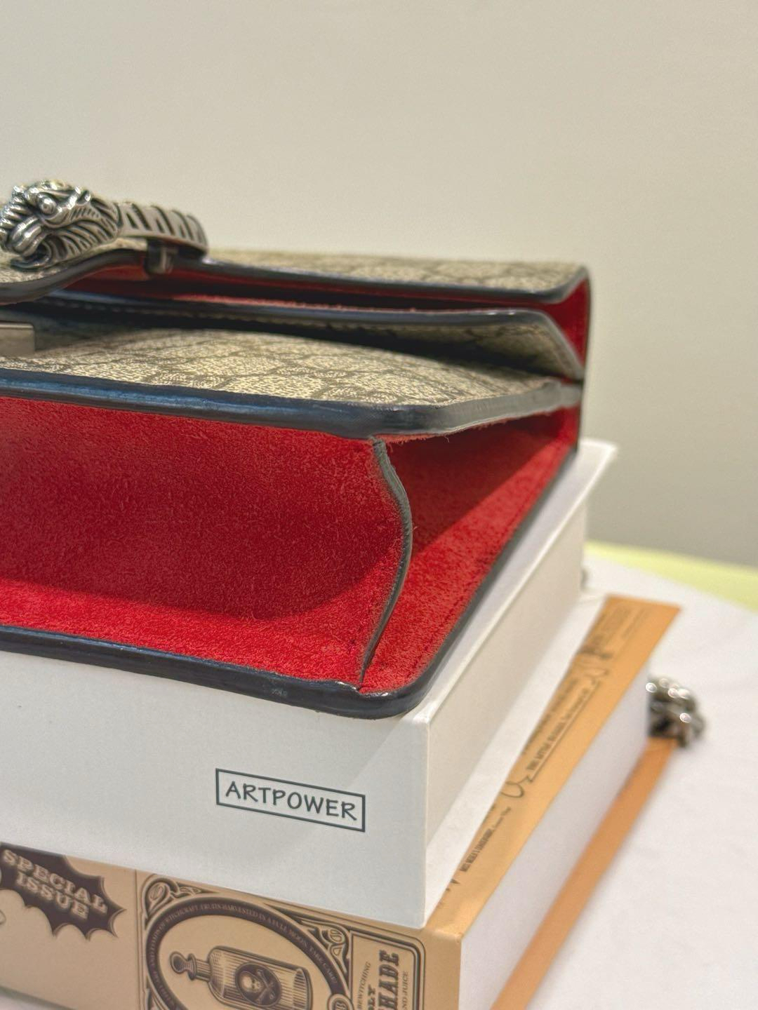 【商品詳情】正品二手 Gucci 小号 老花 红色 酒神 链条包🏎️ 95新 20×15。麂皮有正常使用泛白 边角有正常磨损感。夏日搭配绝美