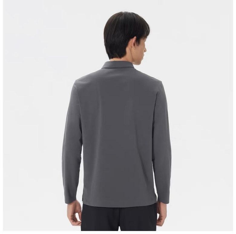 经典翻领设计,领口处印有品牌LOGO,结合热压工艺,外观平整有质感