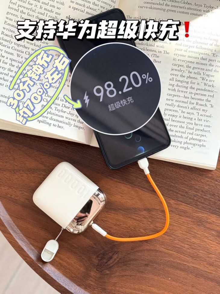 体积虽小却蕴含强大能量,超级快充技术,让您的苹果、华为或其他品牌手机、平板、耳机等设备迅速回血🔋充电速度快人一步❗