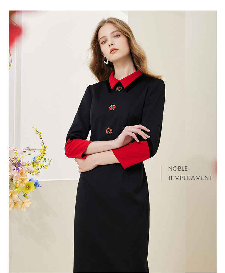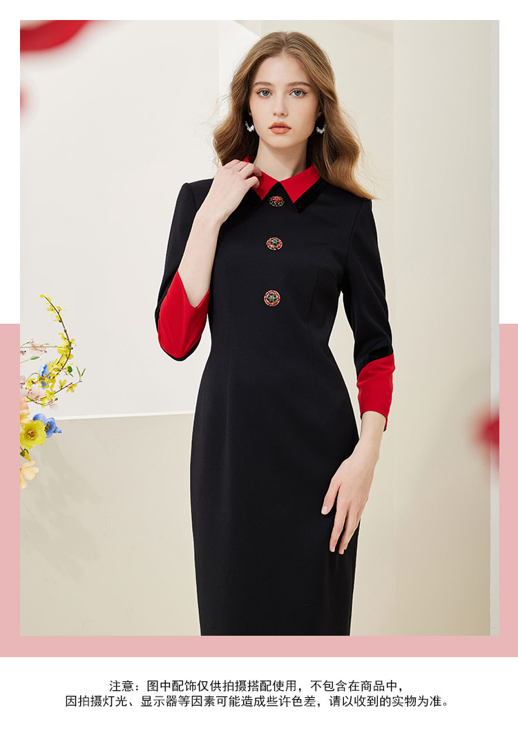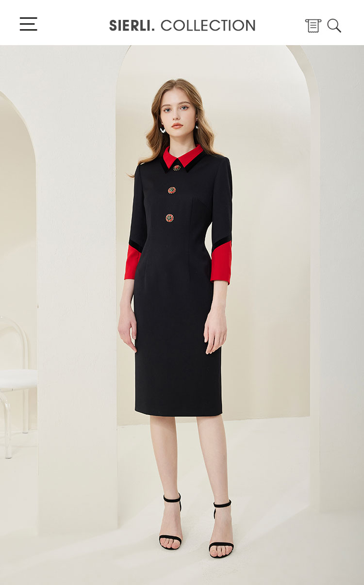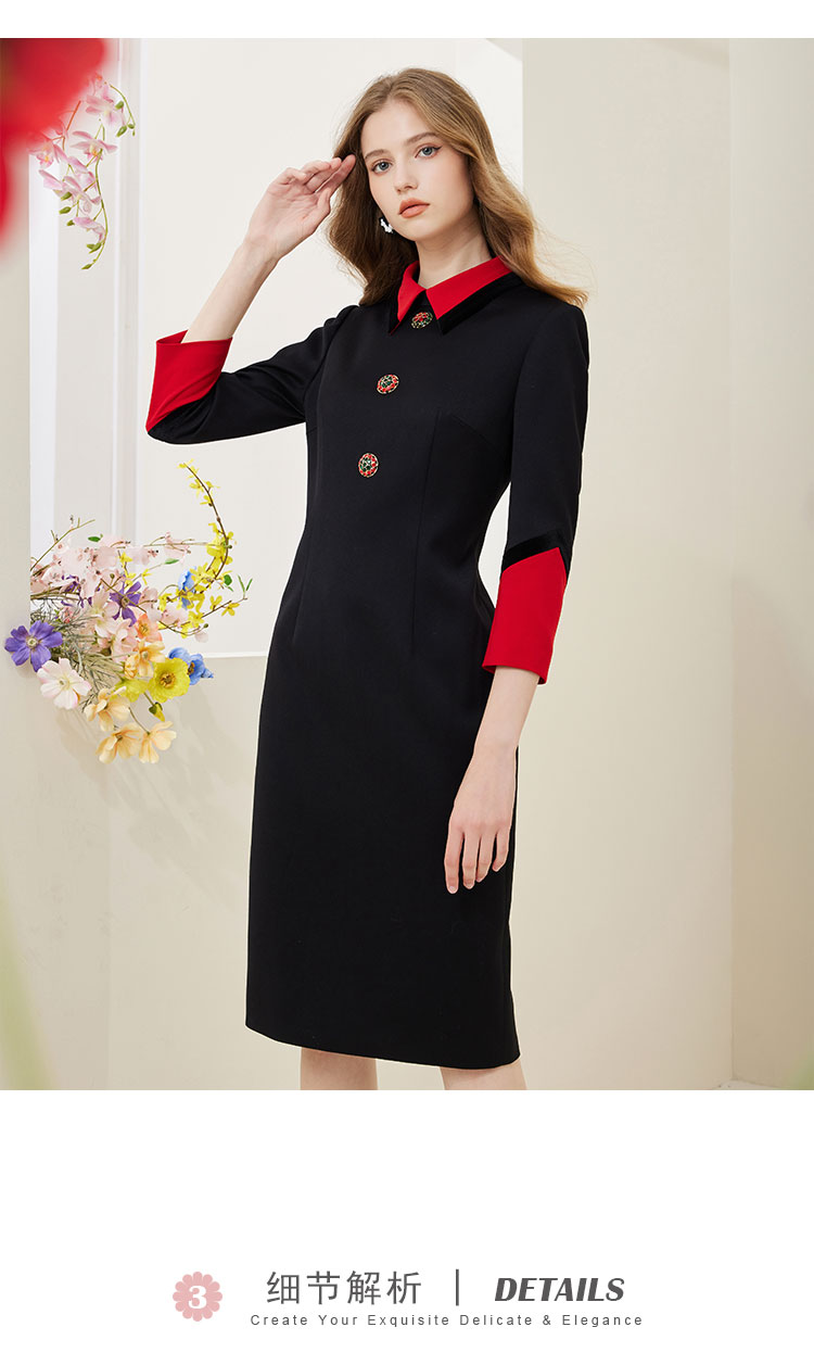 NA801斯尔丽瑟俪2023春季新款撞色翻领合体时尚连衣裙