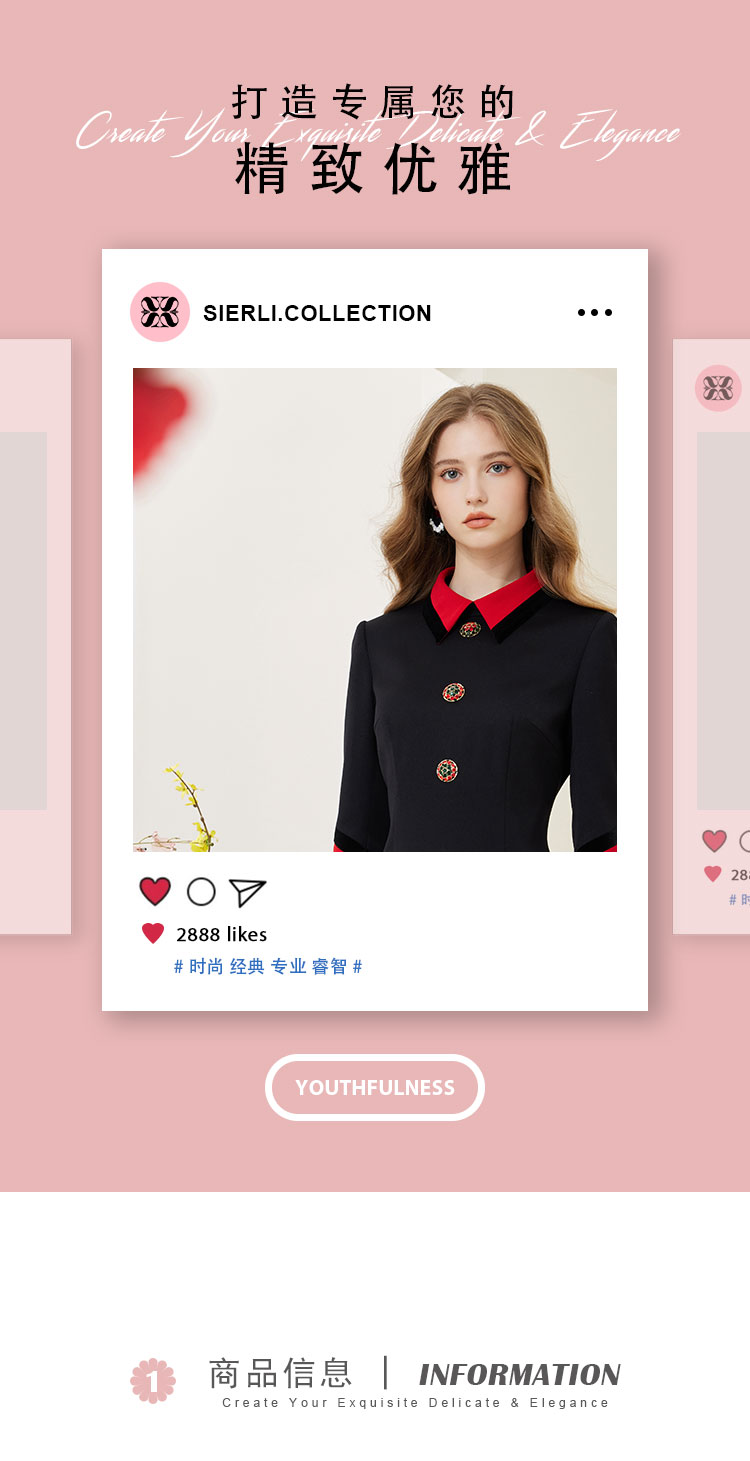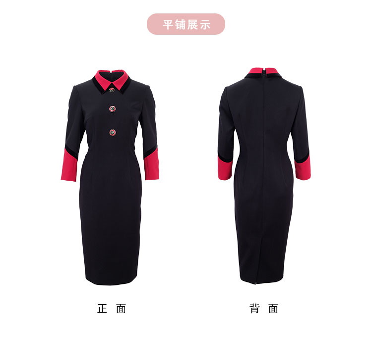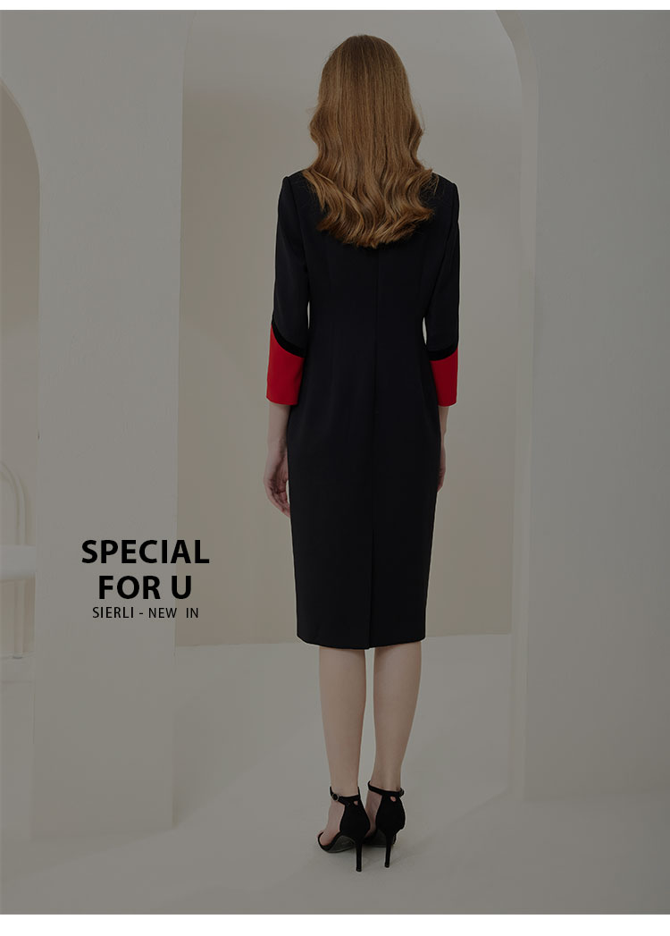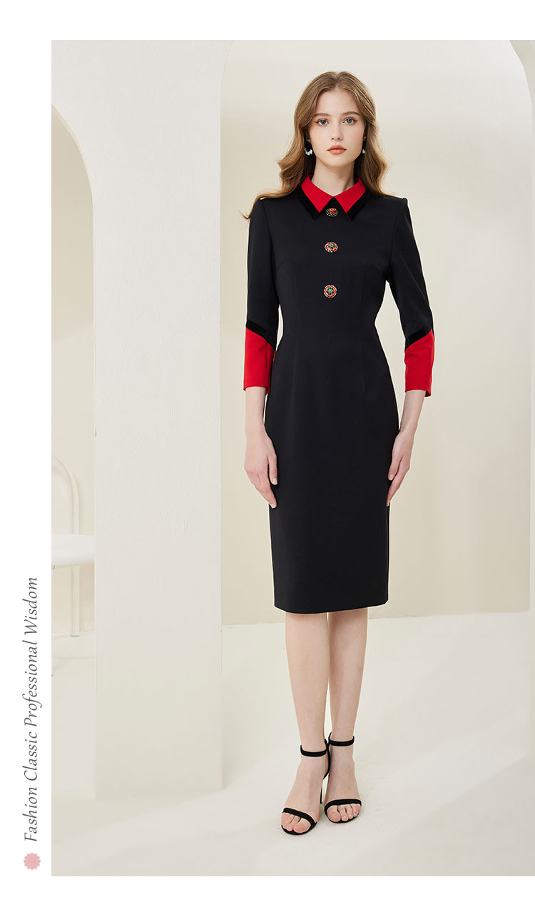 NA801斯尔丽瑟俪2023春季新款撞色翻领合体时尚连衣裙