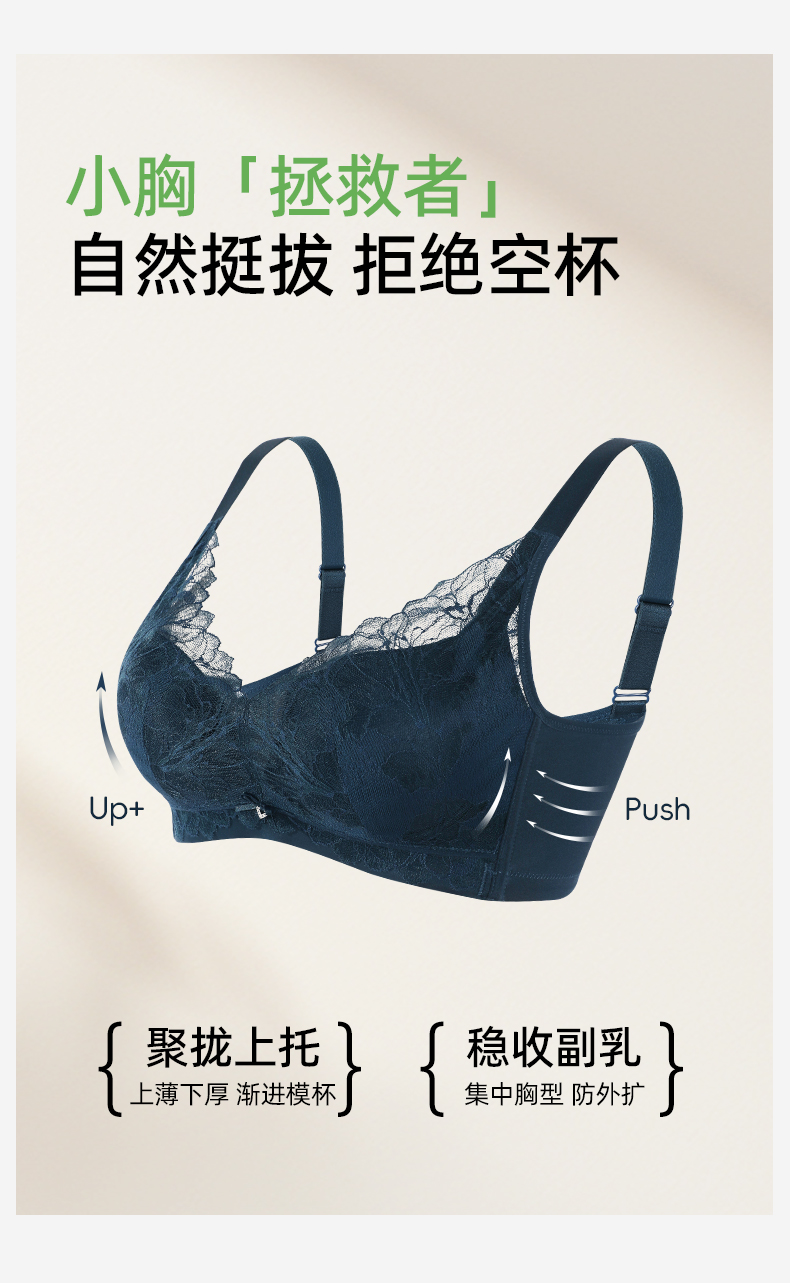 【商场同款】熳洁儿 小胸聚拢蕾丝文胸云感棉无钢圈中厚杯23701530
