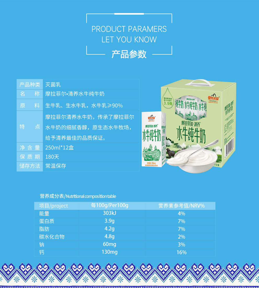 【2件装】摩拉菲尔清养水牛纯牛奶 合计250ml x 24盒