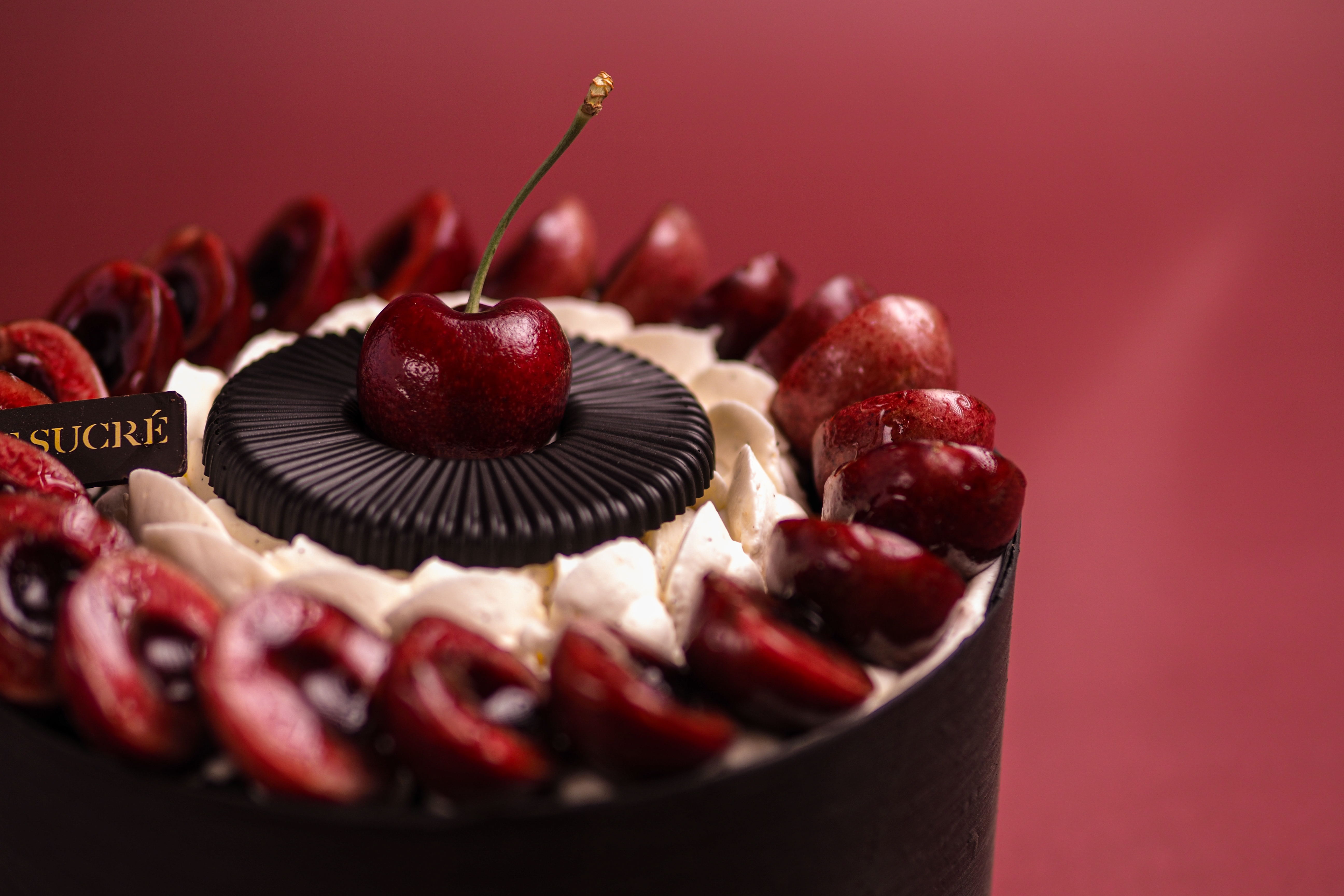 4. 顶层一圈的鲜樱桃选用了我们能找到最好的智利车厘子(毕竟新鲜的酸樱桃果确实也买不到)。