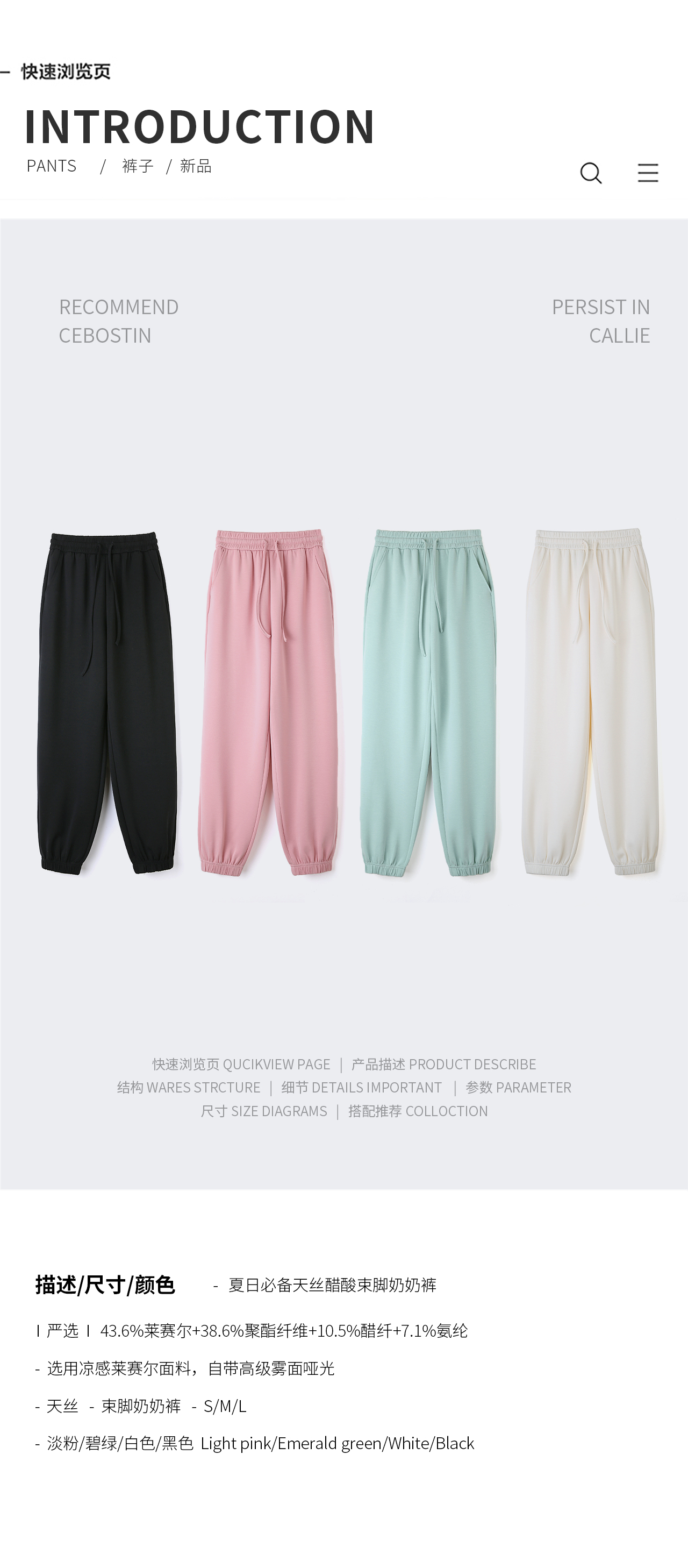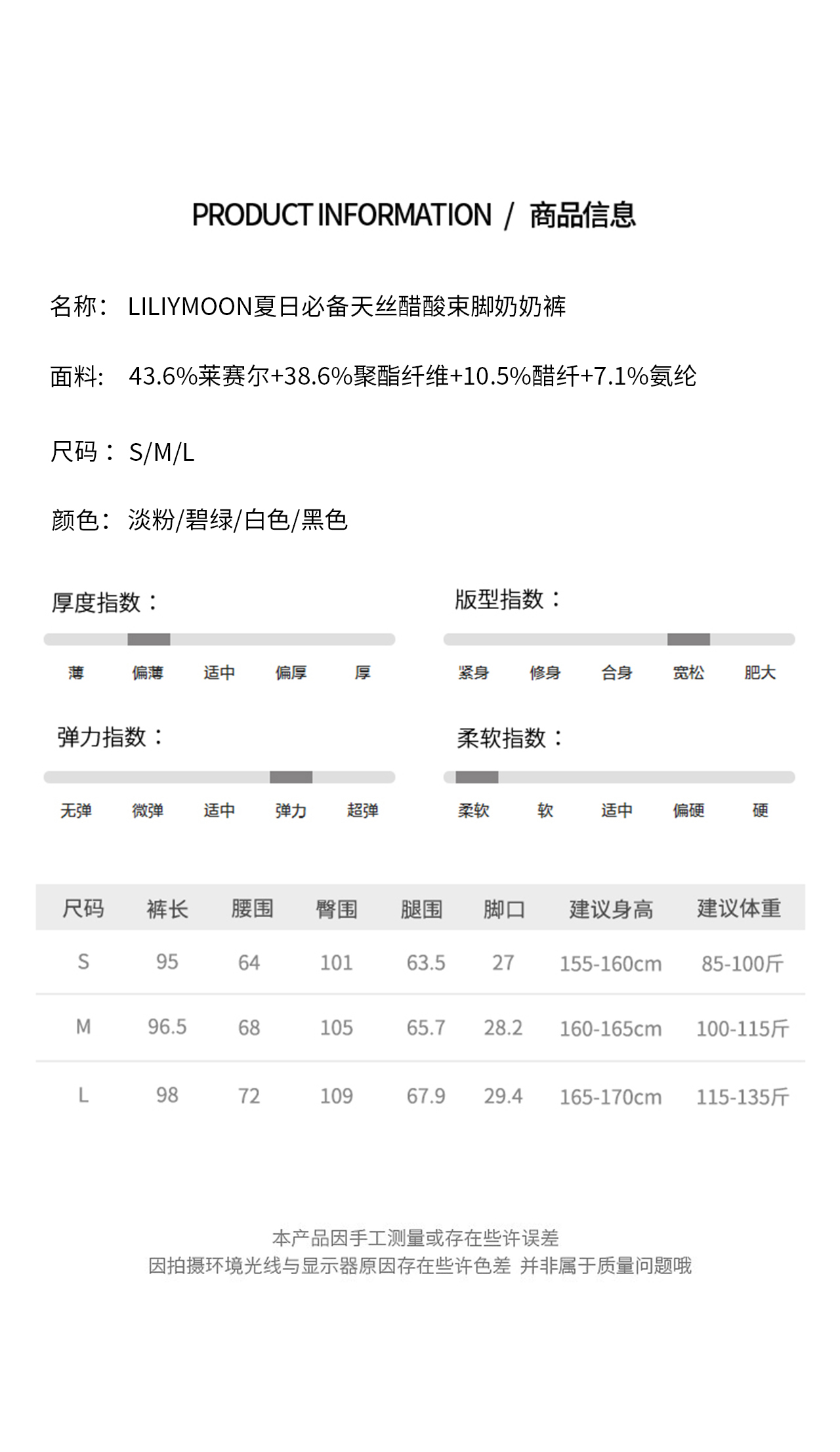 43.6%天丝莱赛尔10.5%的醋酸LILYMOON【醋酸束脚空调裤】透气柔软舒适卫裤
