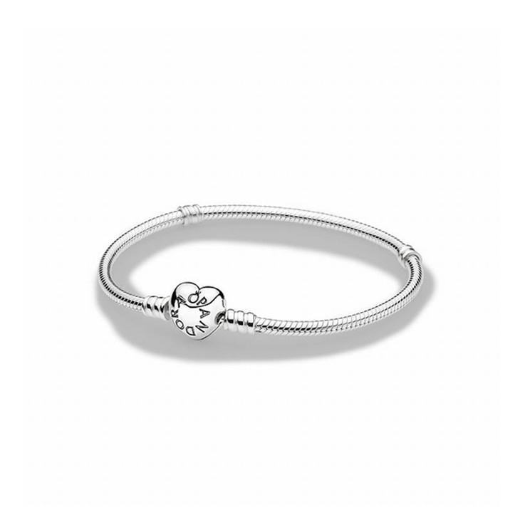 PANDORA潘多拉 590719女式Moments银色925纯银心形扣 蛇骨链手链 手镯JPY带授权招加盟代理