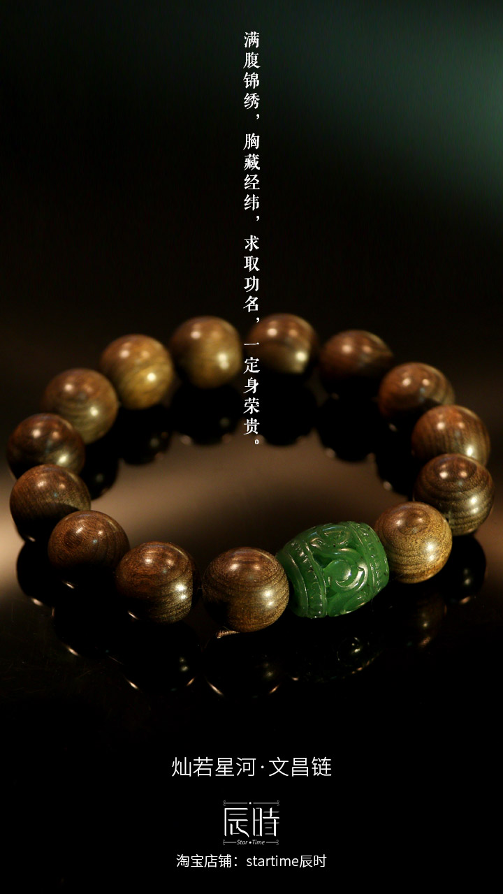 所以,用金丝楠木来做文昌链,简直是再妙不过了。它本身质朴优雅,却暗藏璀璨光芒,这就如同——虽有“恃才傲物”的能力,却又不张狂,但也不压抑,有光便能灿灿生辉,就像每个人的才华,要因地制宜,因时而动,不过分浮夸,又懂得谦逊内敛,才算得上是德才兼备。再加上时时幻化的金色,正好用来催旺“四绿文昌星”,简直是天赐好物。