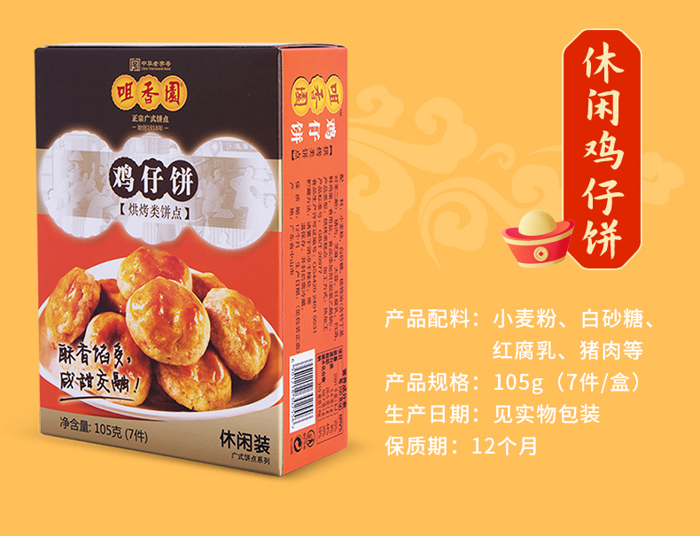 咀香园鸡仔饼 广州老字号美食广东特产正宗小凤饼手信礼盒铁罐装