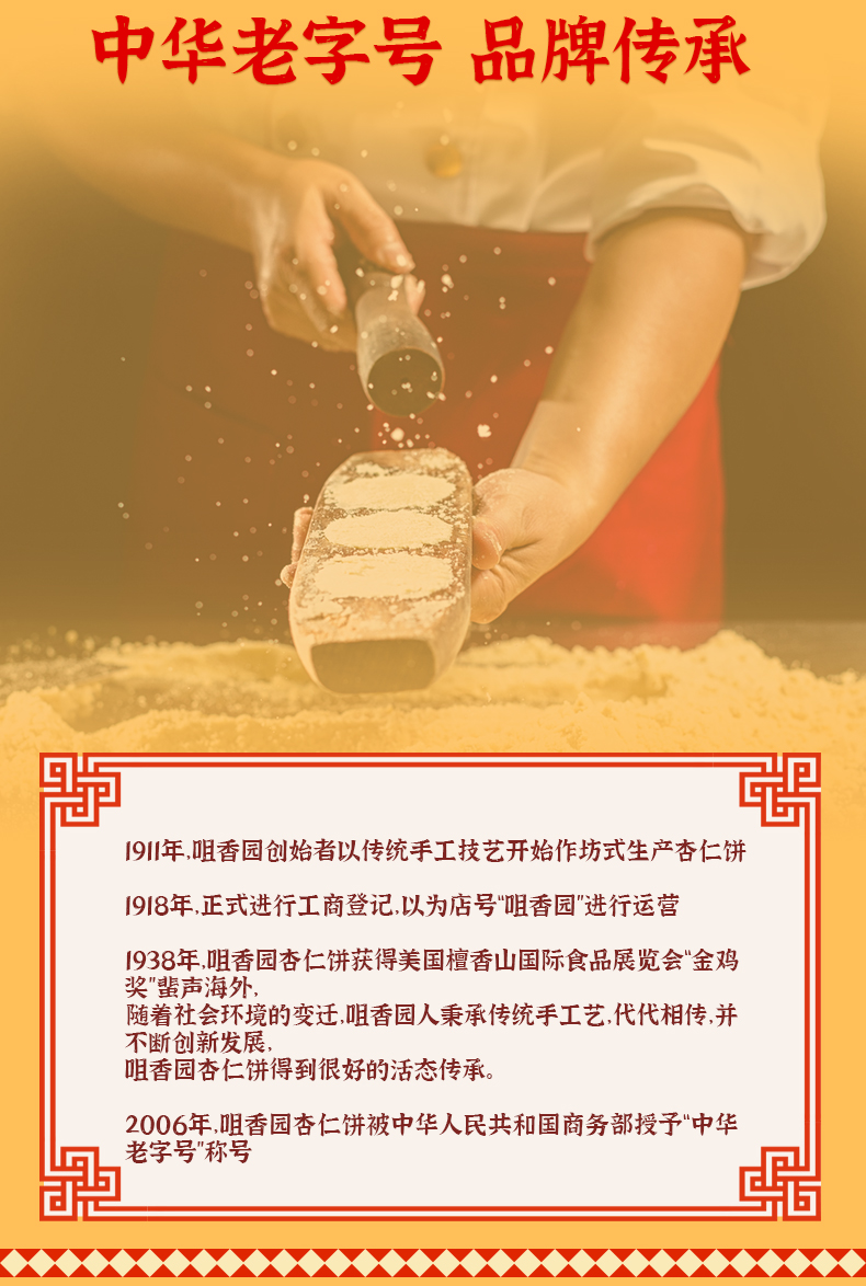 - 百年品牌,中华老字号;杏仁饼创始者~