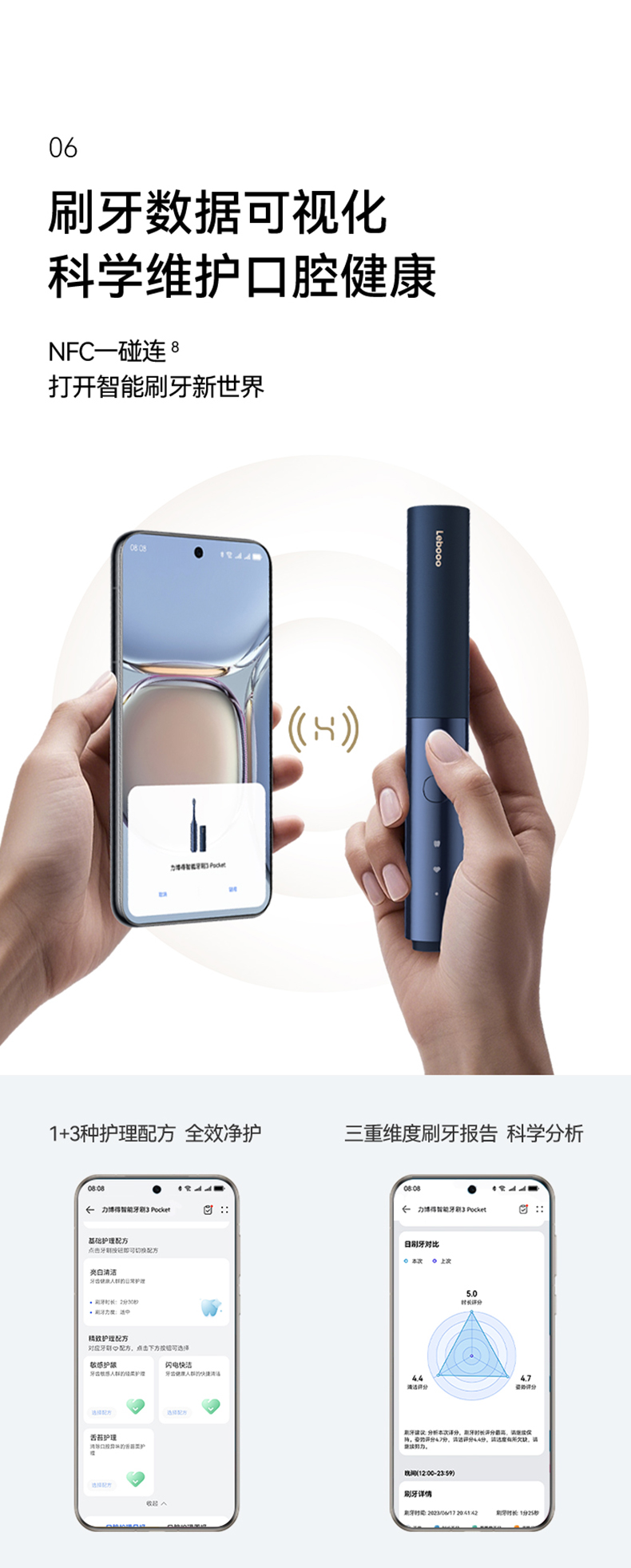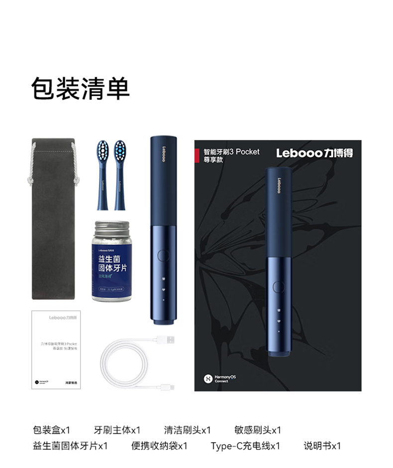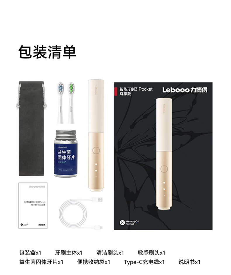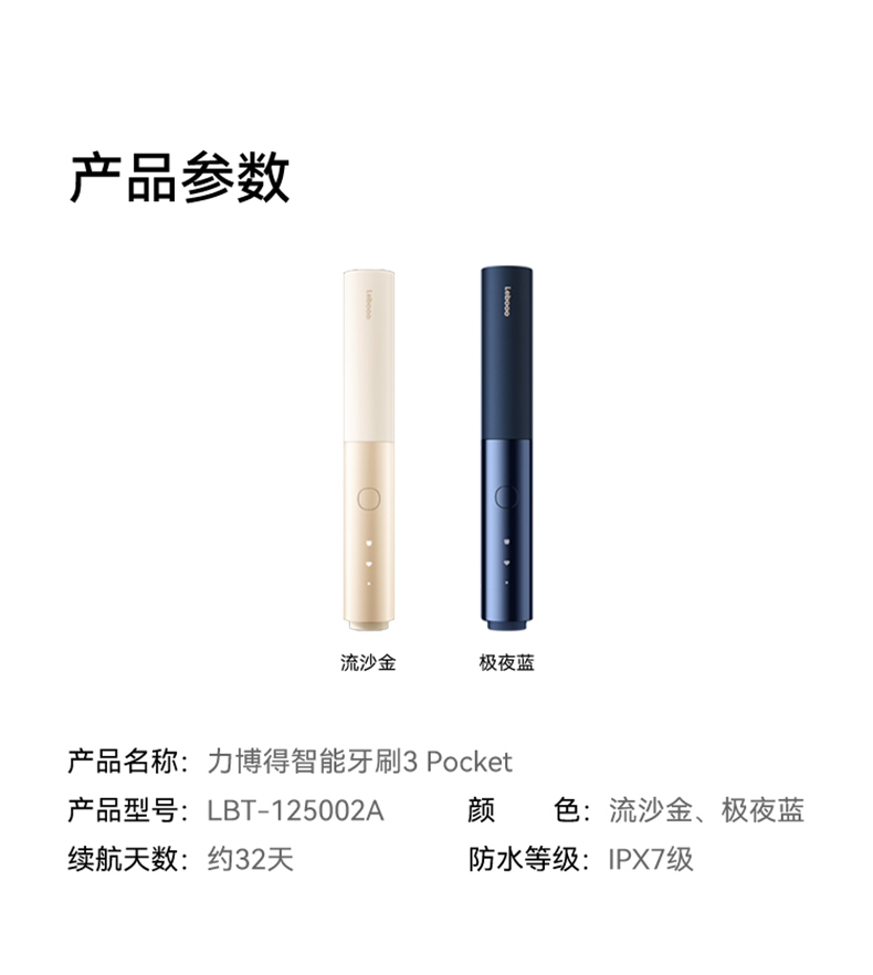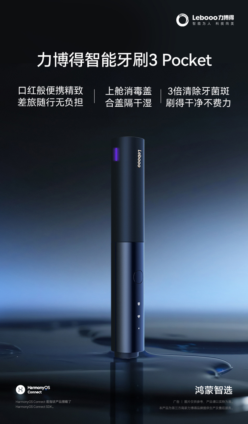 鸿蒙智选 力博得智能牙刷3 差旅便携电动牙刷口红牙刷 消毒杀菌Pocket 尊享款【下单送刷头2个,到手4个刷头】