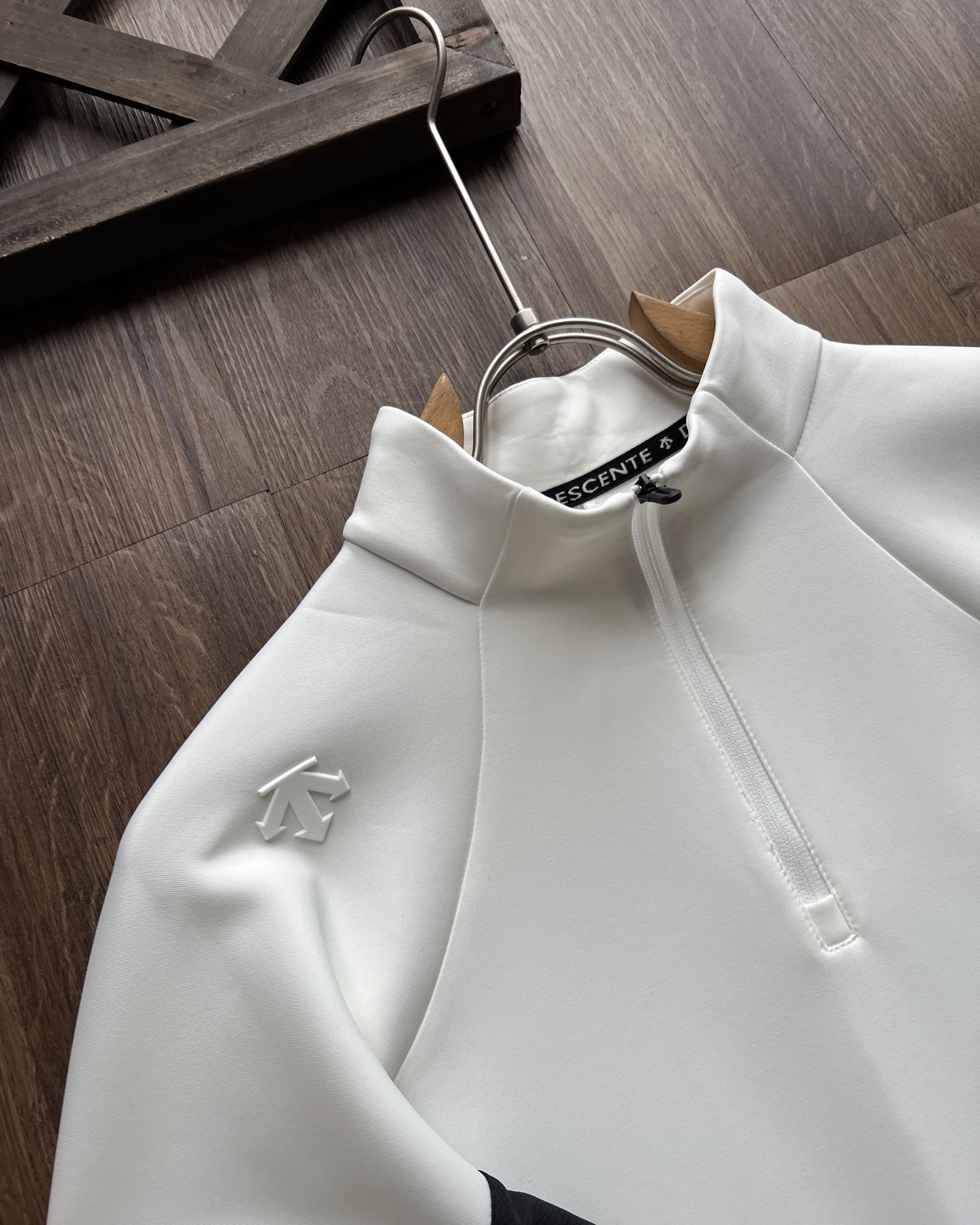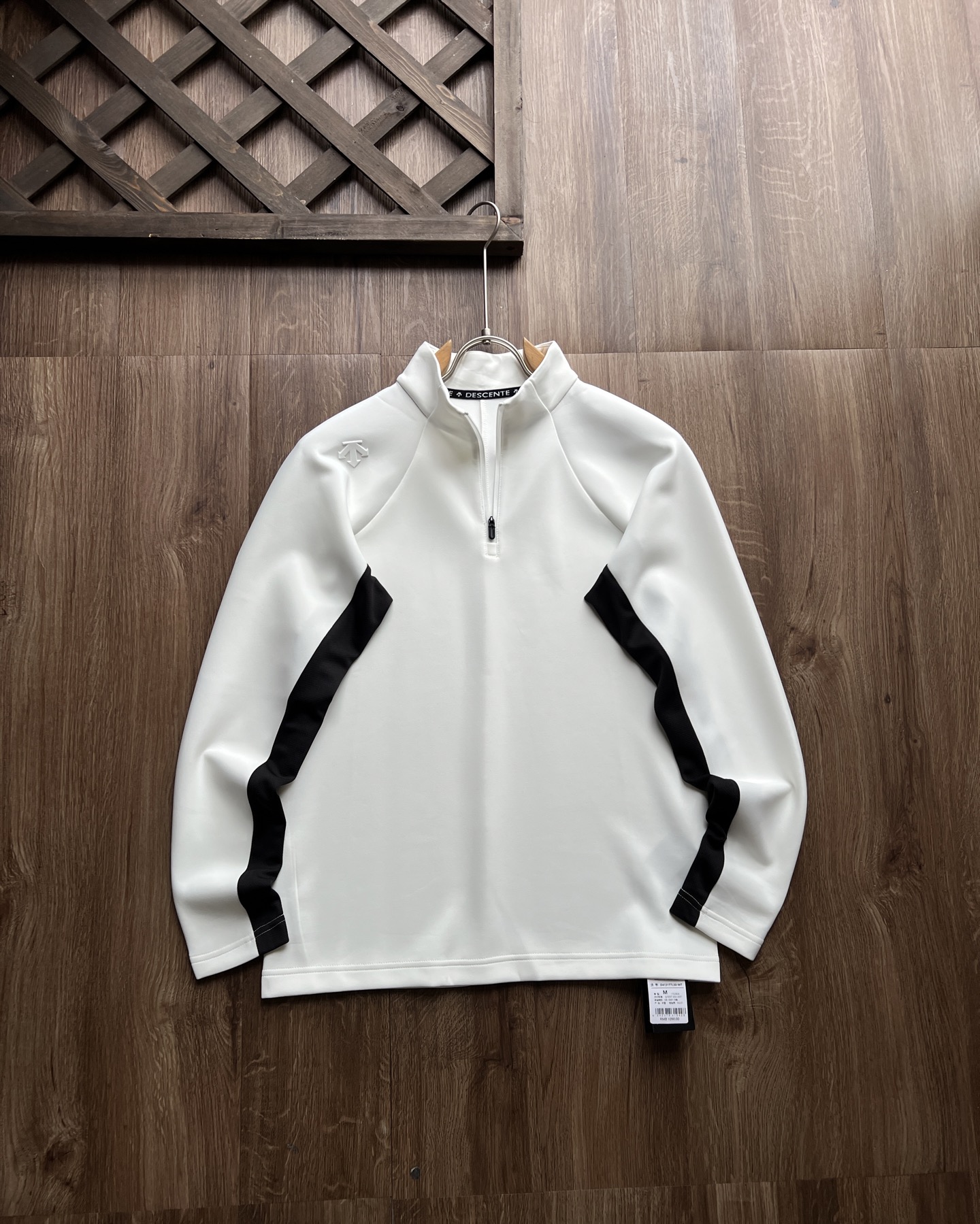 210 货号180523210 xj 迪桑特经典配色!干净清爽!春季新款!训练运动男士半拉链内搭长袖针织衫新款卫衣,经典半开拉链款型设计长袖针织衫·采用solotex双面布制作,面料采用55高精棉40涤5氨纶混纺而成,触感细腻,保暖亲肤,且弹性丰富。搭配一片式插肩袖设计,更贴合身体运动轮廓,增加运动空间