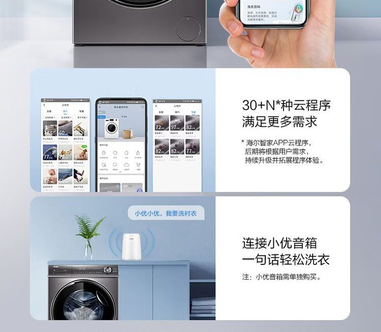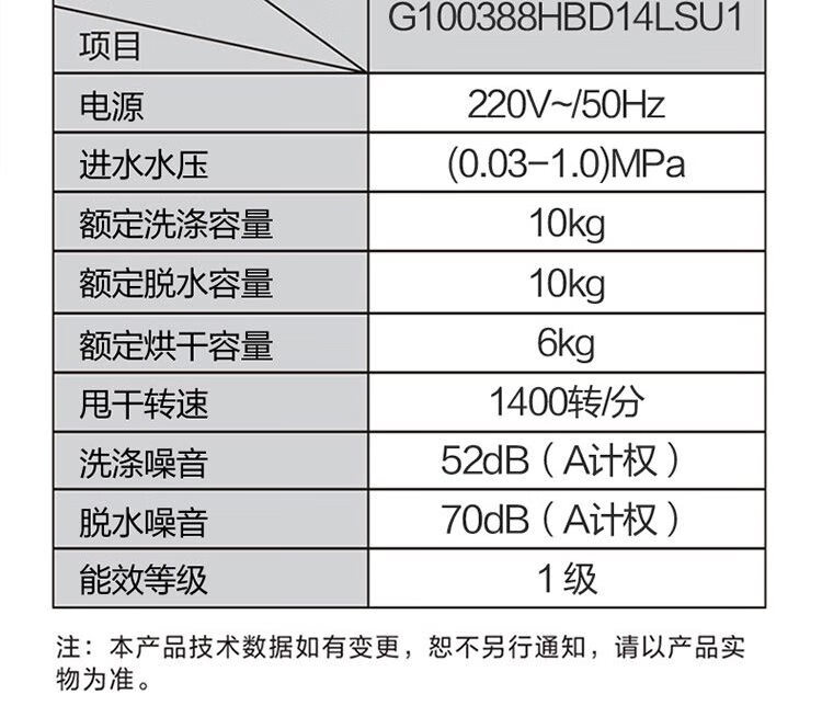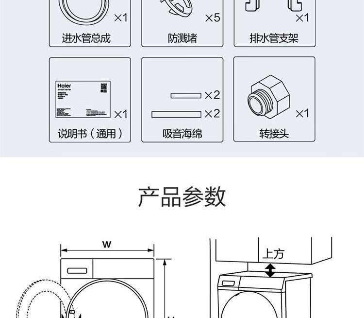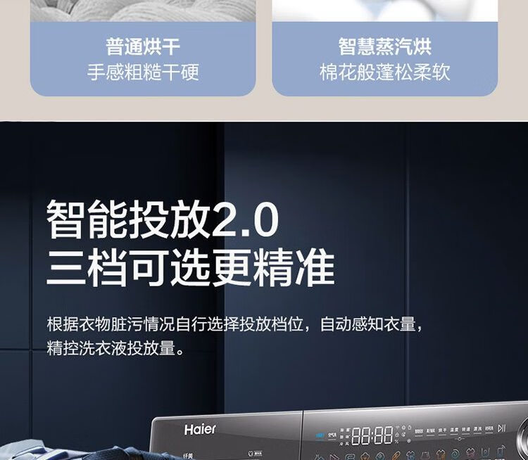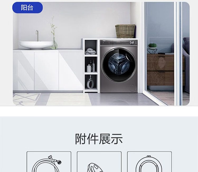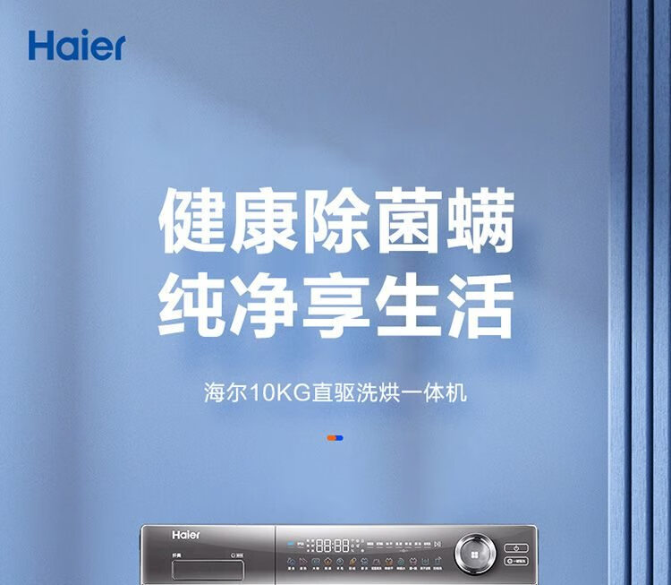 海尔滚筒洗衣机 10公斤容量 全自动上排水 一级能效 直驱变频 洗烘一体机 G100388HBD14LSU1