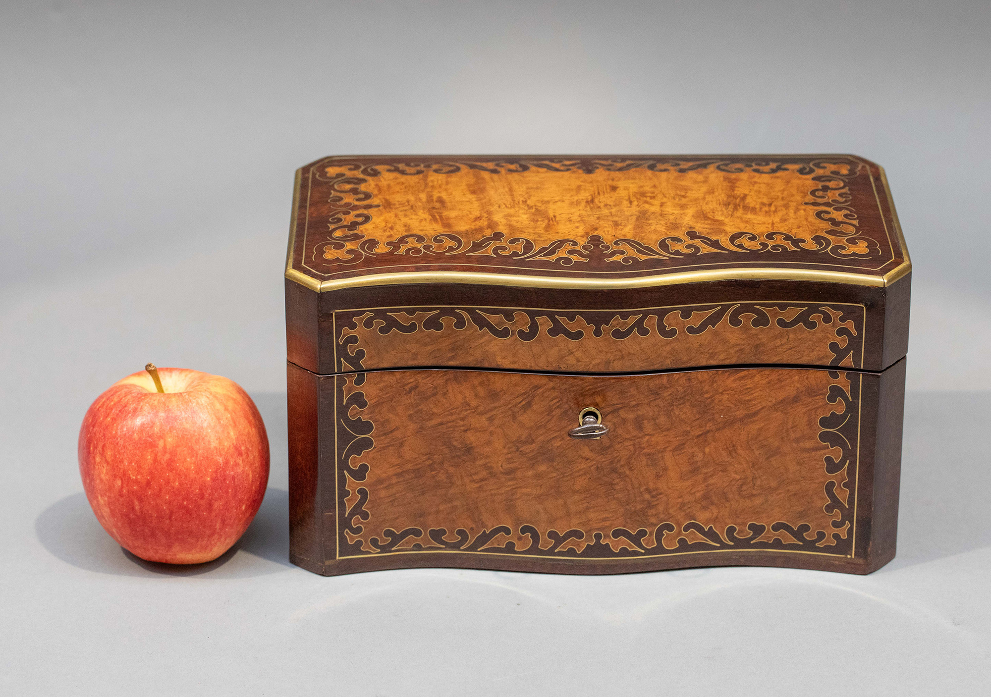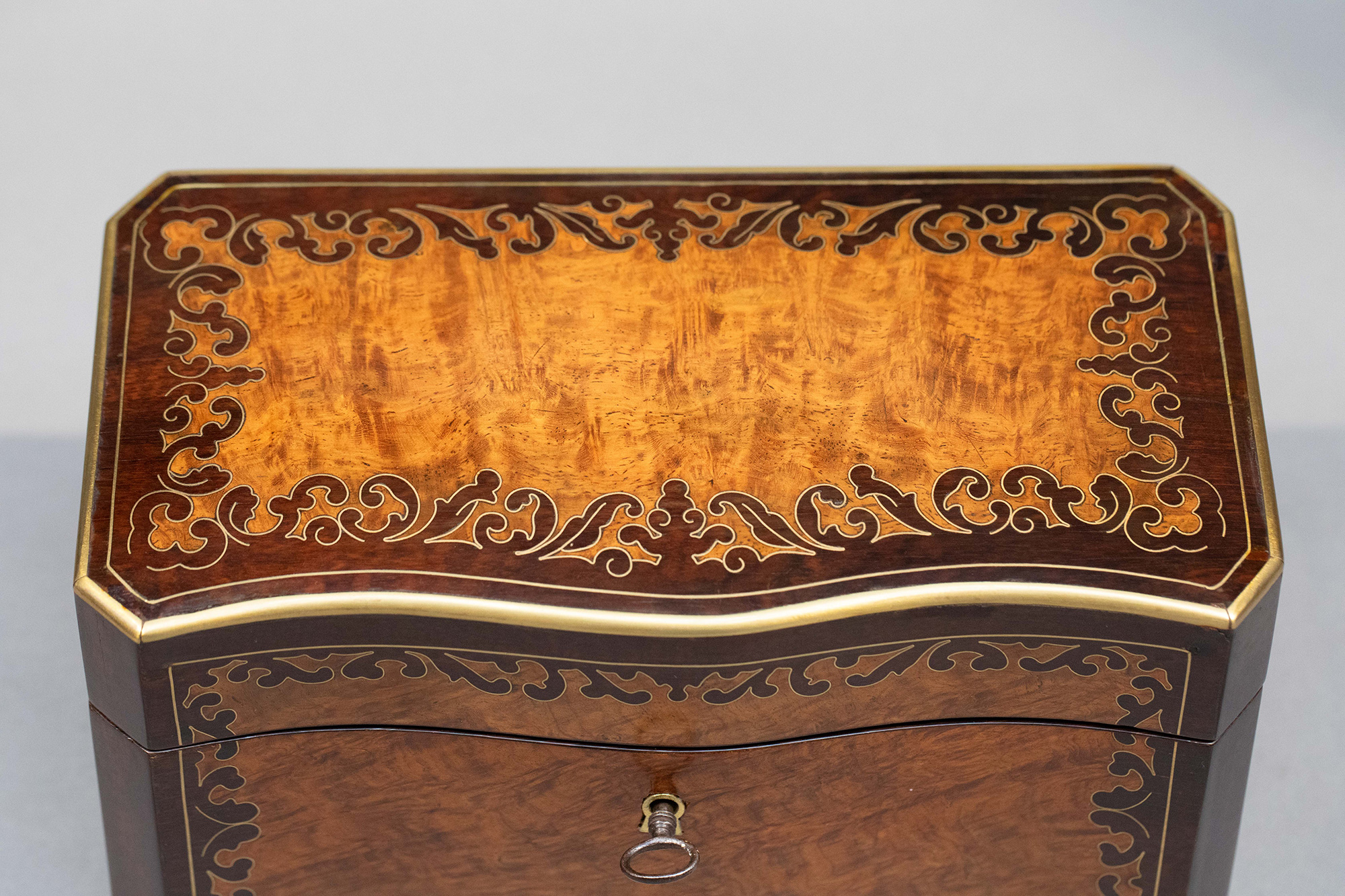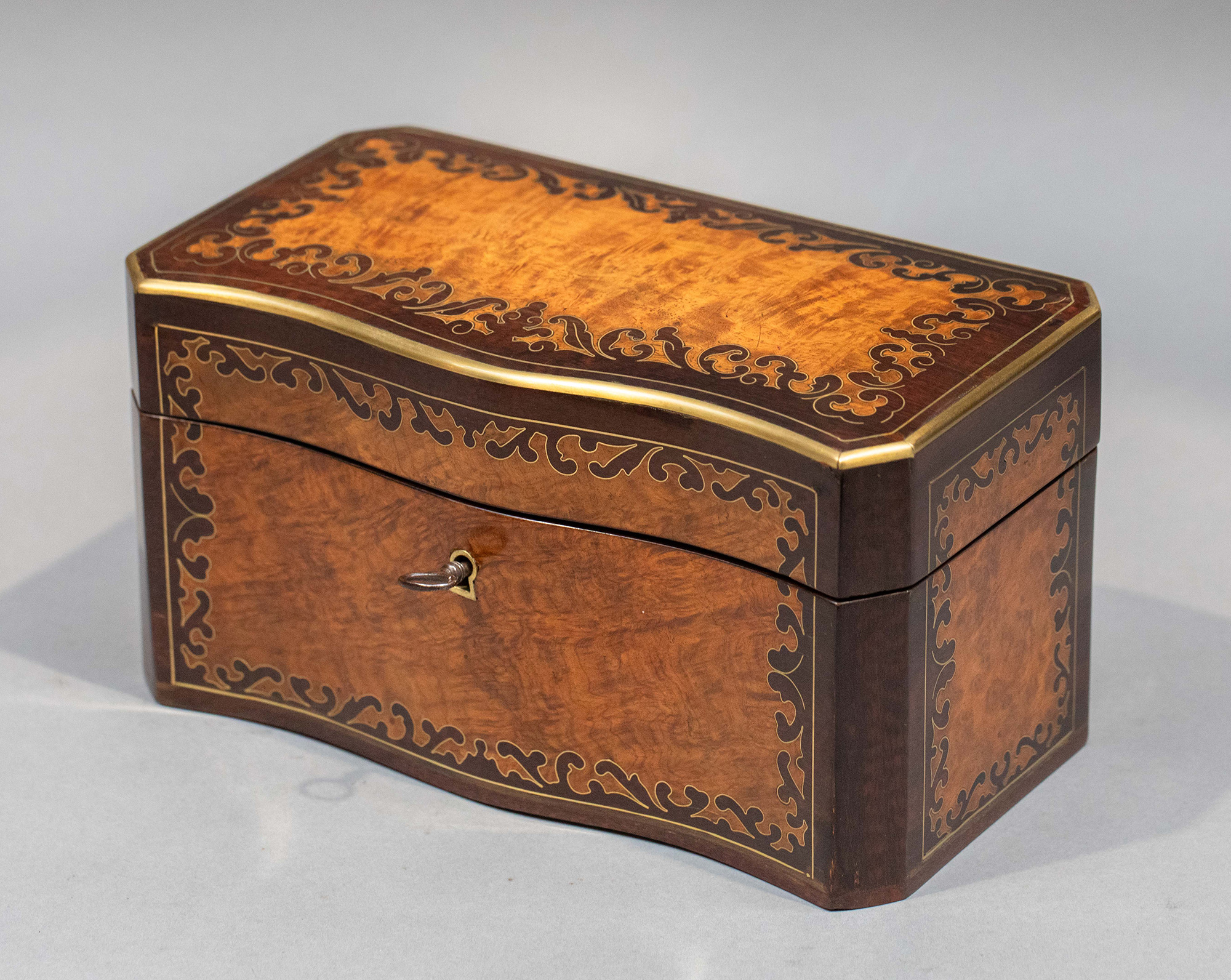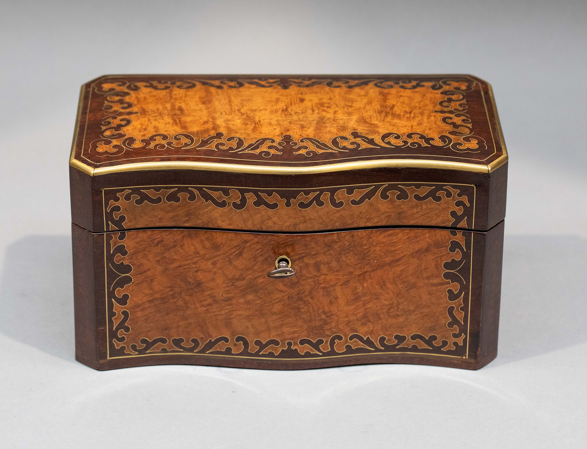 1850-1870年代法国拿破仑三世时期出品波浪纹饰布勒镶嵌实木茶叶盒