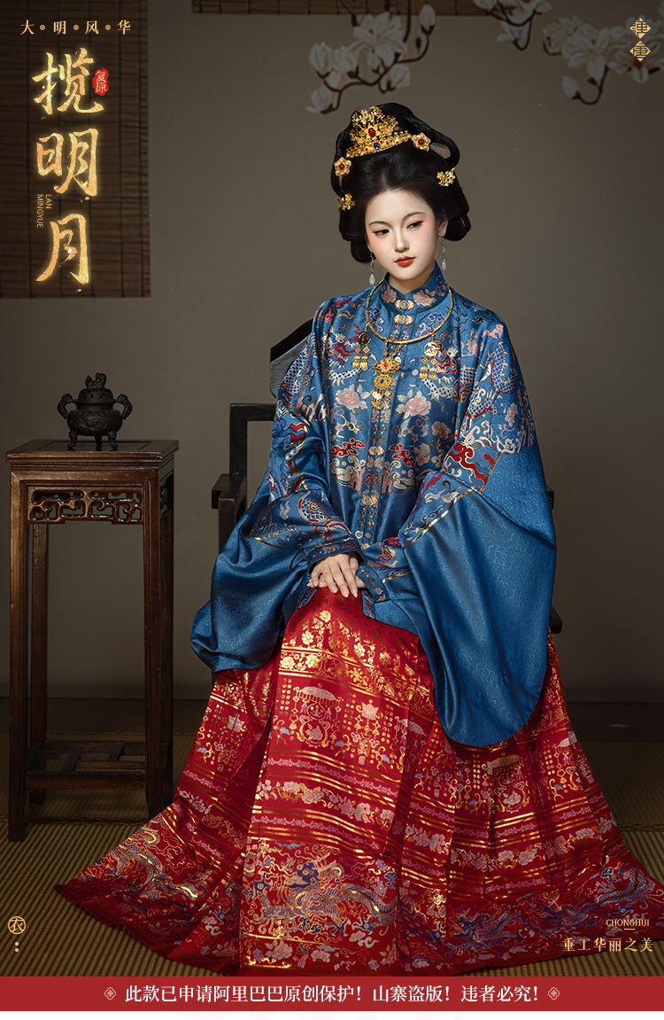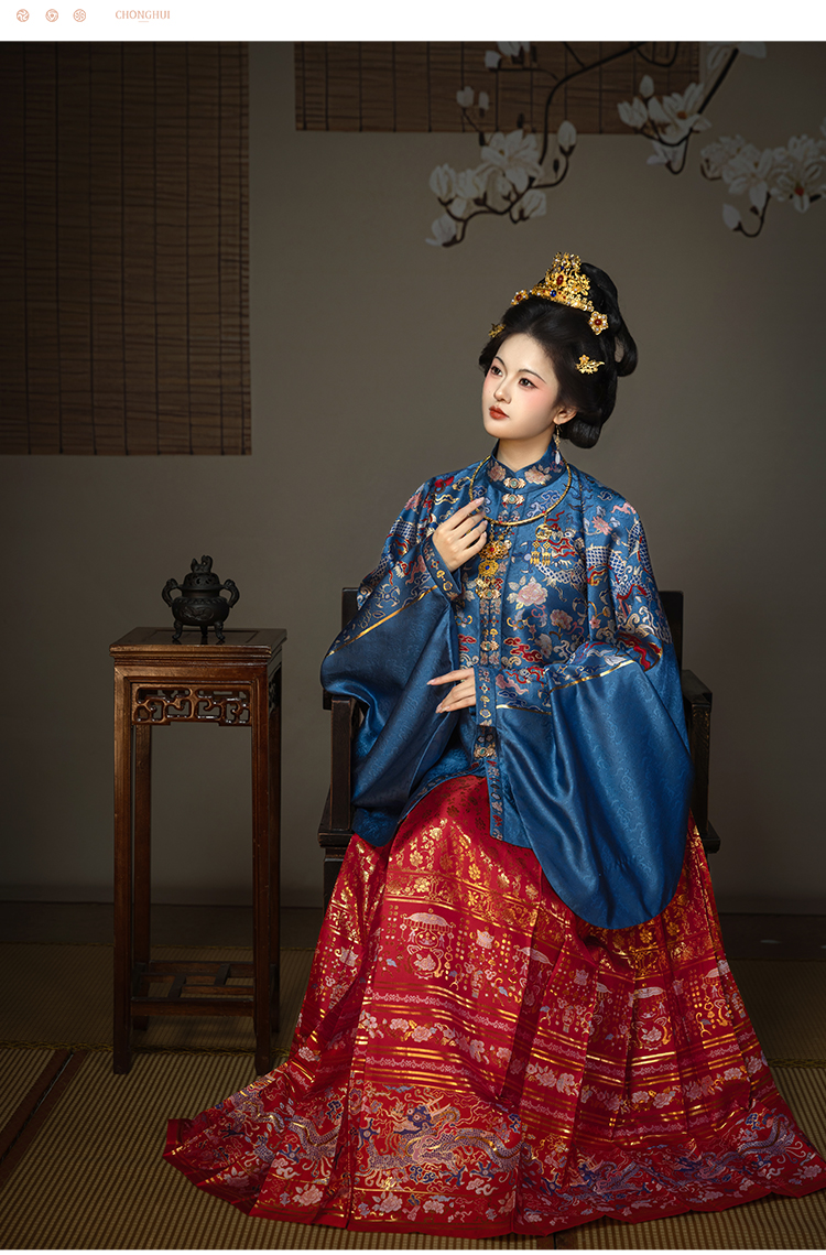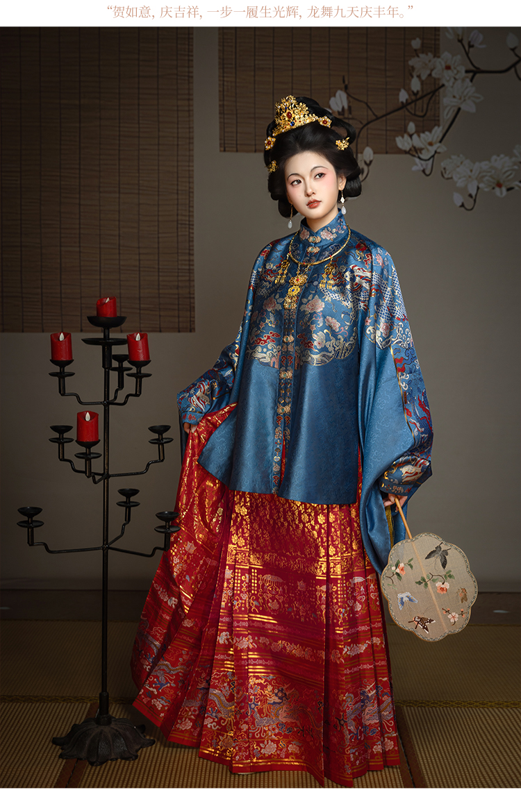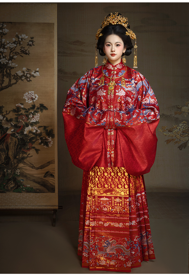 【重回汉唐揽明月】原创竖领对襟袄马面裙套装红色明制汉服女款