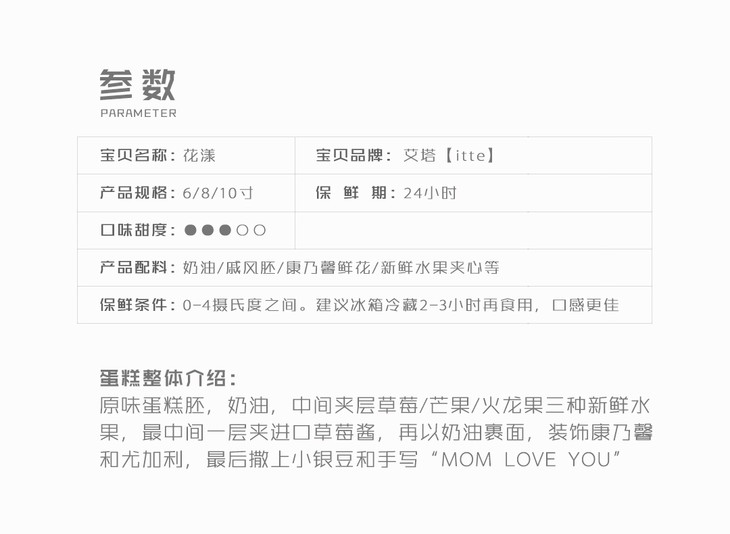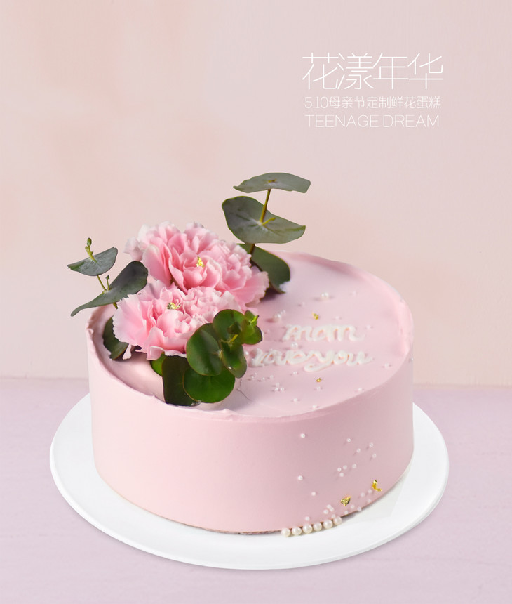 【花漾】动物奶油、新鲜水果+纯草莓果肉果酱、原味蛋糕胚,鲜花康乃馨;送给最美的妈妈~