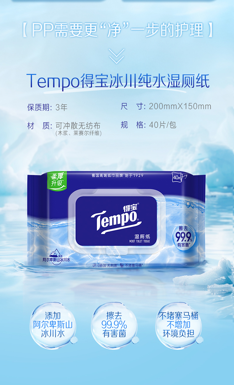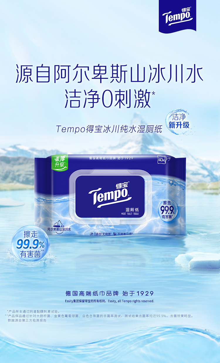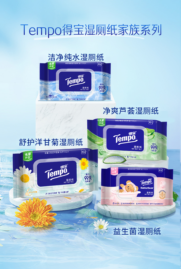 f『得宝Tempo』 纯水湿厕纸40片/包x4包 净享清爽洁净/ 厕用湿巾