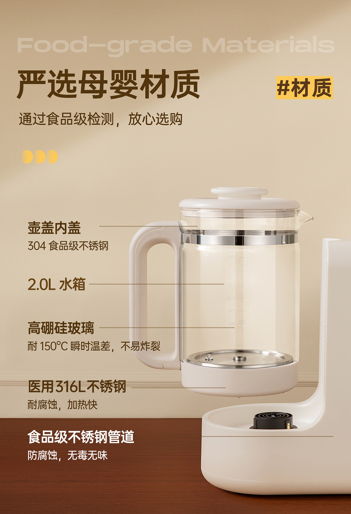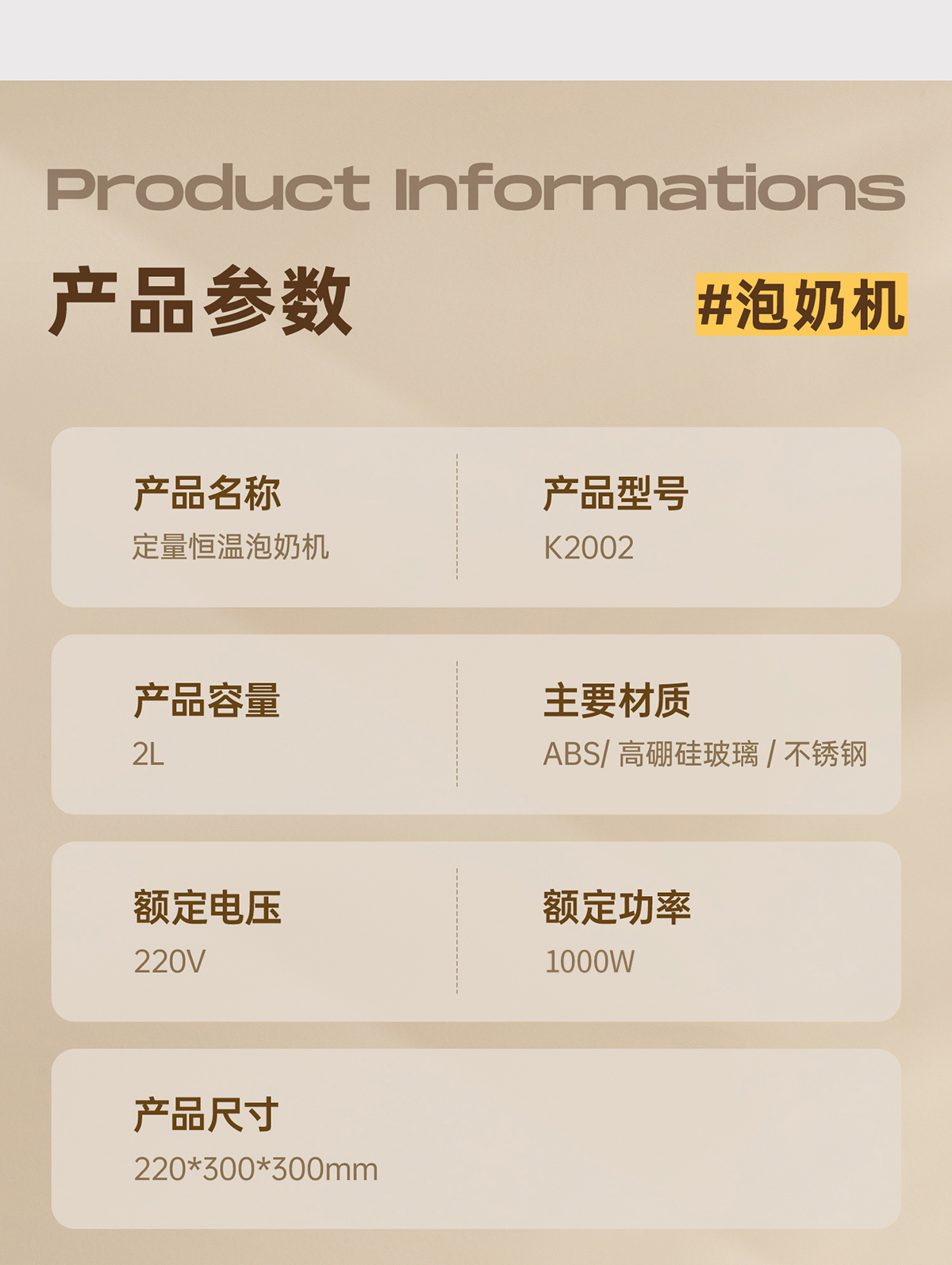 6、2000ml大容量,1000W发热盘。加热效率高。